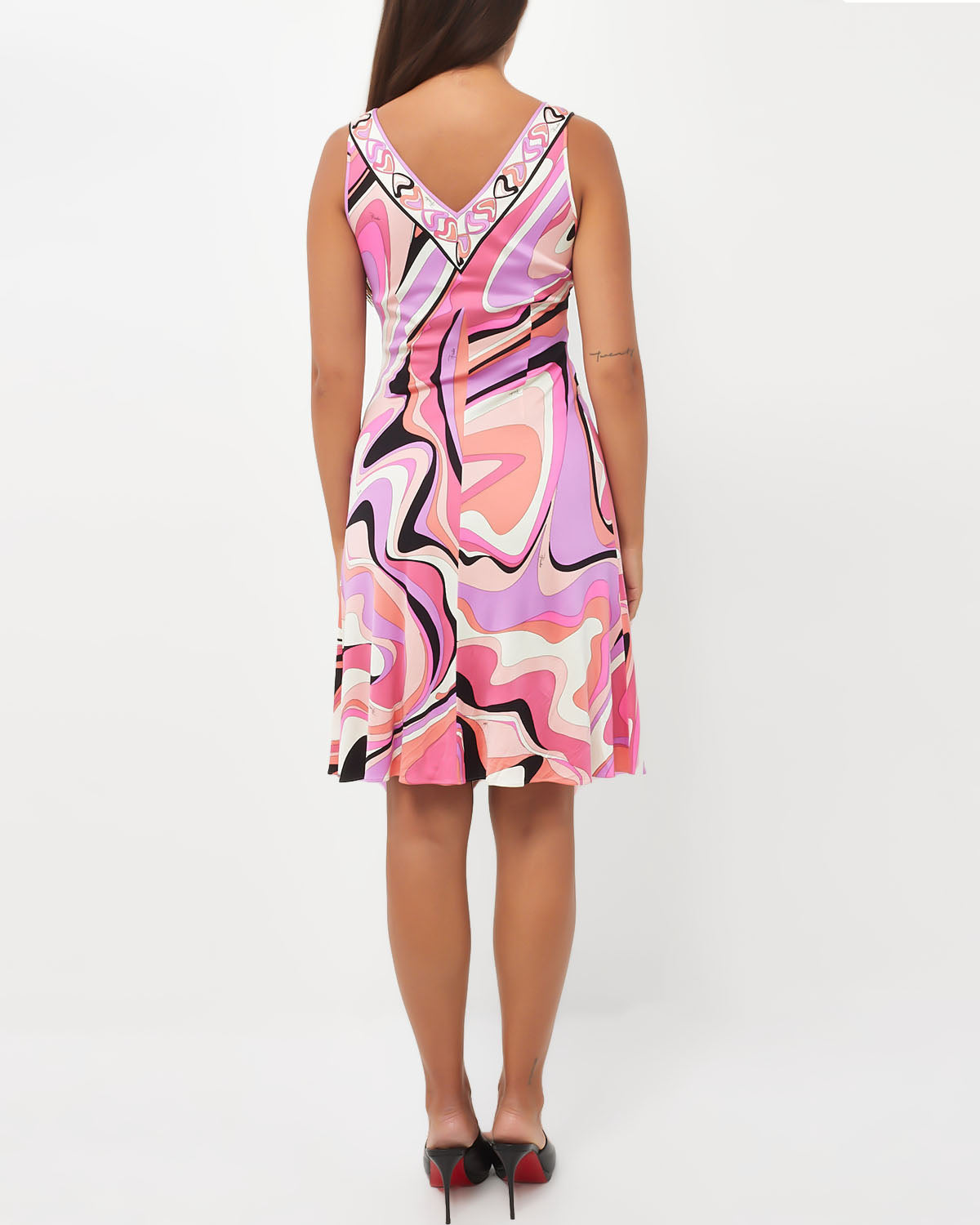 Purple and Pink Multi Print V-Neck Sleeveless Dress - 36