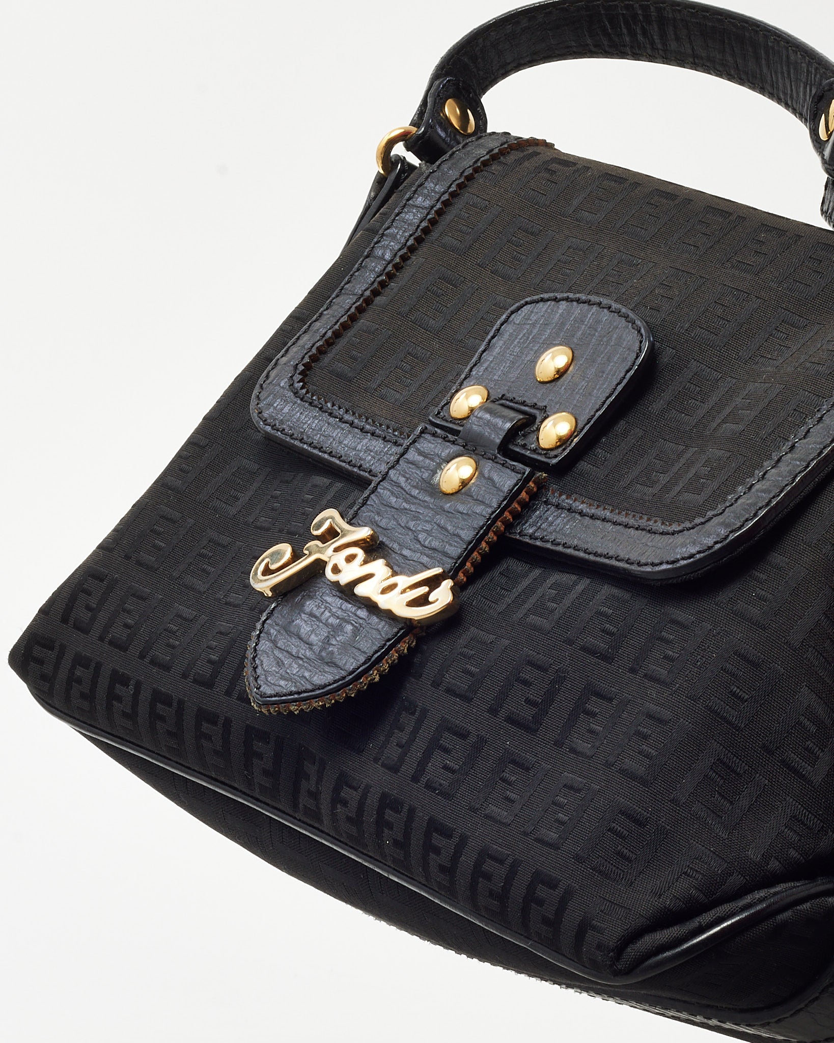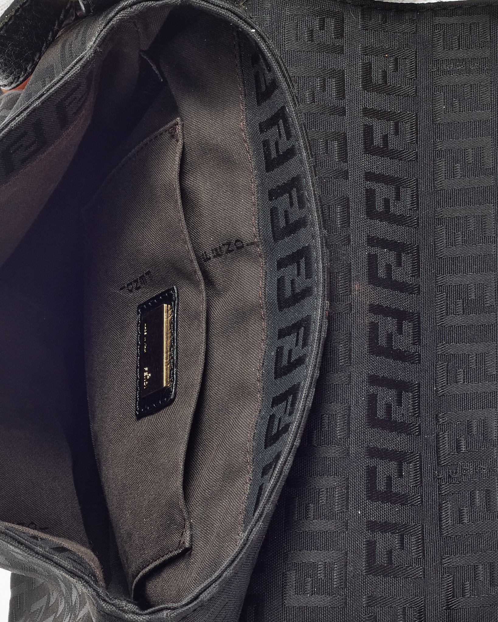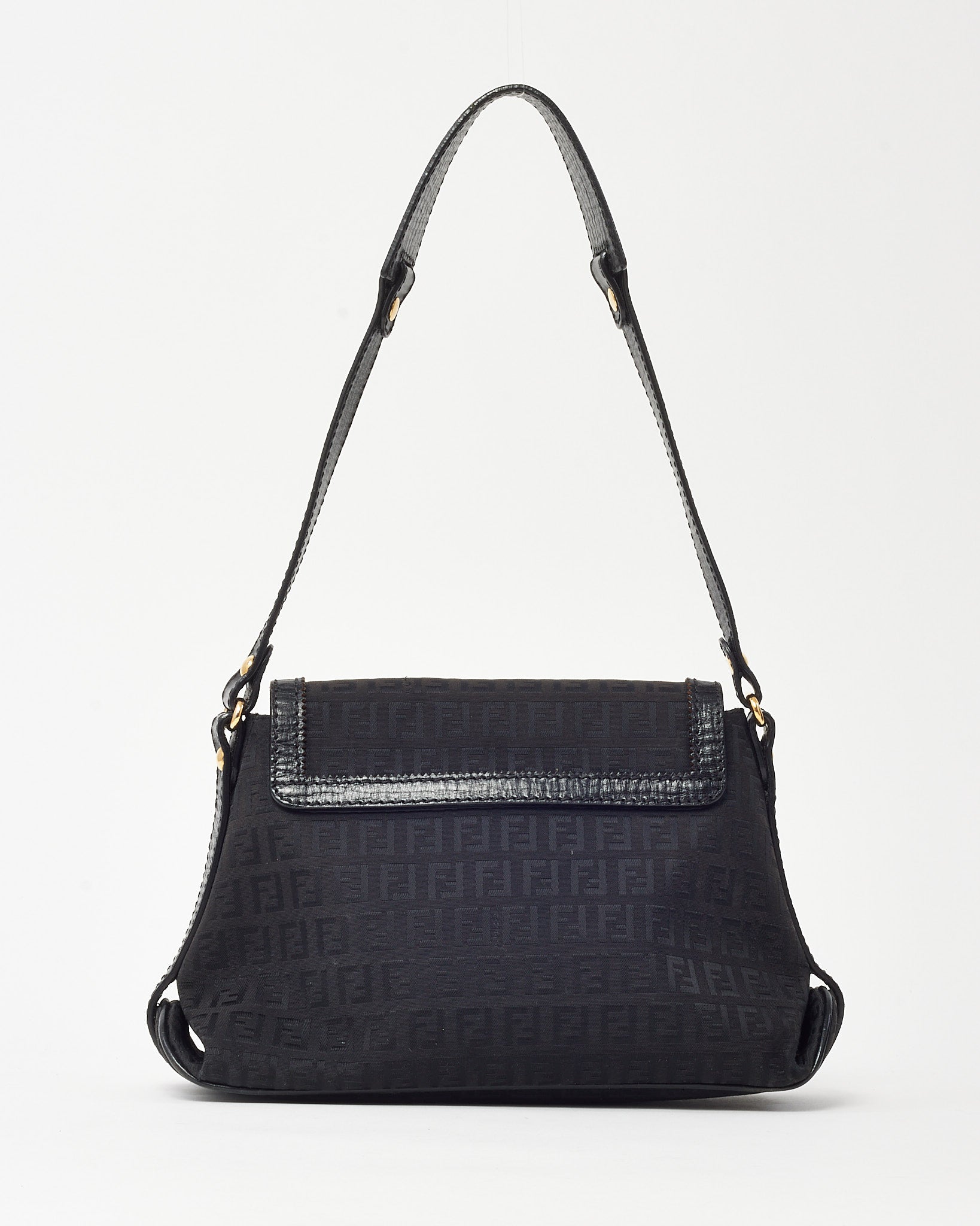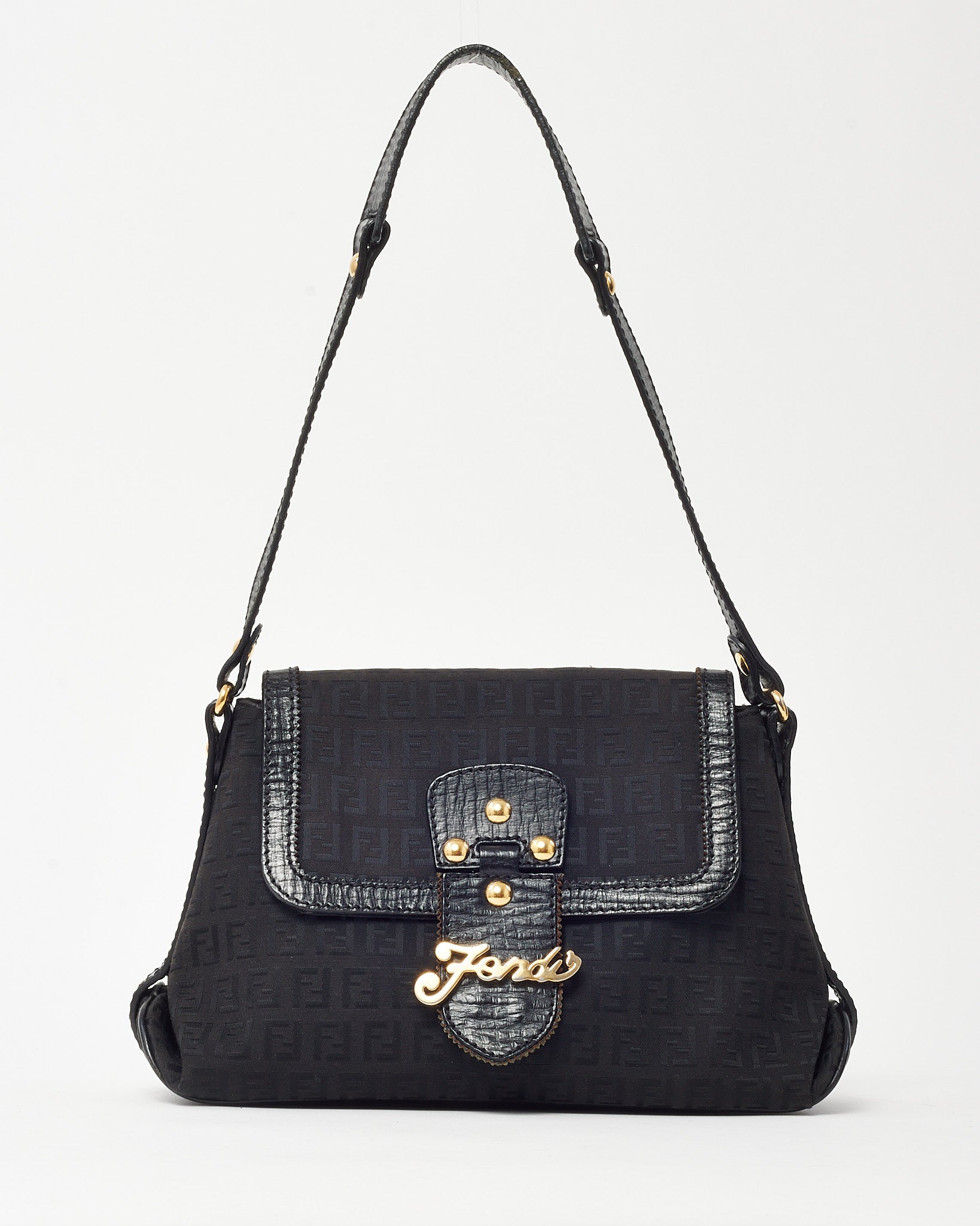 Elevate your everyday style with this pre-loved authentic Fendi Black FF Zucchino Canvas GHW Fendi Logo Shoulder Bag, crafted in signature black FF Zucchino monogram canvas with sleek leather trim for a polished finish. The structured silhouette is accented with gold-tone Fendi logo hardware and features a secure flap closure and adjustable shoulder strap for versatile wear. Designed with a practical interior to hold daily essentials, this Fendi shoulder bag blends iconic branding with timeless sophistication, making it a refined addition to any luxury handbag collection.