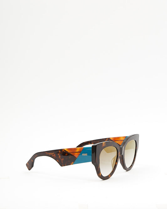 Marron Tortue / Turquoise FF0264 Lunettes de soleil œil de chat surdimensionnées