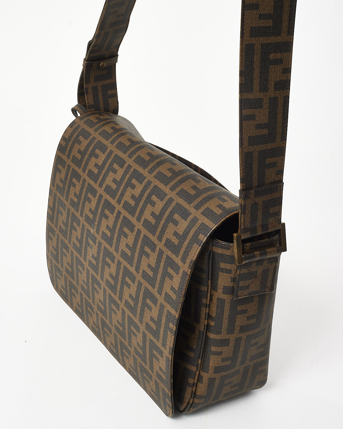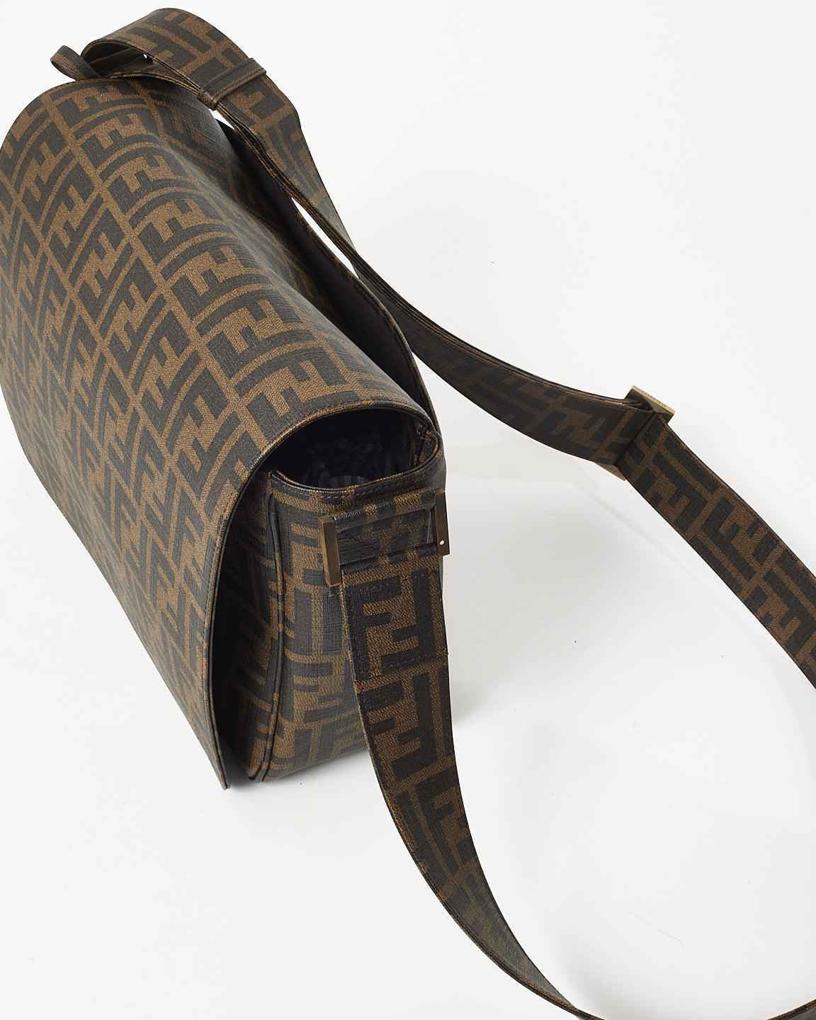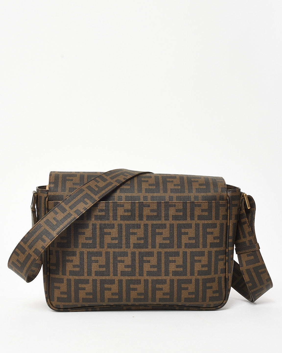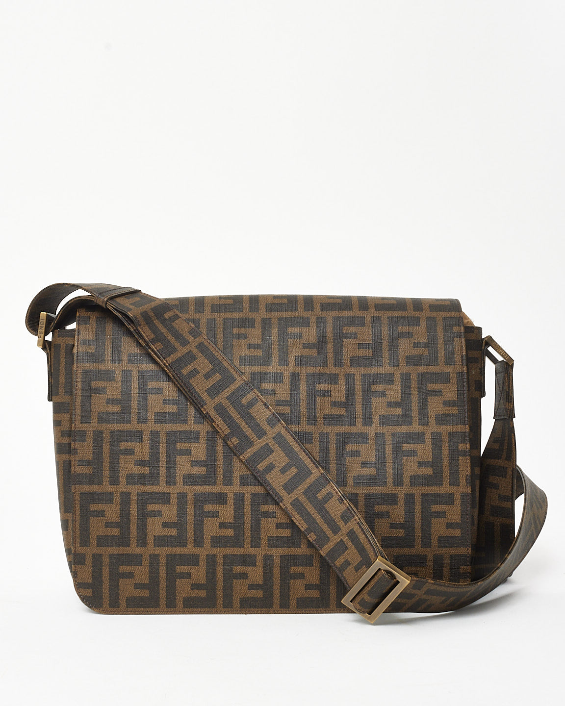 Brown Tobacco FF Zucca Coated Canvas Flap Messenger Bag