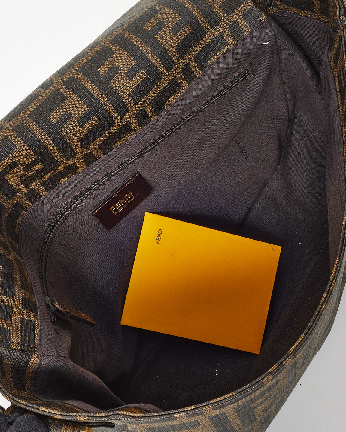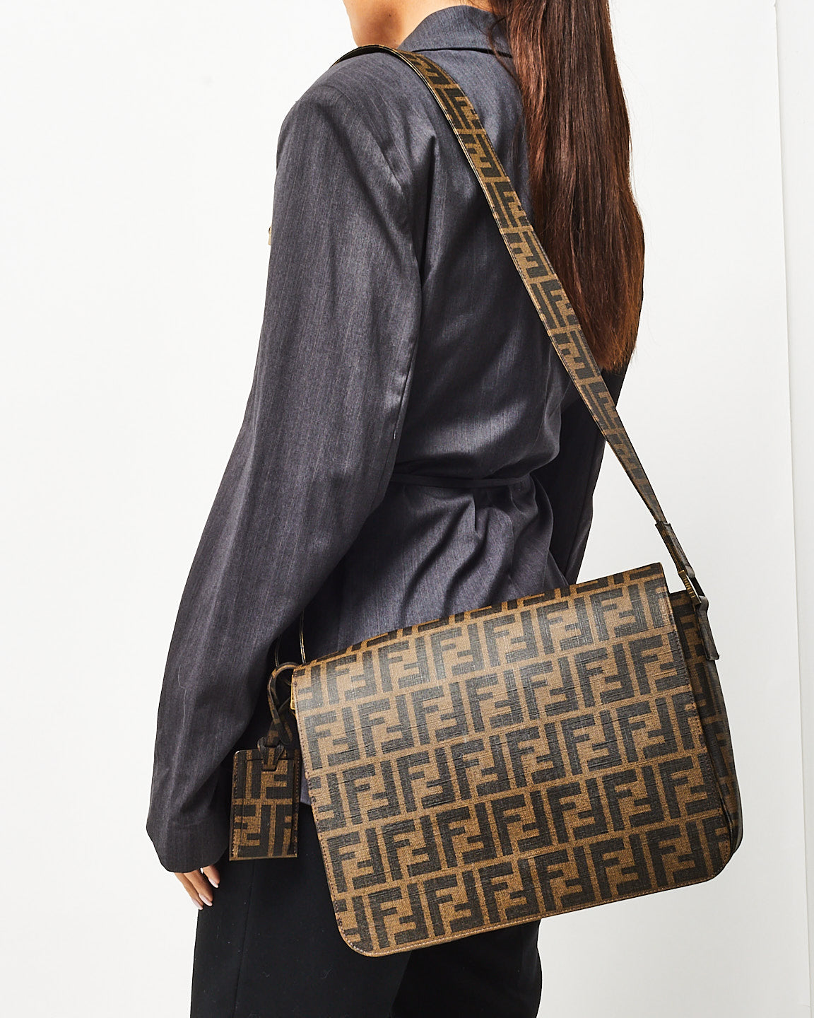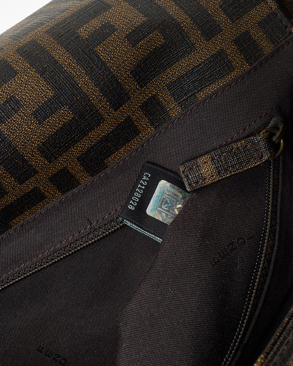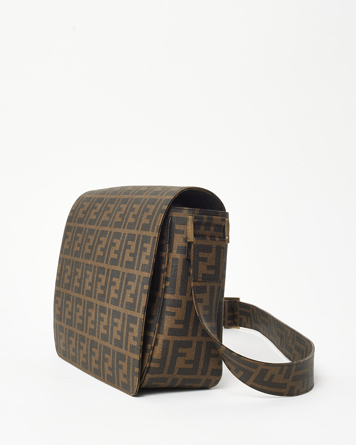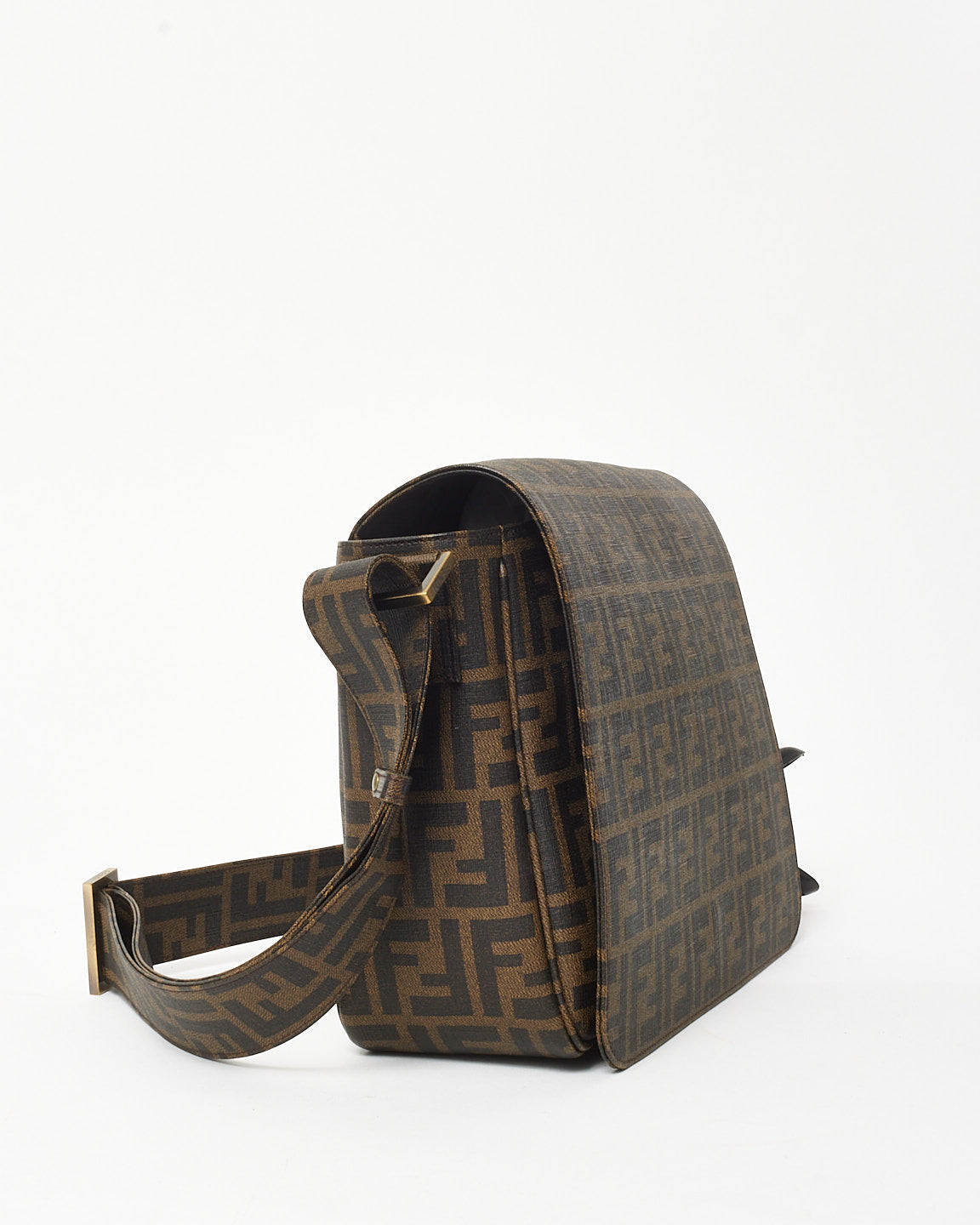 Brown Tobacco FF Zucca Coated Canvas Flap Messenger Bag