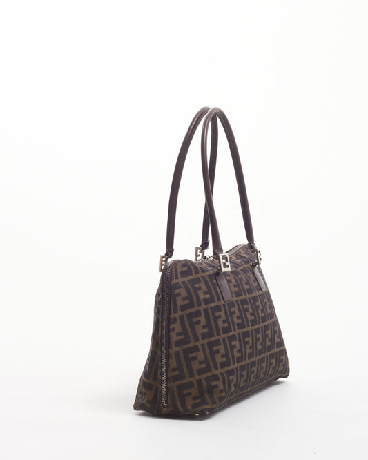 marron Zucca tabac toile double fermeture éclair poignée supérieure fourre-tout