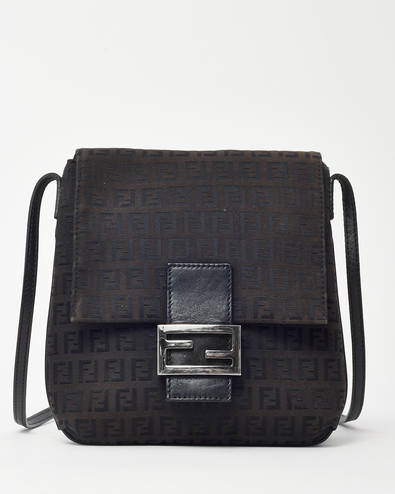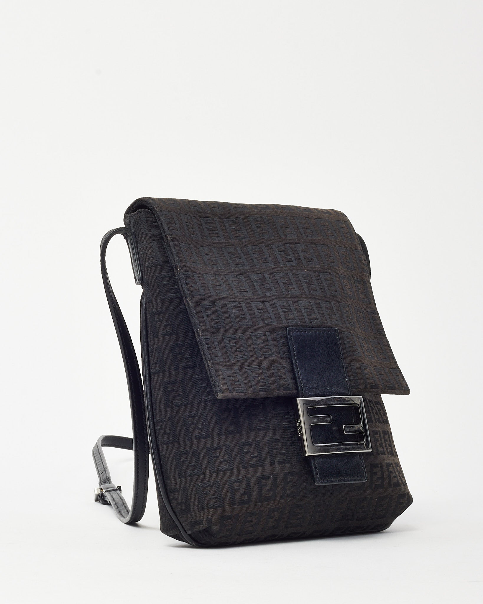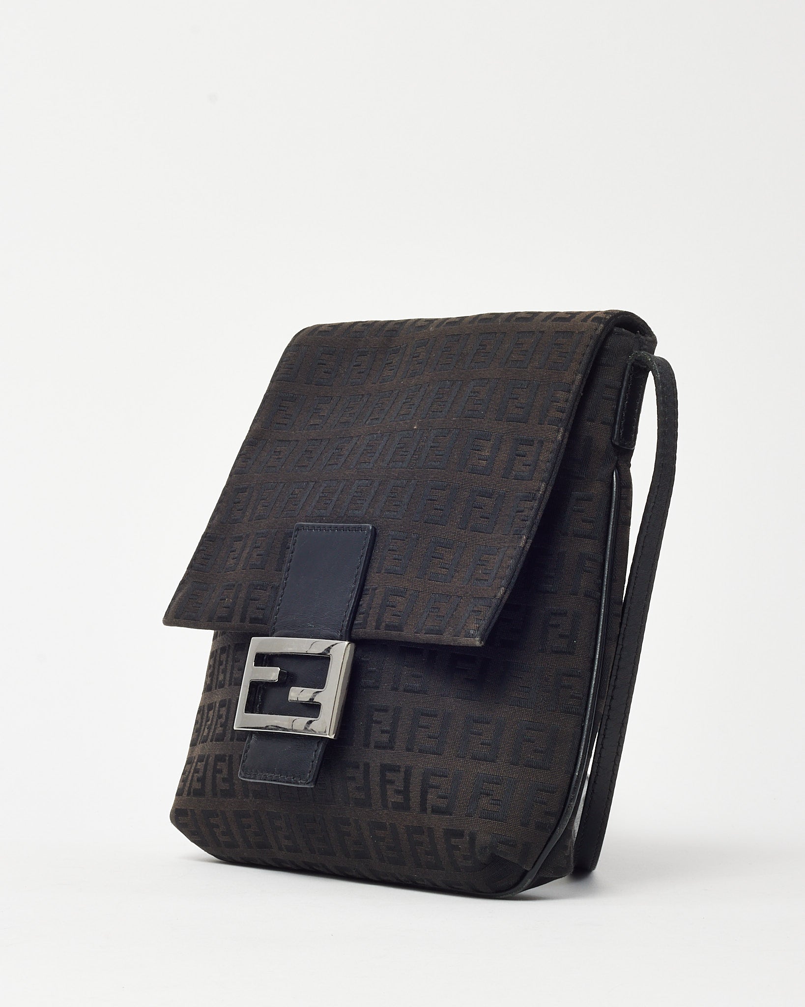 Dark Brown FF Zucchino Canvas SHW FF Flat Crossbody Bag