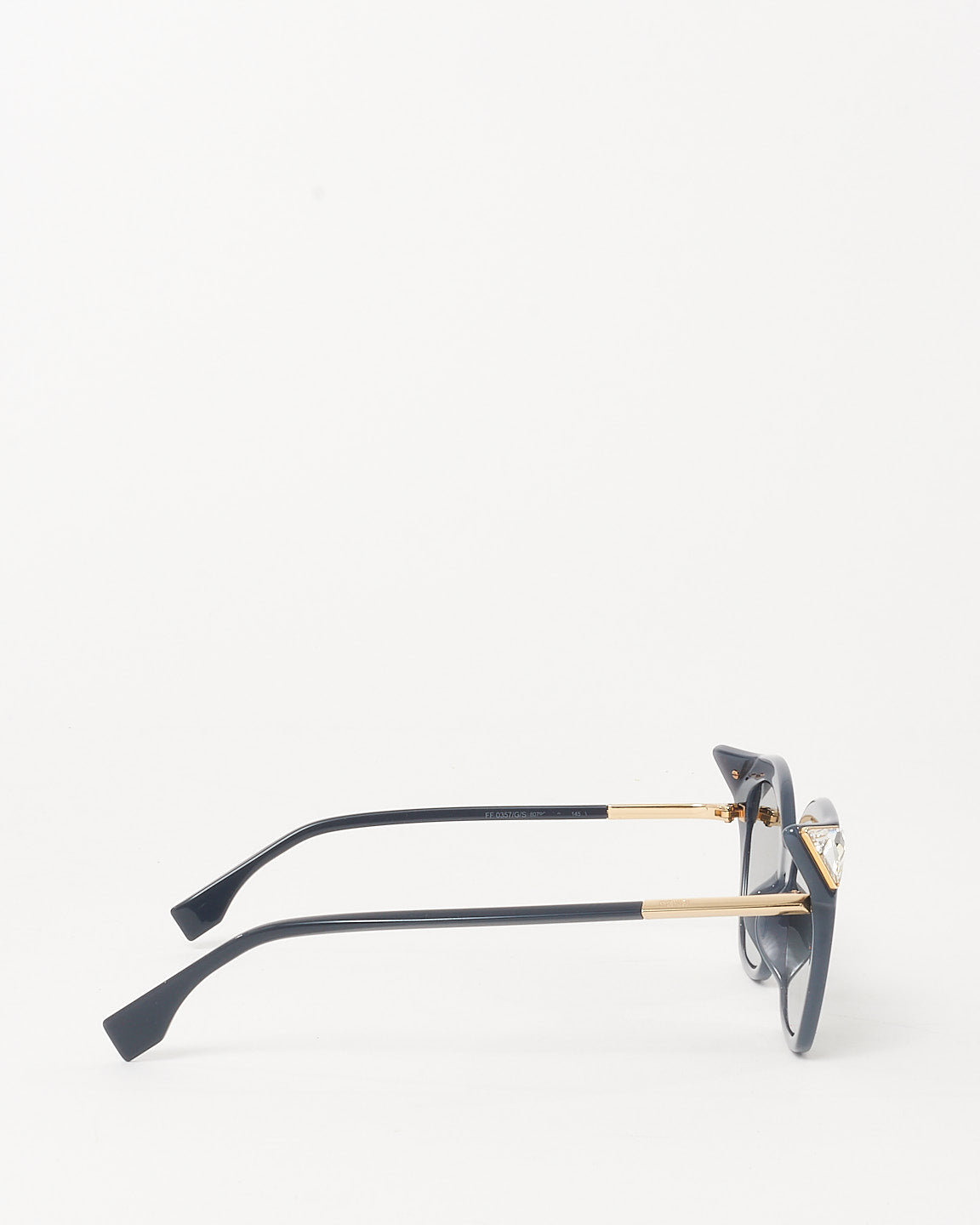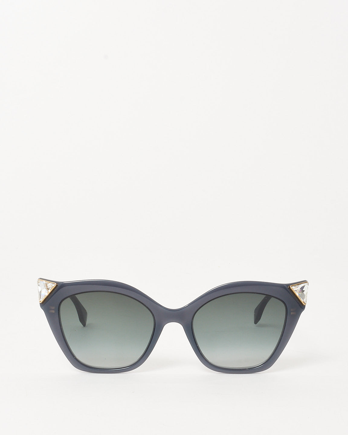 Playful and sharply modern, the pre-owned authentic Fendi Grey / Green Gradient FF 0357/G/S Iridia Cat-Eye Sunglasses are a bold reinterpretation of a classic silhouette. Featuring a geometric cat-eye frame crafted from grey acetate, these standout sunnies are elevated by angular gradient lenses and transparent winged corners for a futuristic edge.