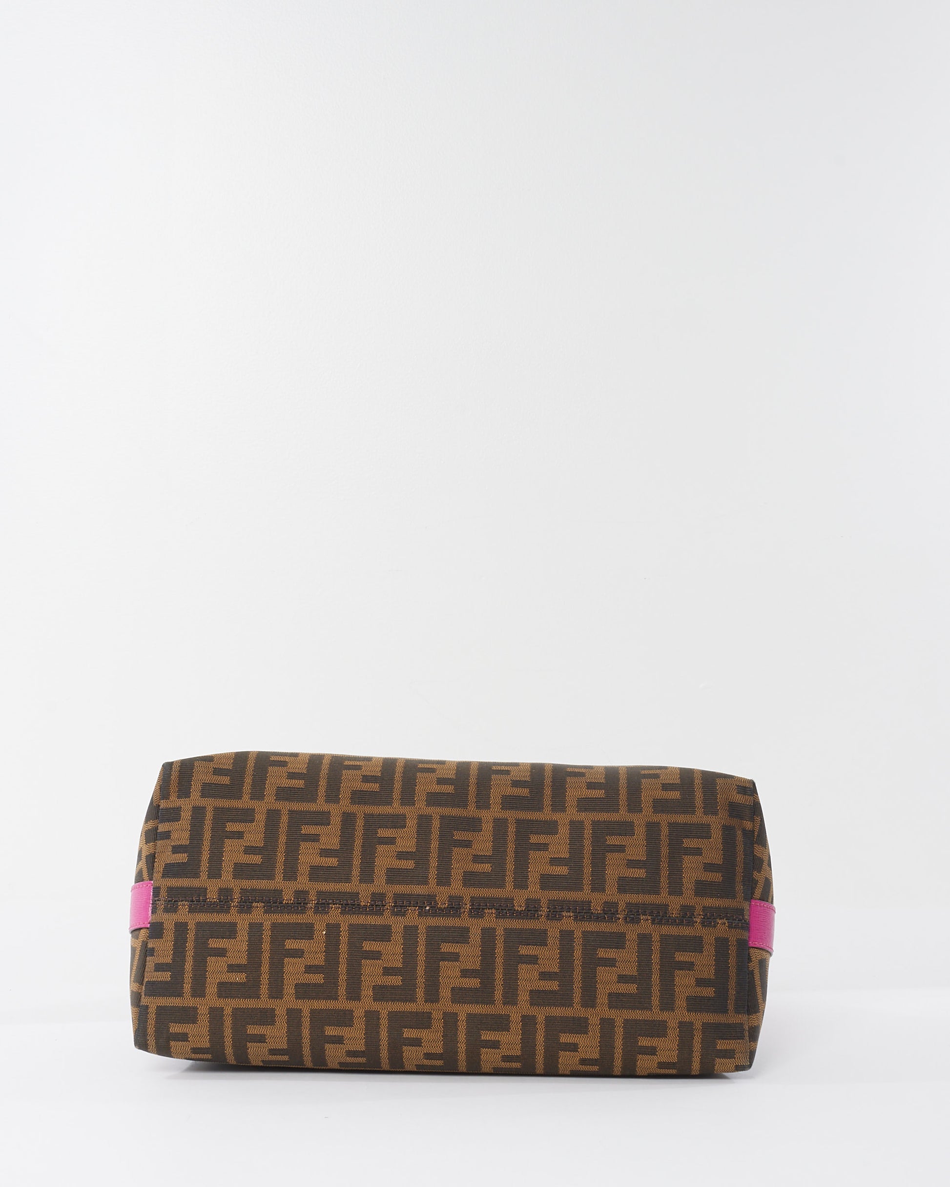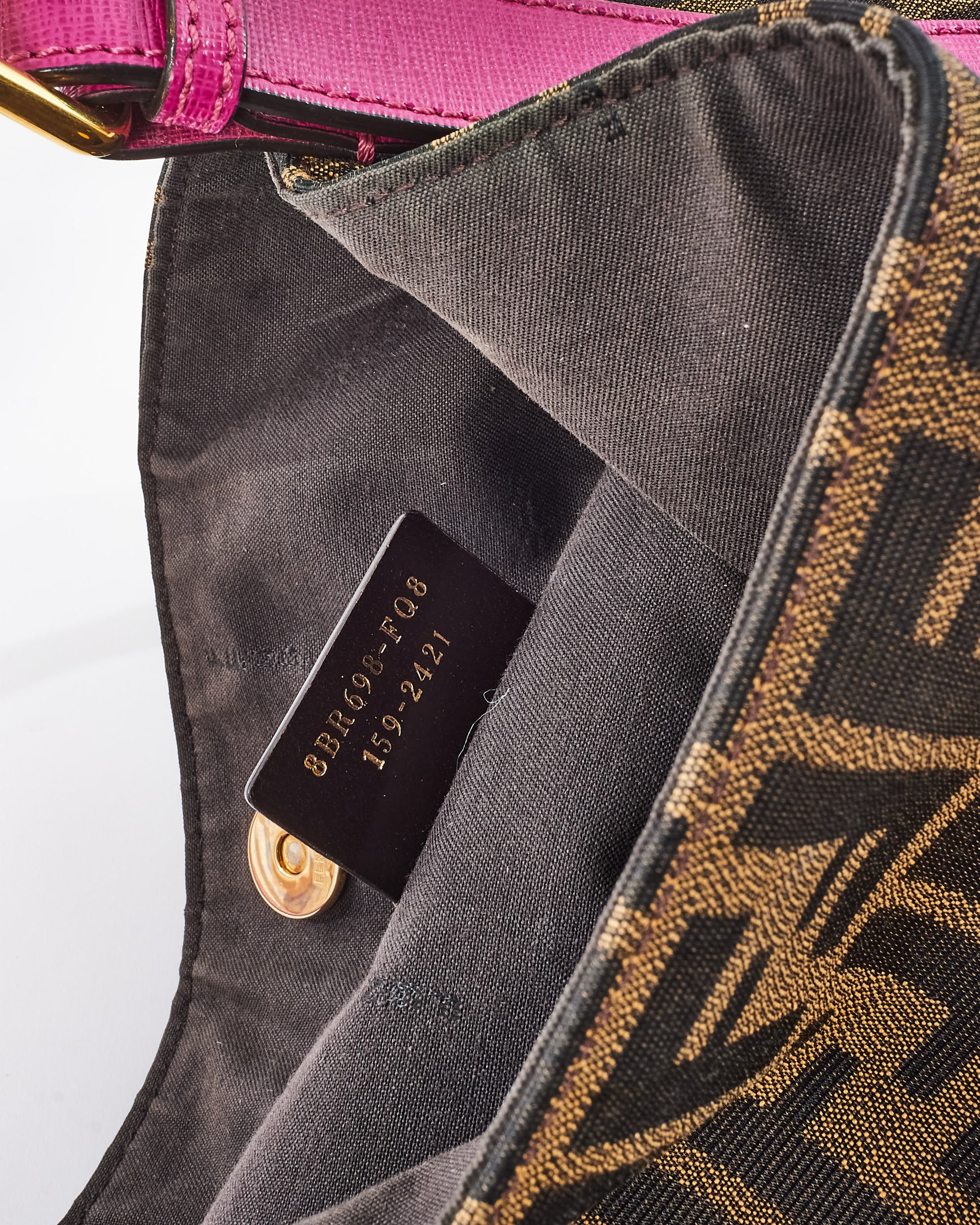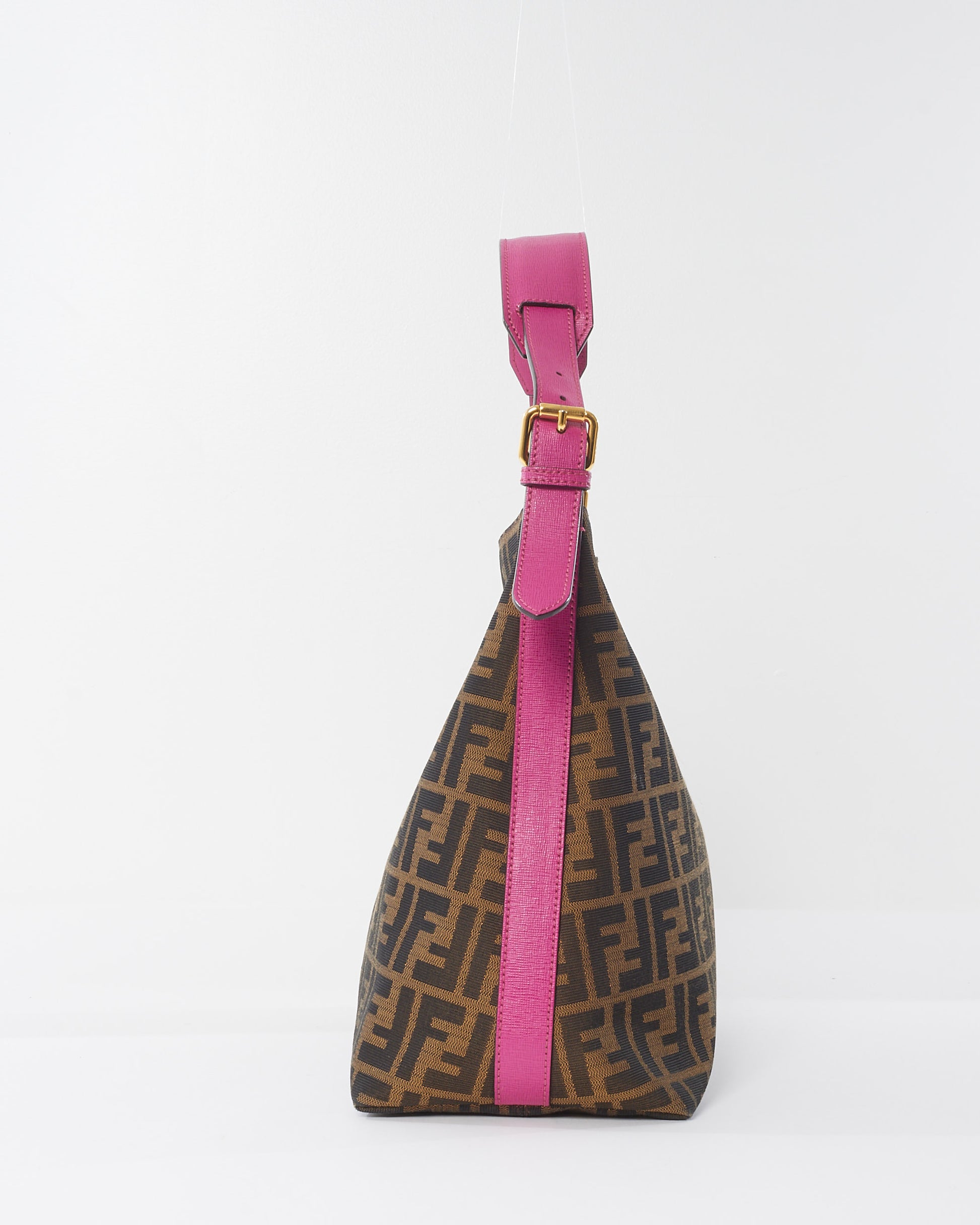 Pink Buckle Strap Brown Zucca Print Canvas Hobo Bag