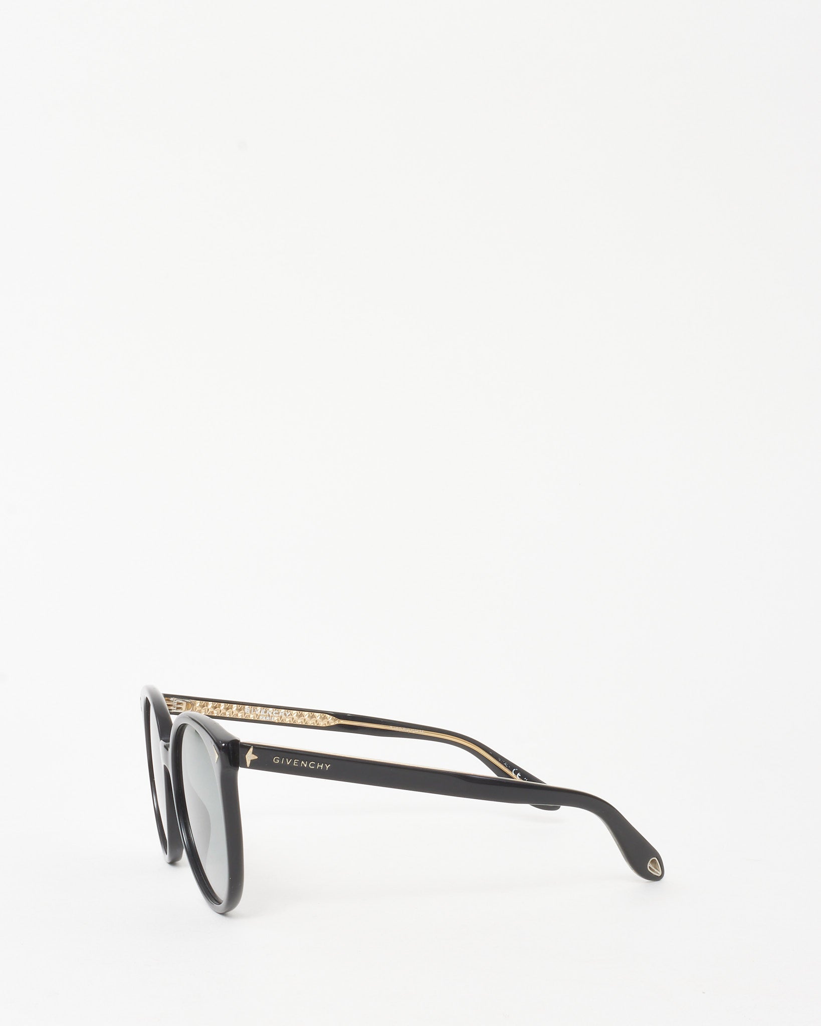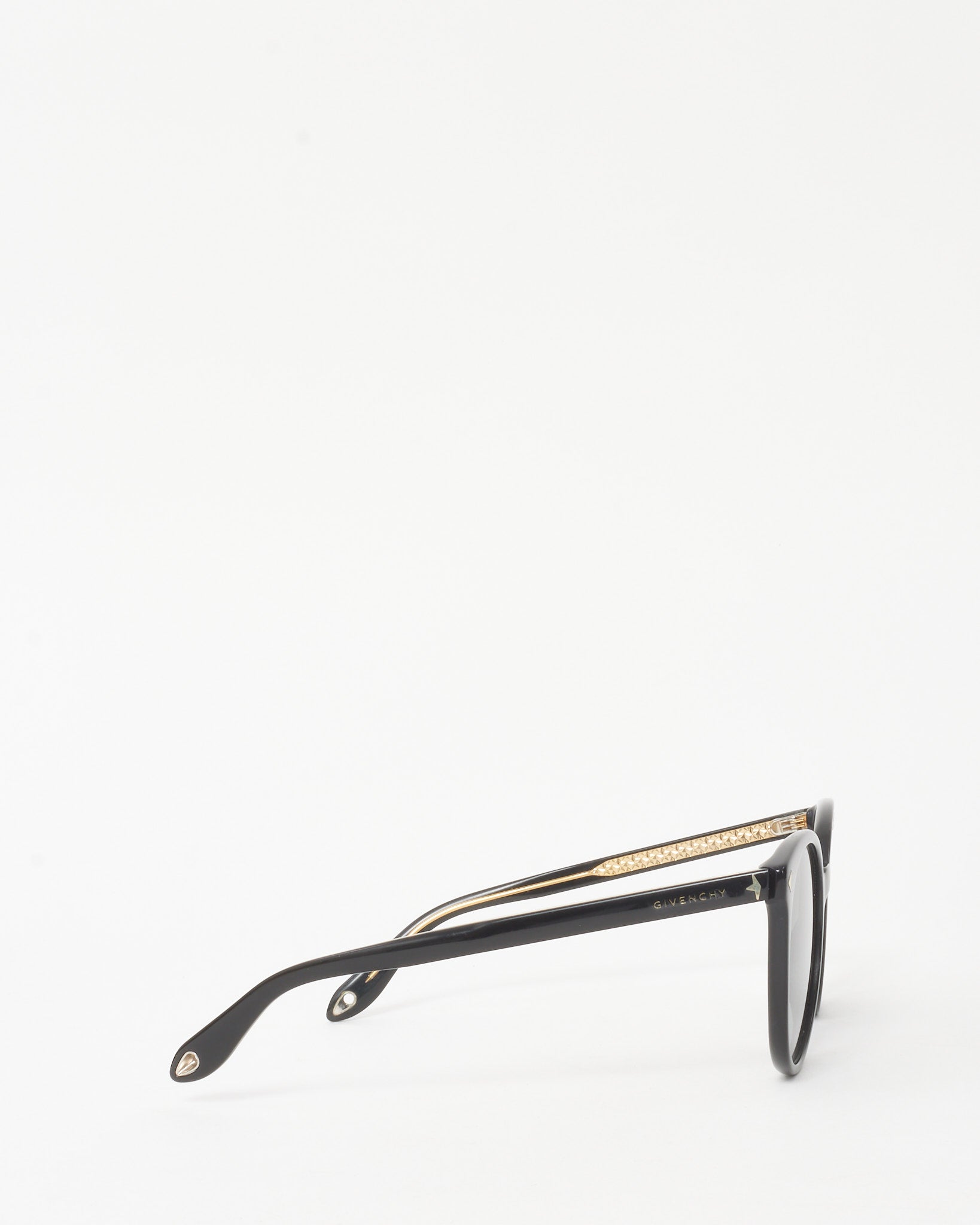 A refined statement of edge and elegance, these pre-loved authentic Givenchy GV 7077/S Cat Eye Sunglasses feature a sharp black acetate frame in a bold cat-eye silhouette. Accented with signature logo details at the temples, this pair blends modern glamor with timeless appeal. A versatile essential for elevating daytime looks with Parisian sophistication.
