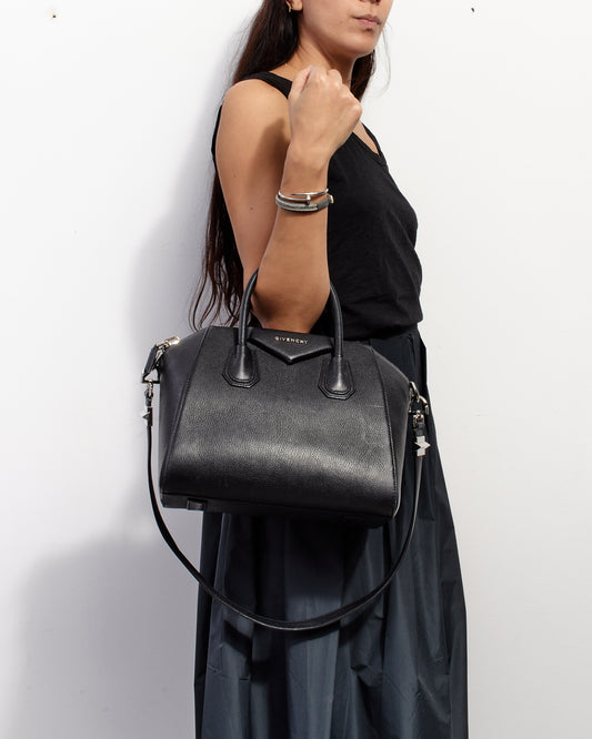 Petit sac cabas Antigona en cuir noir avec bandoulière