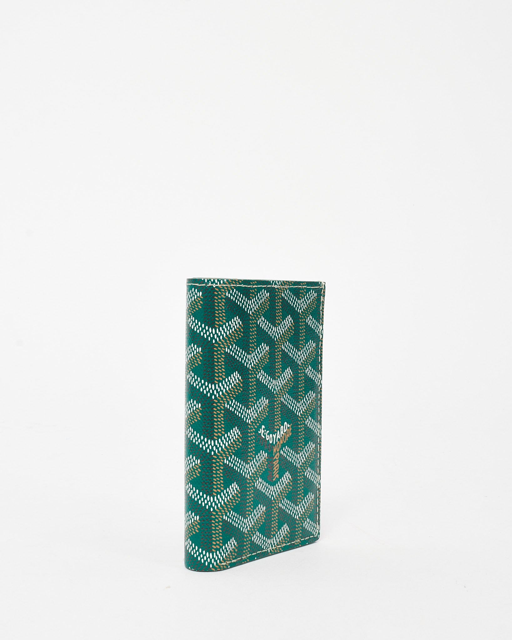 Compact and refined, this pre-owned authentic Goyard Saint Pierre Card Wallet is crafted from the house’s signature green Goyardine coated canvas and finished with tonal leather trim. Designed with multiple card slots and a sleek silhouette, it’s ideal for carrying essentials with understated elegance.