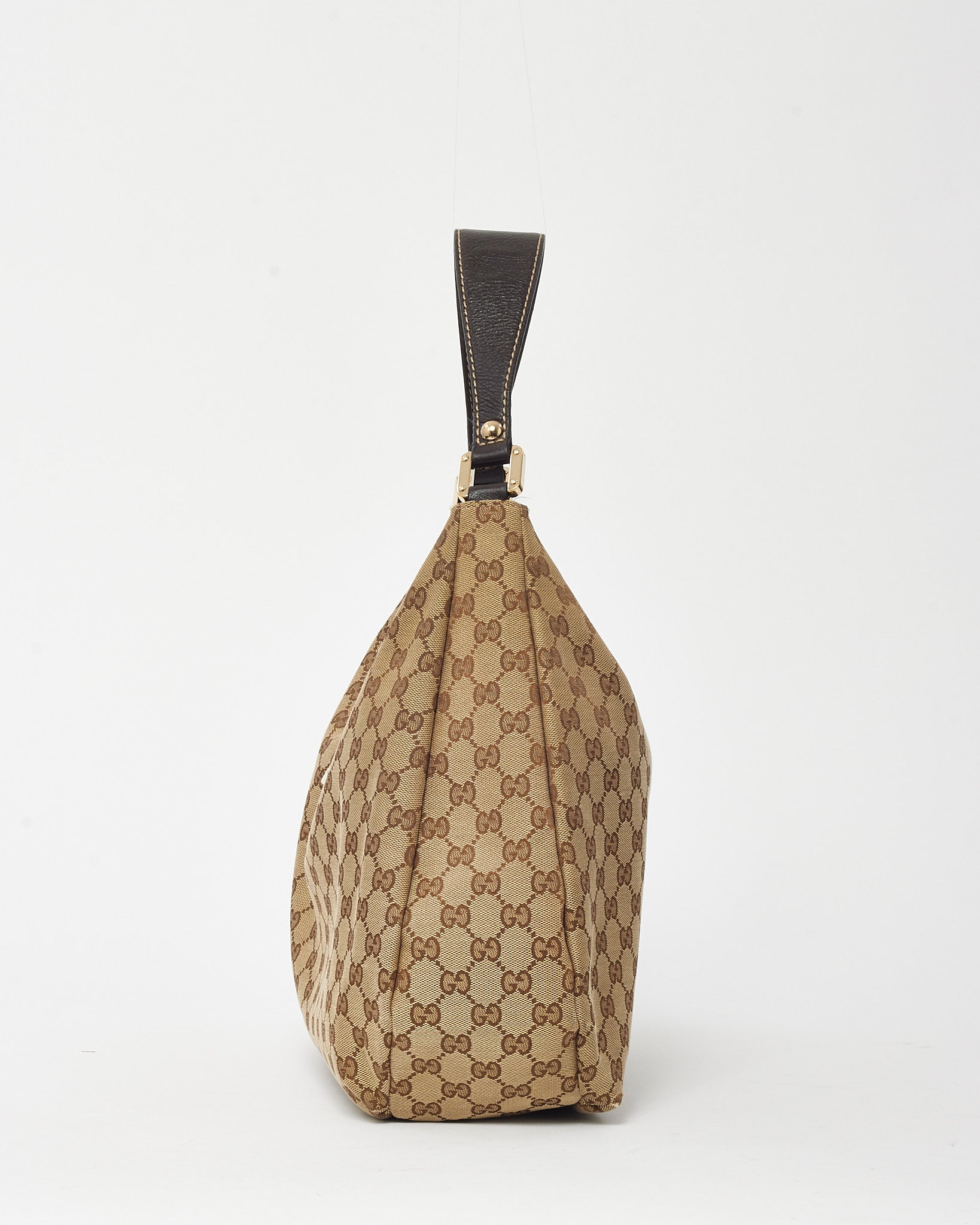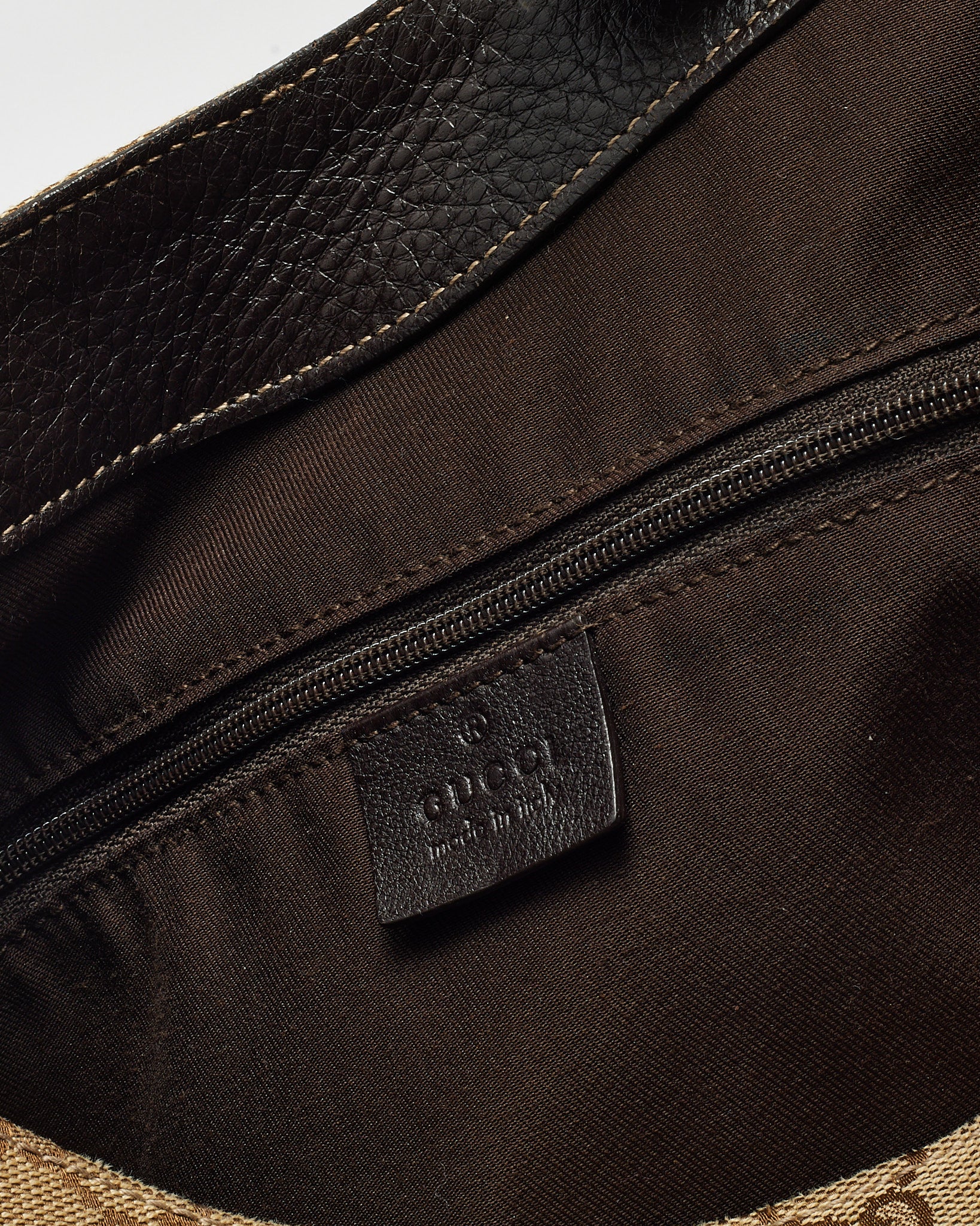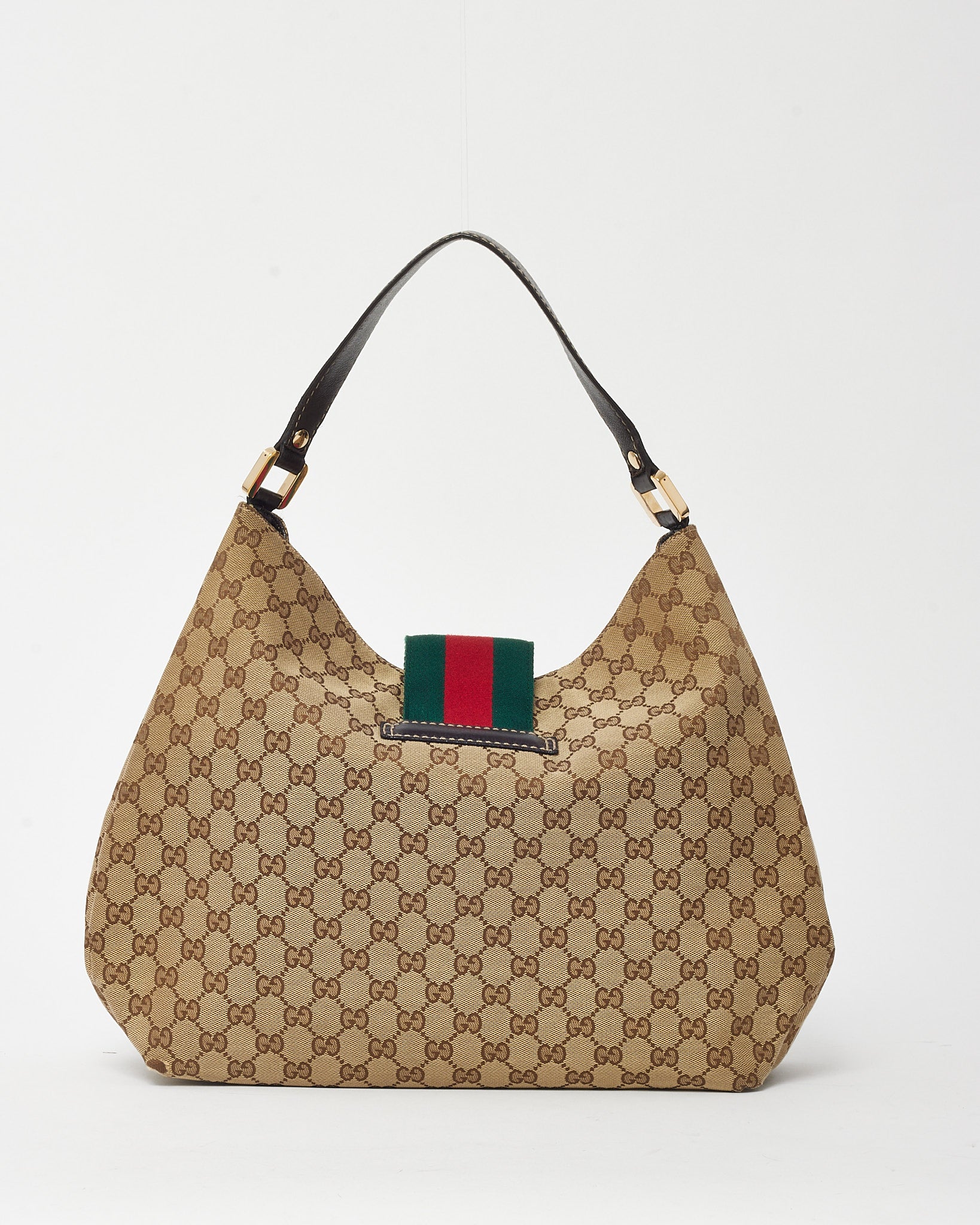 Elevate your everyday carry with this pre-loved authentic Gucci Beige and Brown GG Monogram Canvas New Ladies Web Large Hobo Bag. Crafted from the house’s iconic GG monogram canvas with brown leather trim, this spacious hobo features Gucci’s signature green and red web stripe for a timeless touch. The relaxed, curved silhouette is complemented by a single shoulder strap and gold-tone hardware, offering comfort and style in equal measure. Ideal for daily use, this classic design effortlessly blends Italian heritage with functional sophistication.