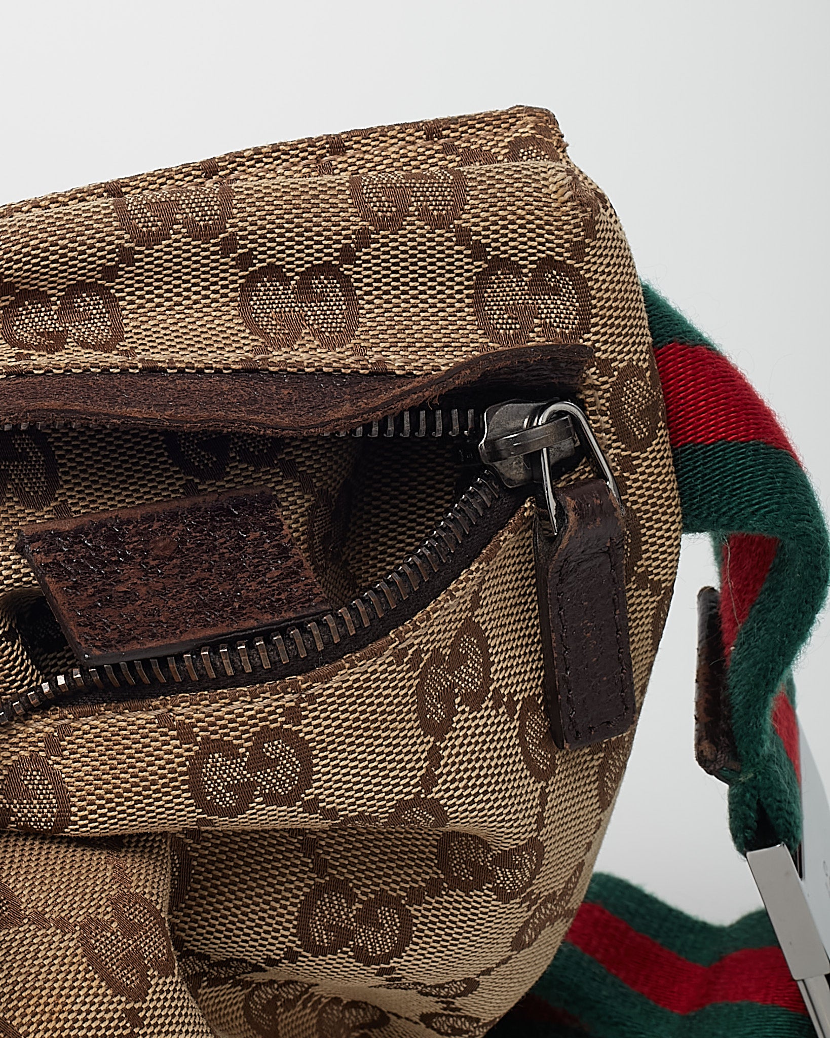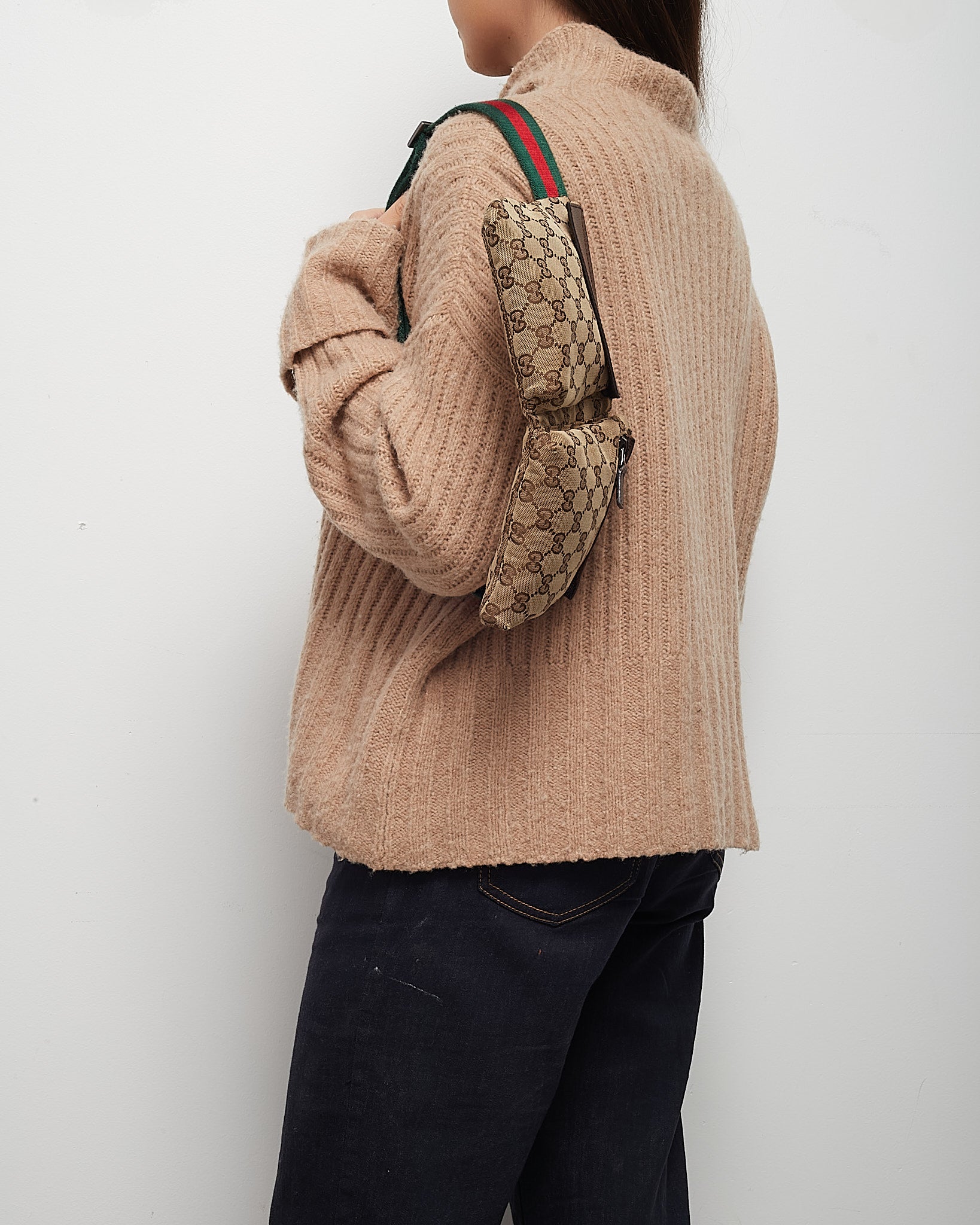 Beige and Brown Monogram GG Canvas Double Pocket Belt Bag