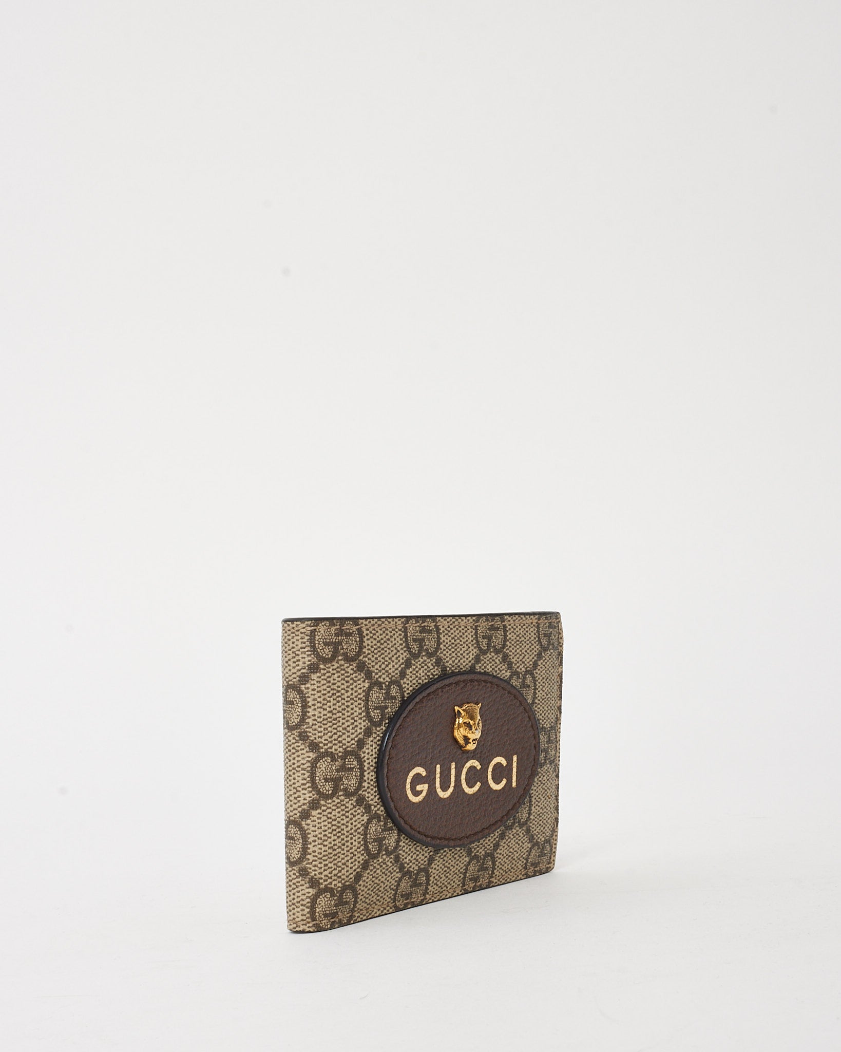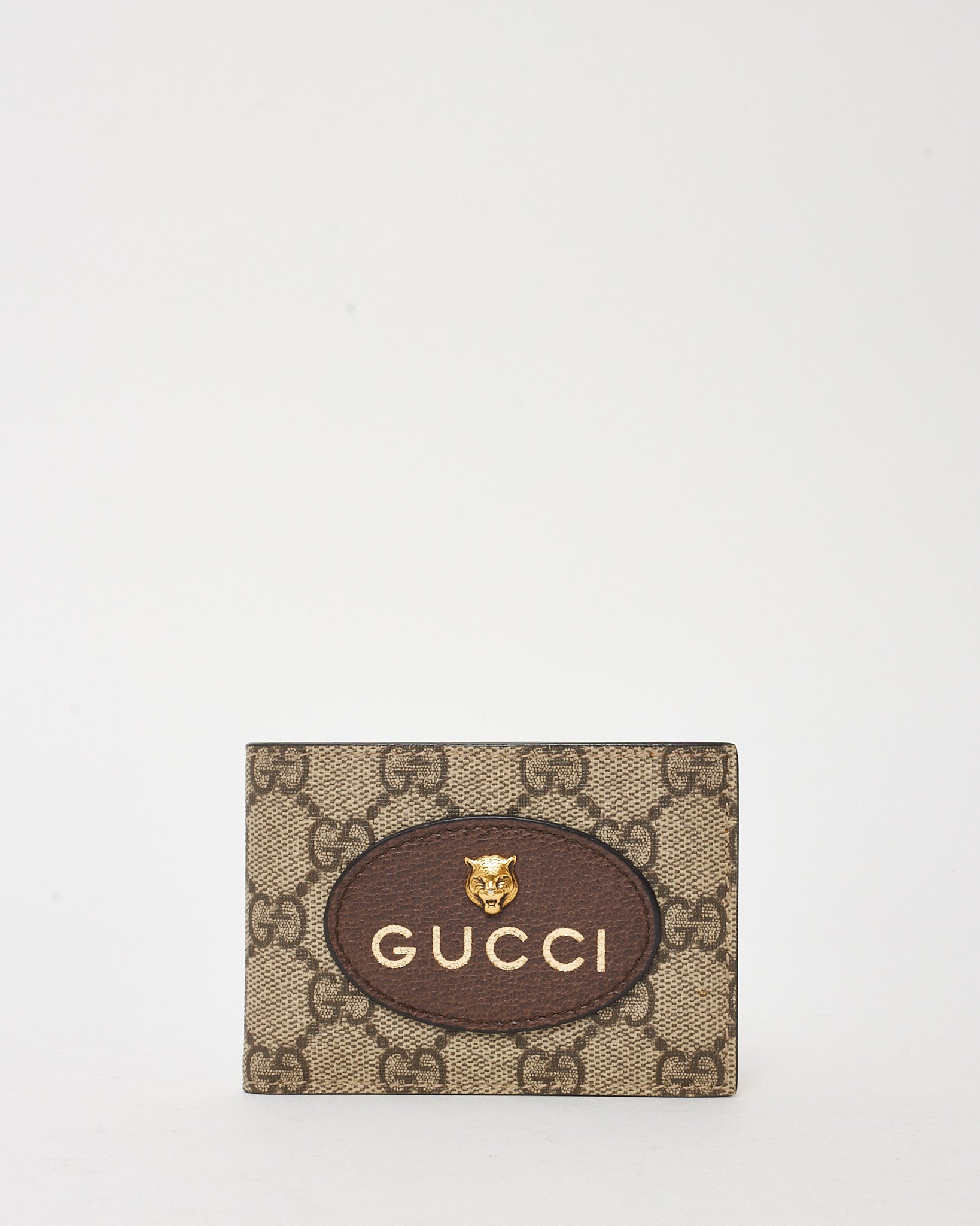 Beige and Brown Monogram GG Supreme Canvas Tiger Head Bifold Wallet