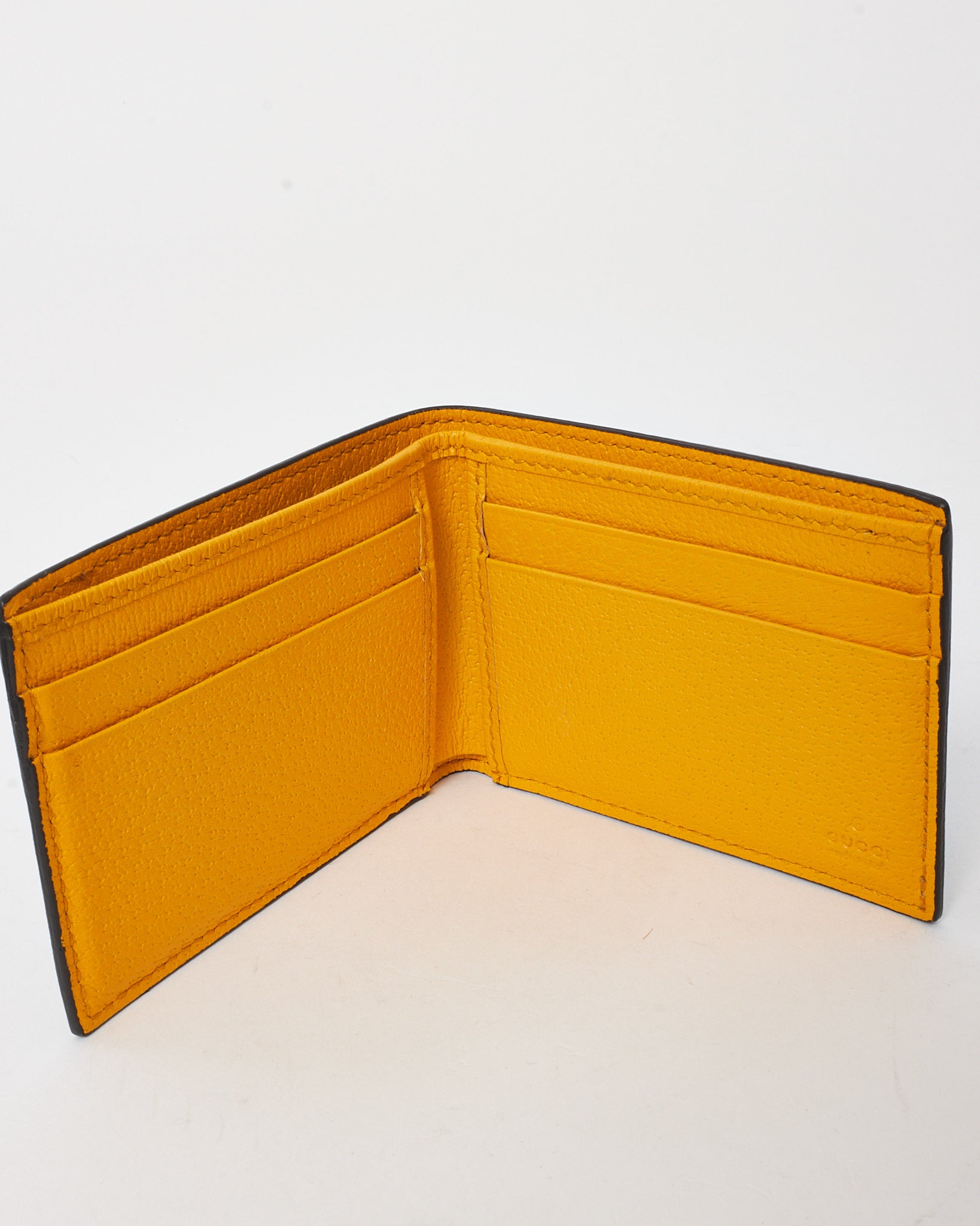 A refined symbol of heritage and edge, this pre-loved authentic Gucci bifold wallet is crafted from GG Supreme monogram canvas in timeless beige and brown tones. Featuring the house’s iconic Dionysus tiger head detail, this slim silhouette opens to reveal a well-organized interior with multiple card slots and a bill compartment. Compact yet bold, it adds a signature statement to everyday essentials.