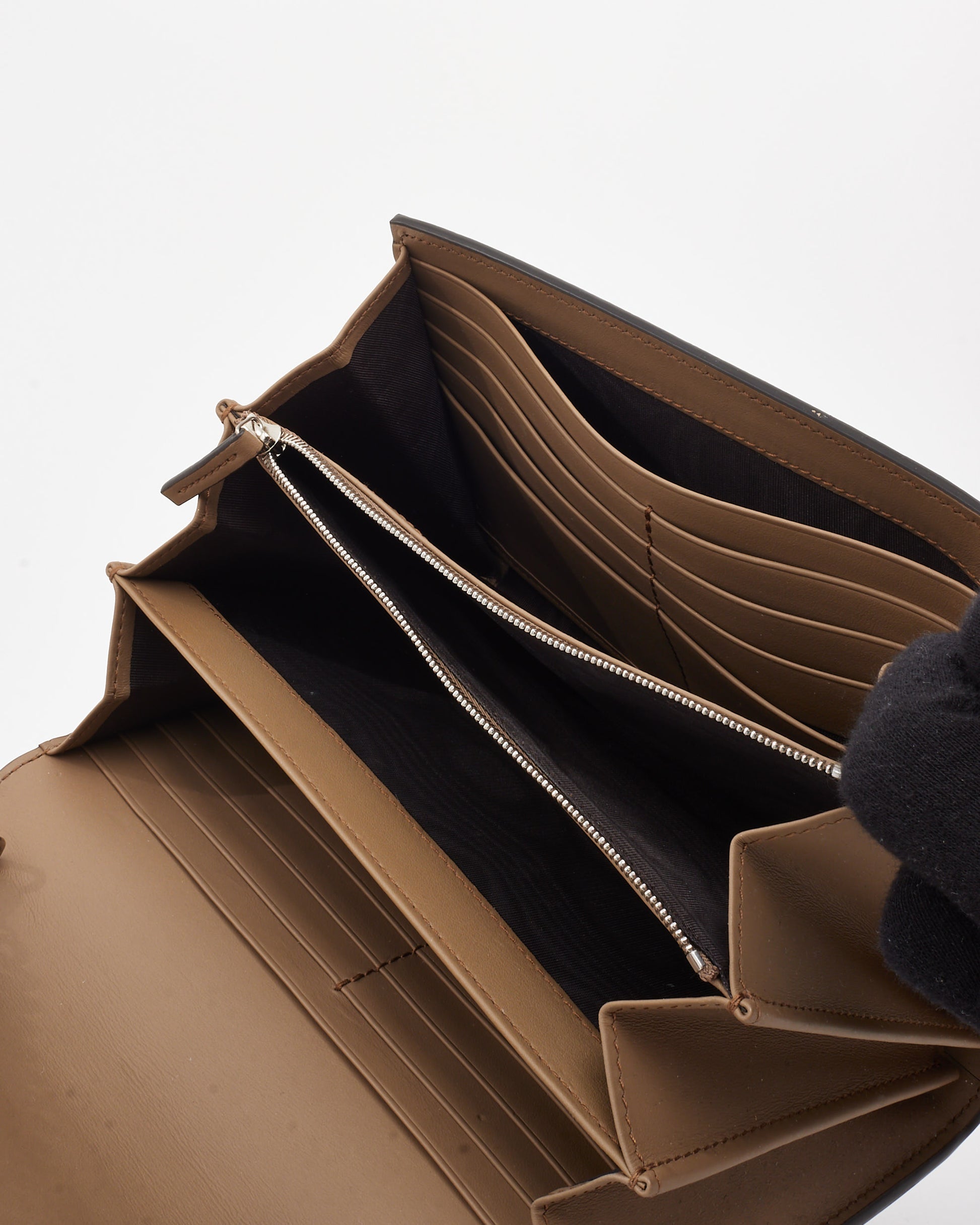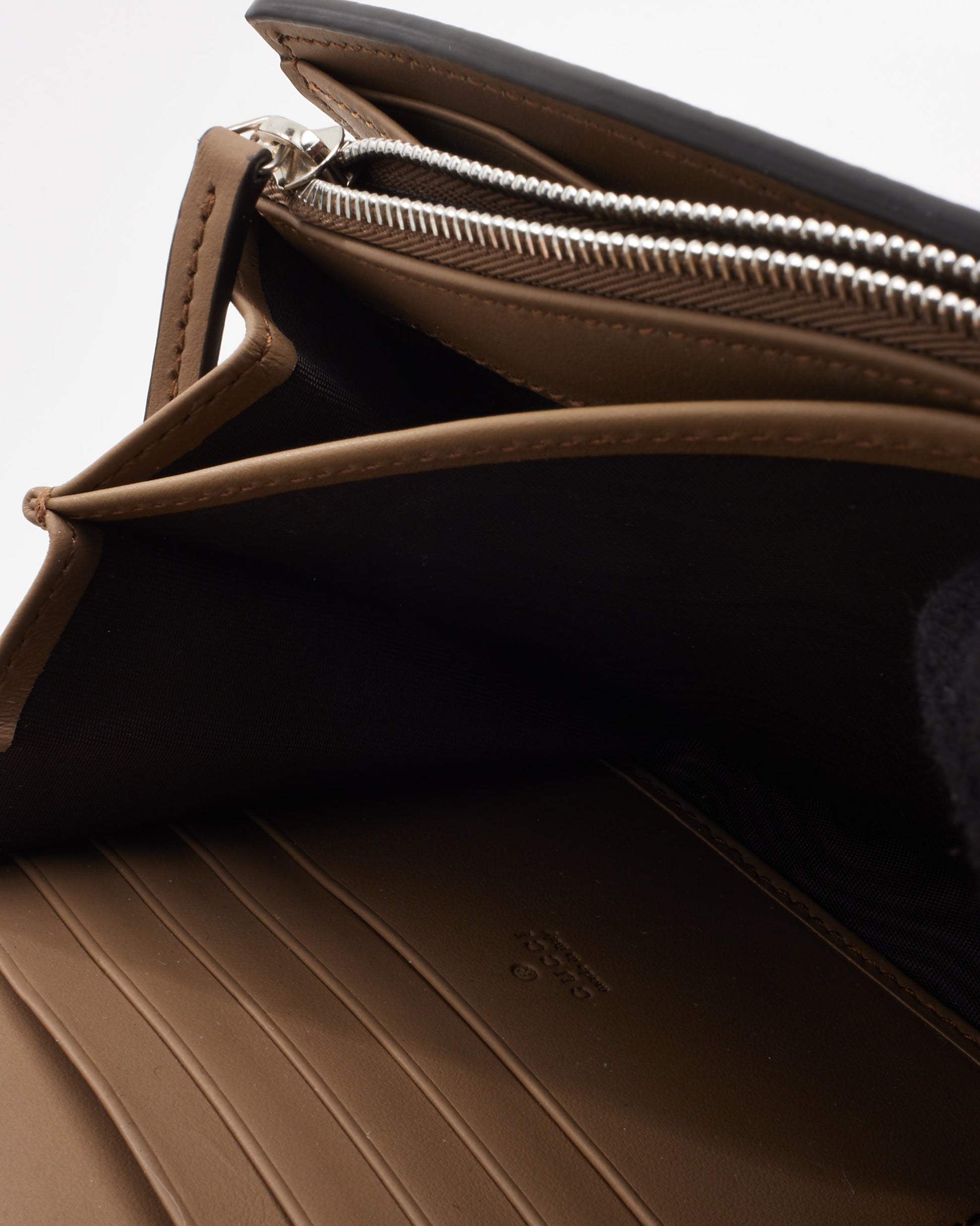 The antique silver-tone chain strap allows for effortless crossbody or shoulder wear, while the structured envelope silhouette adds a sophisticated touch. The interior offers multiple card slots, a bill compartment, and a zippered coin pocket, making it a practical yet luxurious essential for both day and evening styling.
