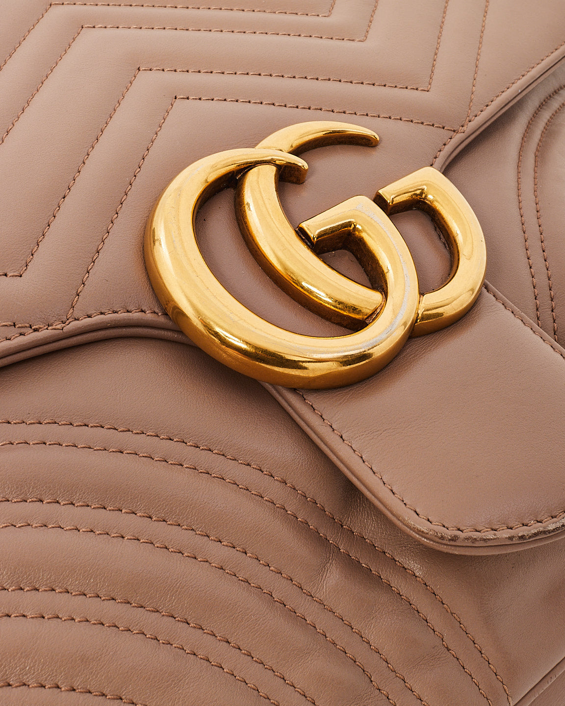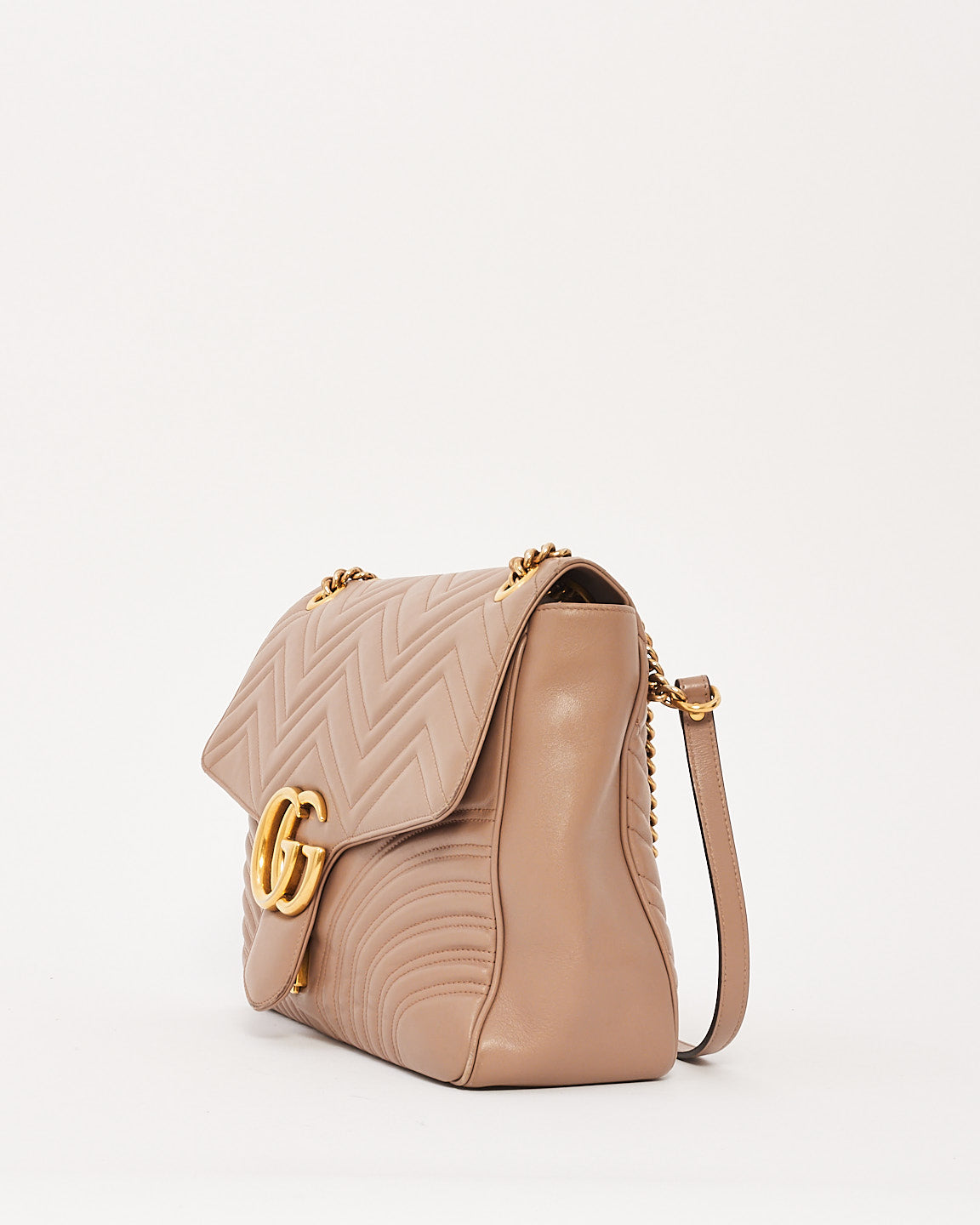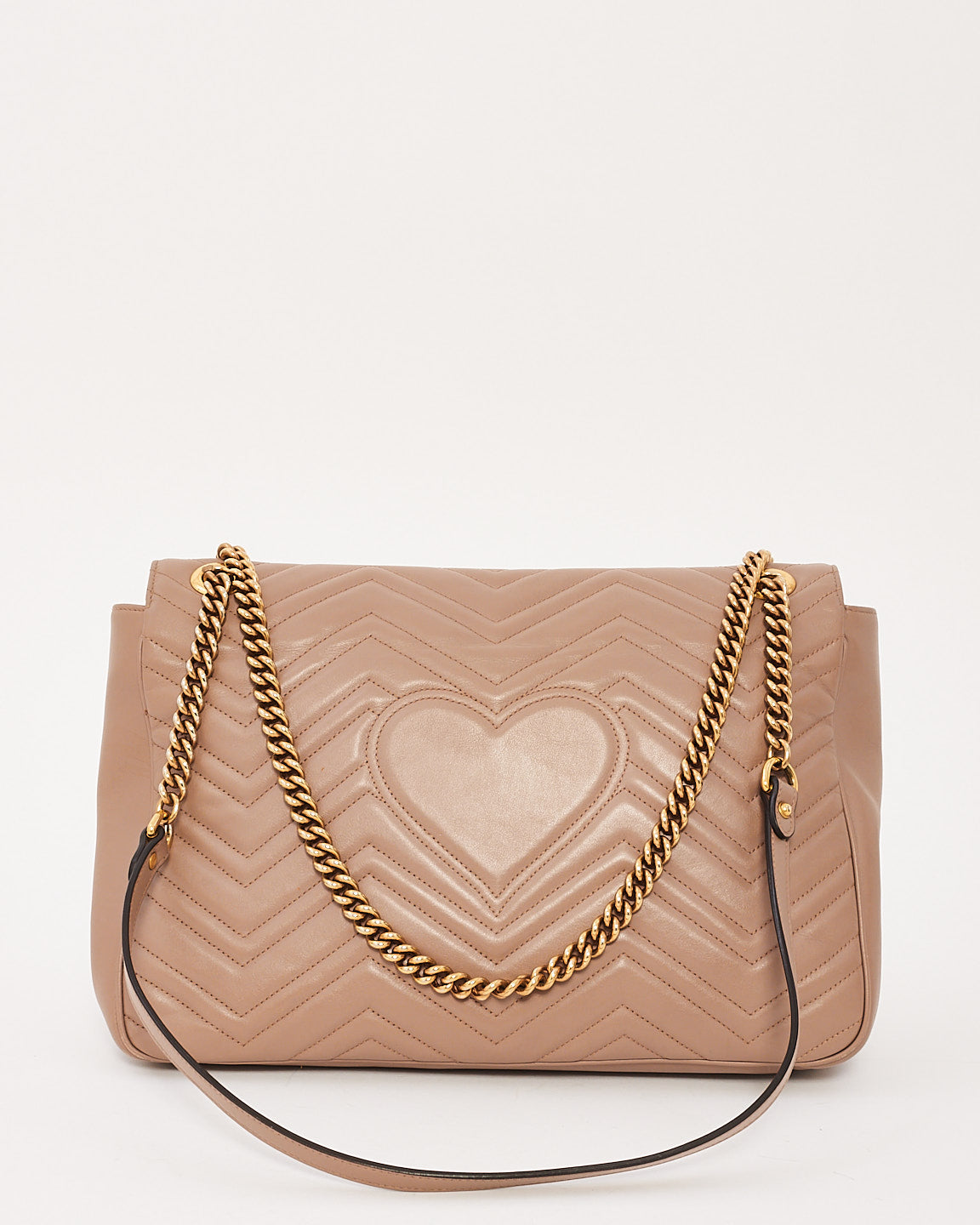 Grand sac à bandoulière GG Marmont Chevron Matelassé rose poussiéreux
