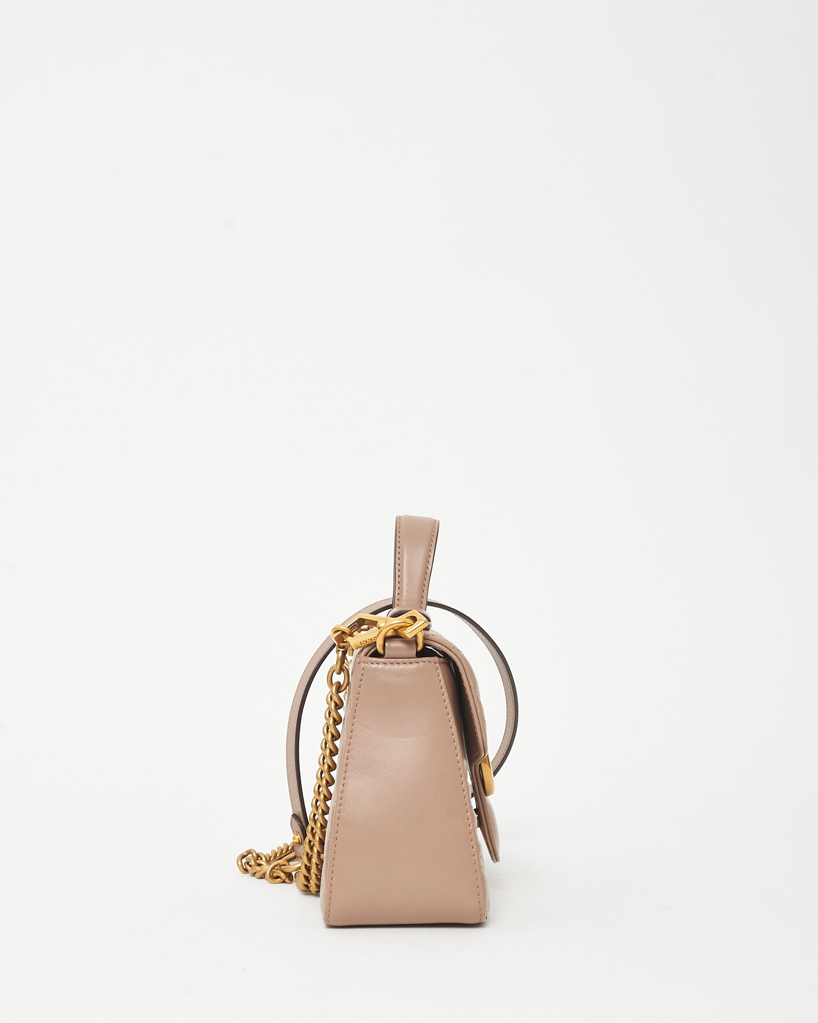 Beige Matelassé Leather Mini GG Marmont Top Handle Bag