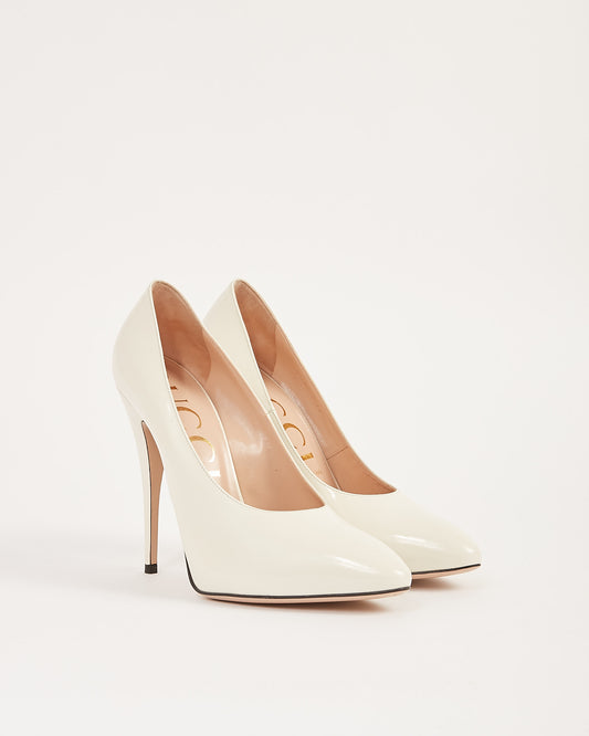 Condition extérieure : 9/10 – Excellent état. L'extérieur des escarpins présente des signes minimes d'usure, de légères marques et rayures, ainsi que quelques fils mineurs tirés sur les détails des perles.
