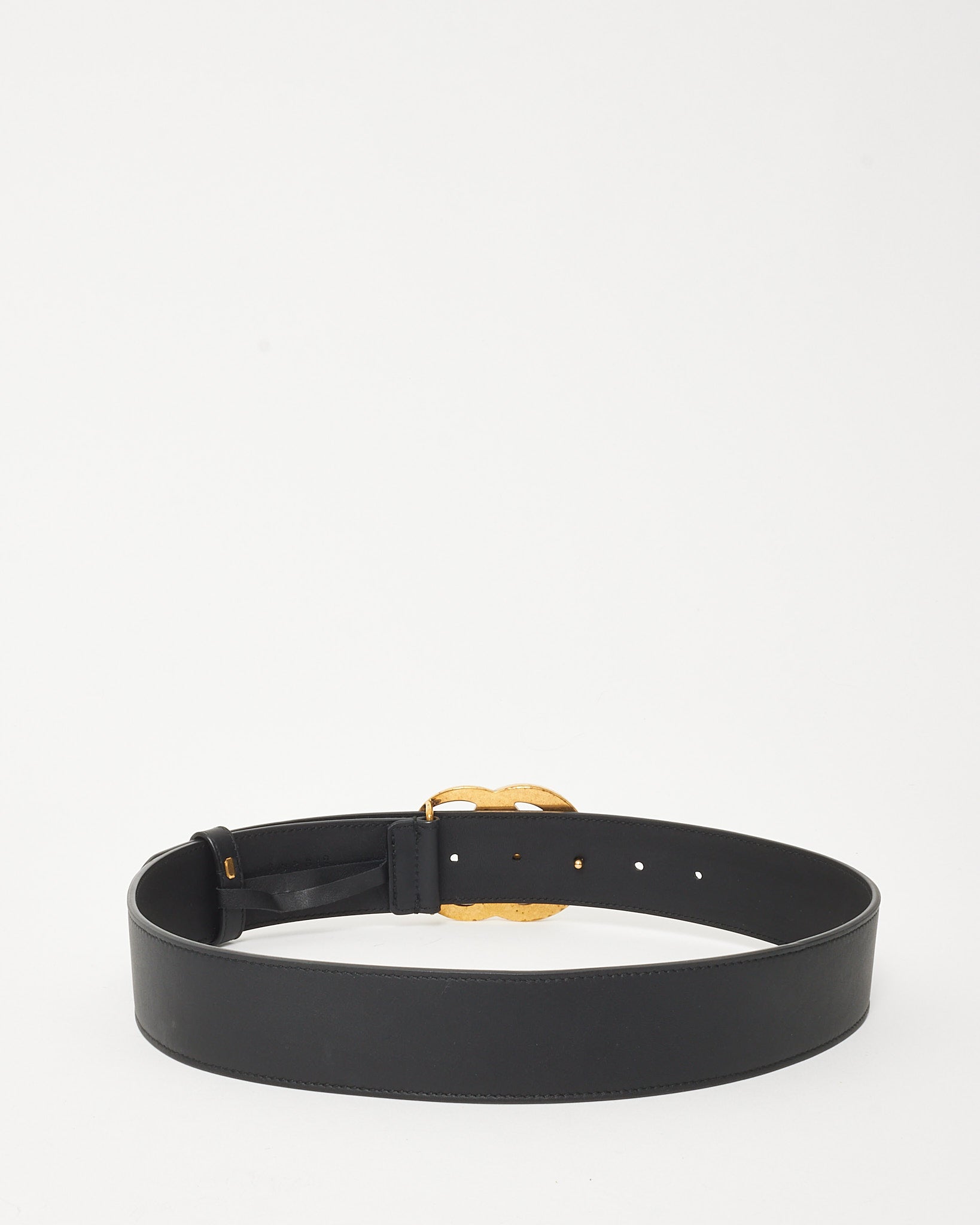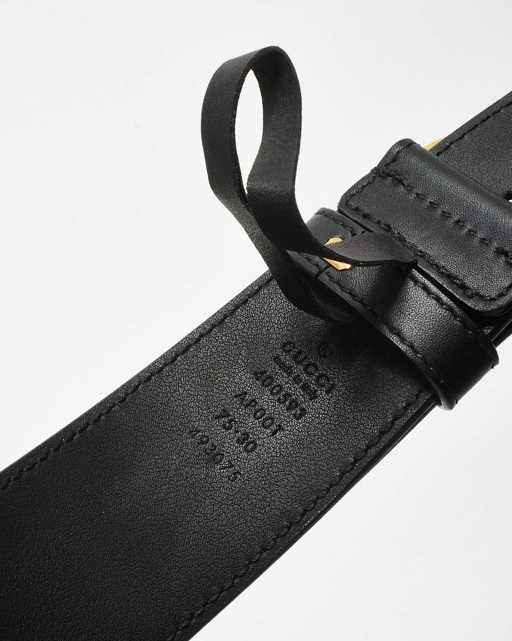 A timeless statement of refined Italian craftsmanship, this pre-loved authentic Gucci GG Marmont Belt is crafted in smooth black leather and features the iconic gold-tone interlocking G buckle. Sized at 75/30, it offers versatile styling—whether cinched at the waist or threaded through belt loops. A signature accessory that adds elevated polish to any ensemble.