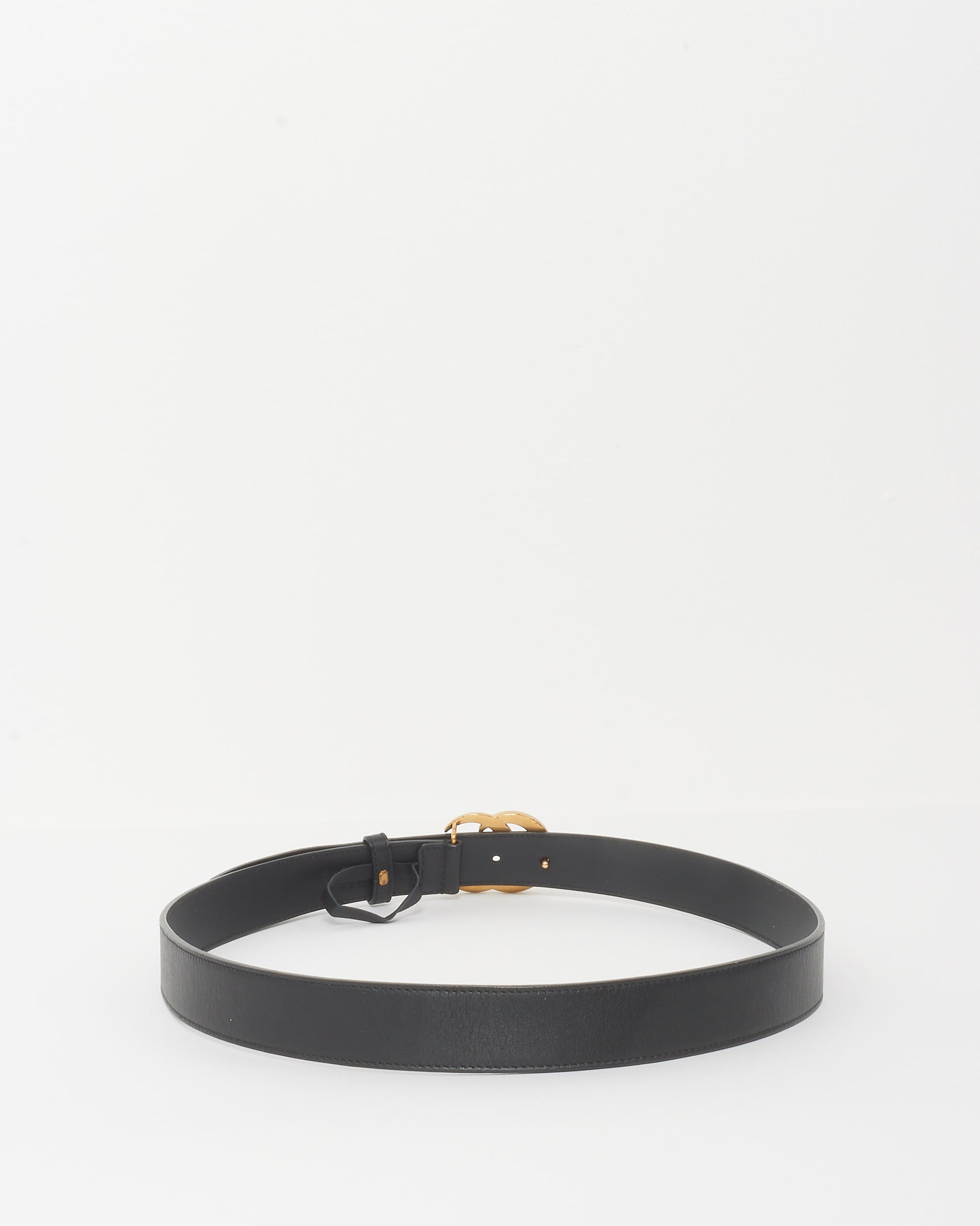 Refined and endlessly versatile, the authentic pre-owned Gucci Black Leather GG Marmont Thin Belt is a timeless accessory that elevates any look. Crafted from smooth black leather, this belt features a slim silhouette that exudes sophistication and effortless style.