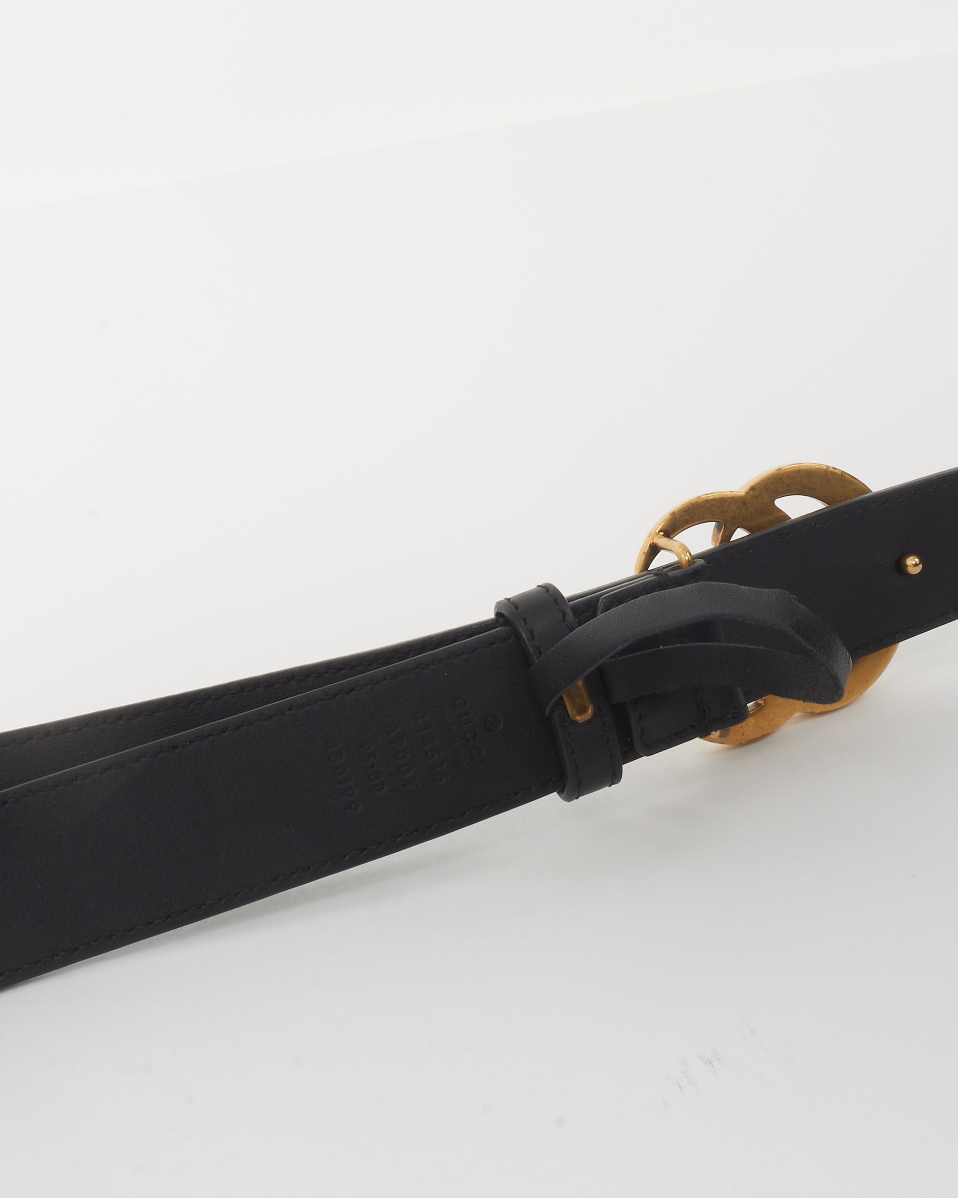 The signature antique gold-tone GG Marmont buckle adds a touch of iconic Gucci elegance, making it perfect for cinching the waist over dresses, styling with high-waisted trousers, or pairing with denim for a polished finish.