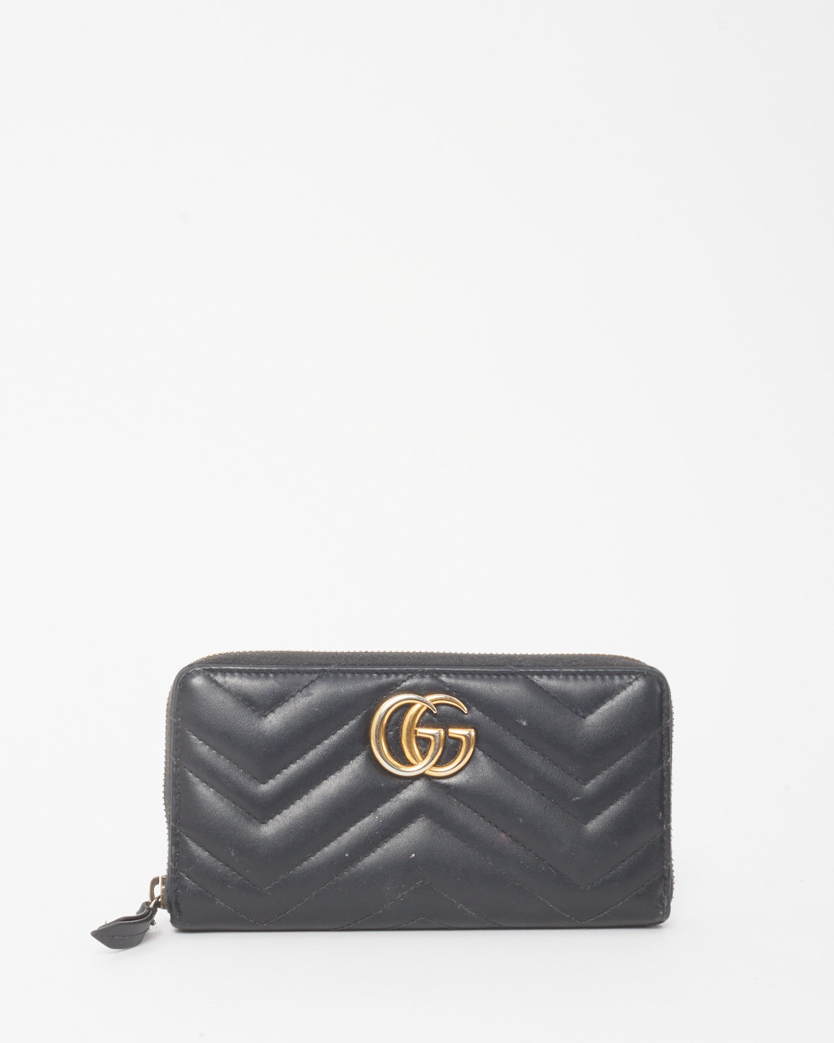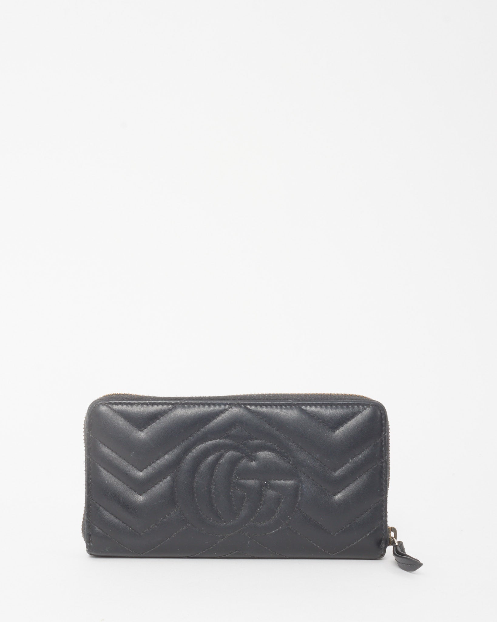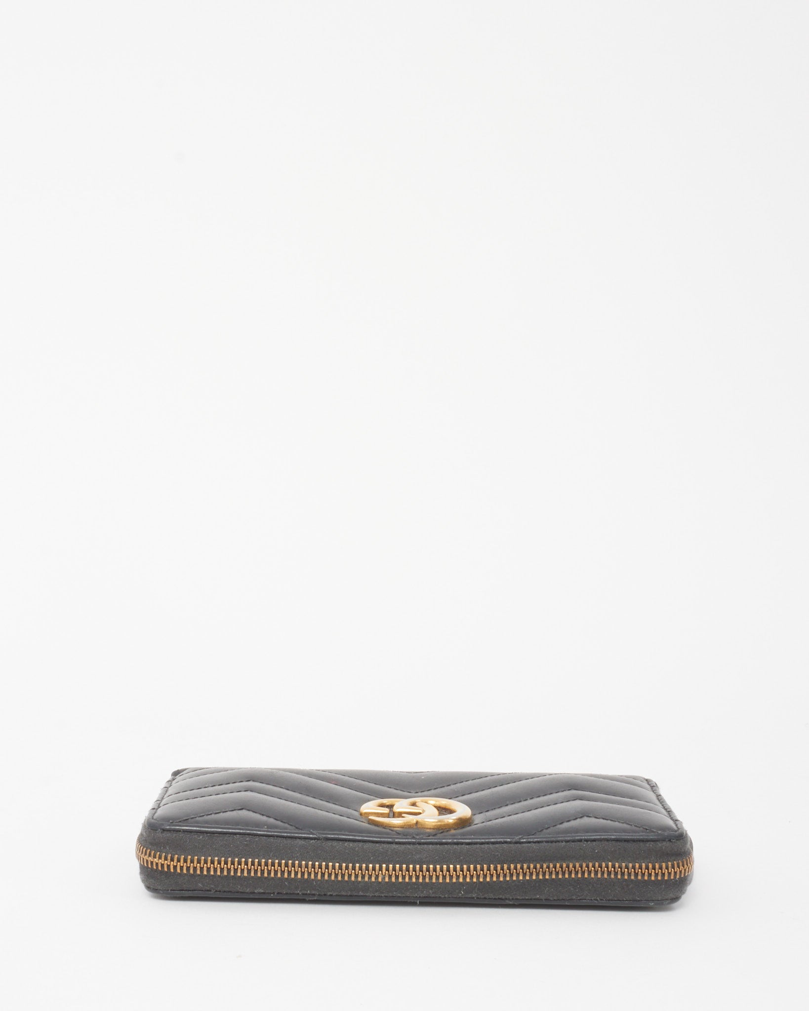 Portefeuille zippé GG Marmont en cuir Matlasseé noir