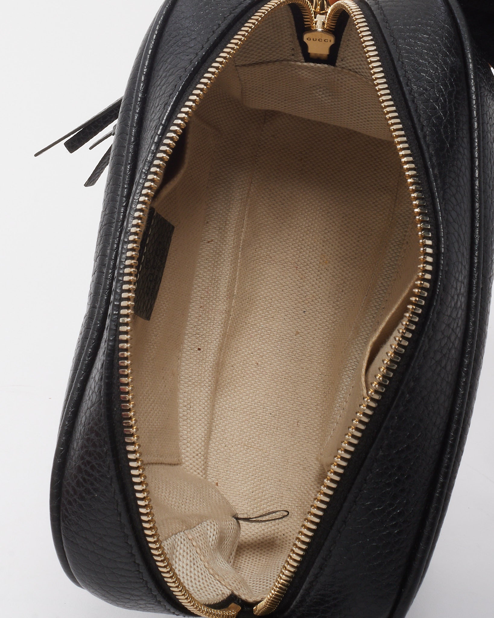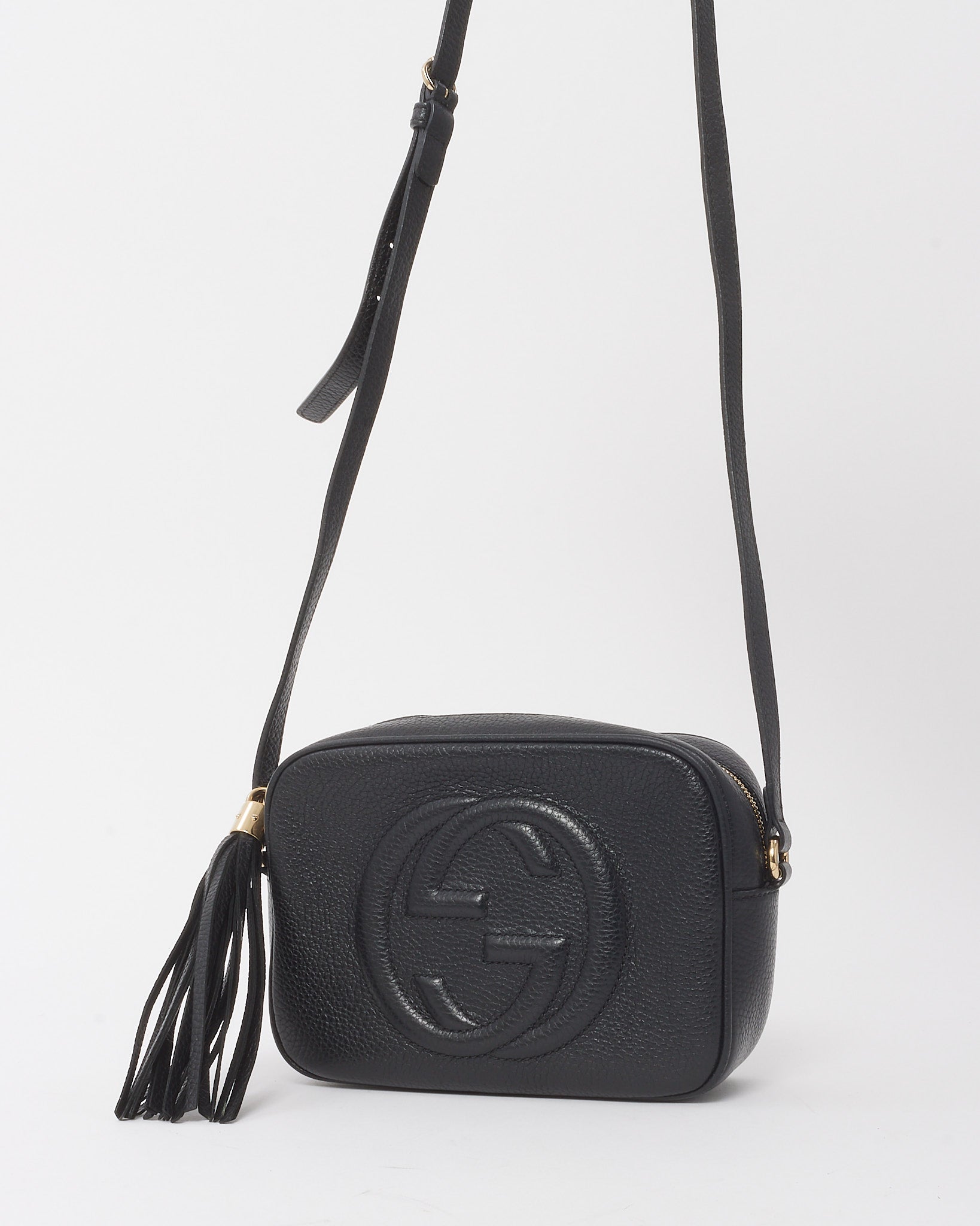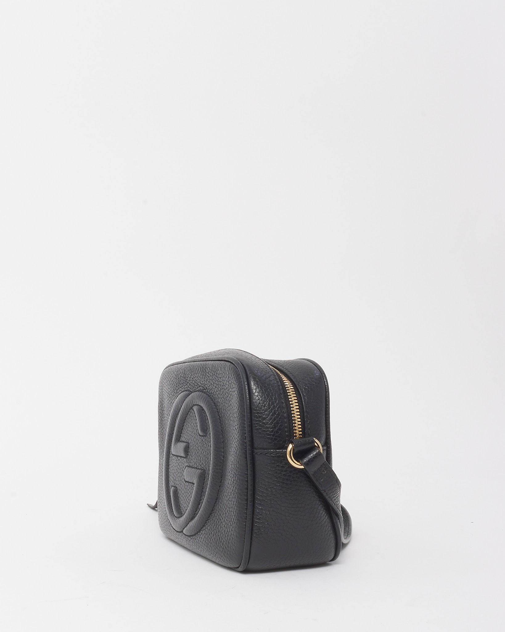 Black Pebbled Calfskin Leather GG Soho Disco Crossbody Bag
