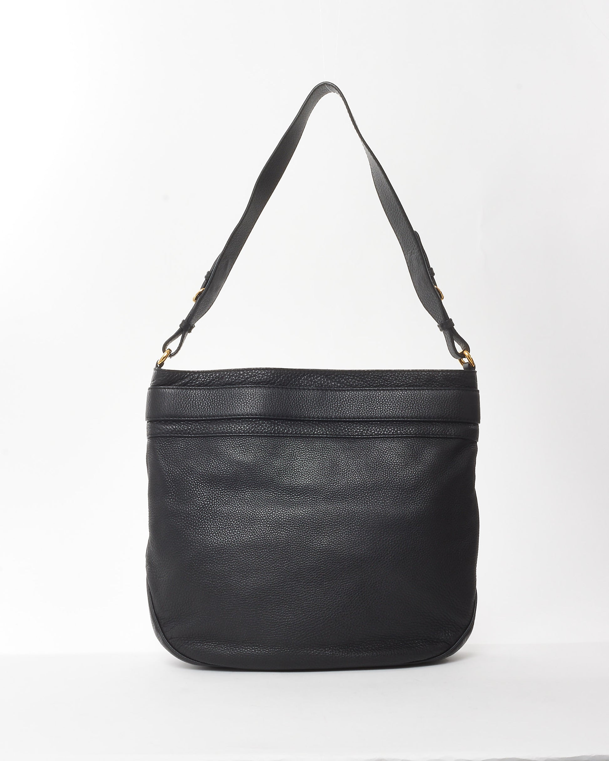 Black Pebbled Calfskin Leather Large GG Ride Shoulder Bag