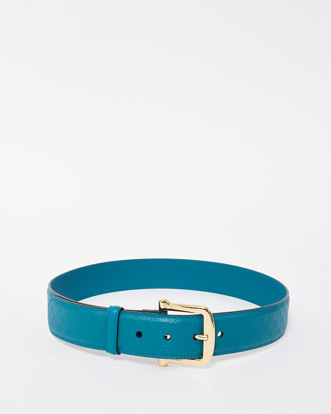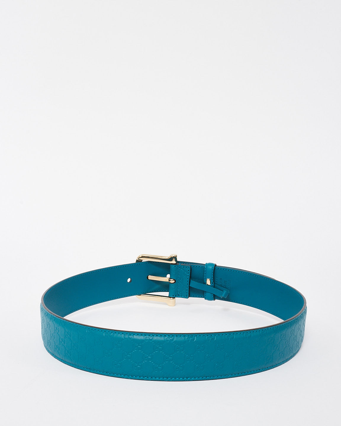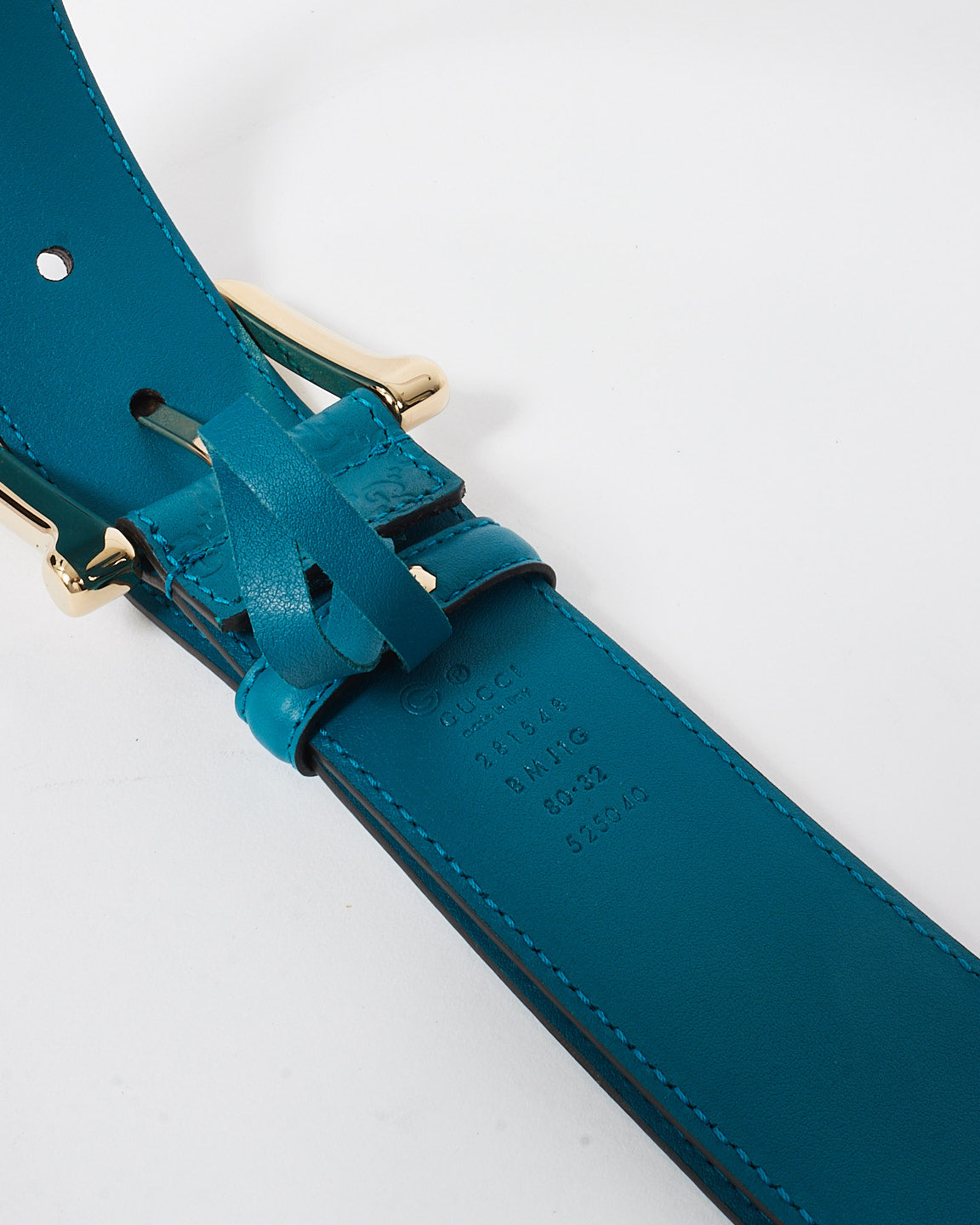 Blue Calfskin Leather Microguccissima Margaux Belt - 80/32