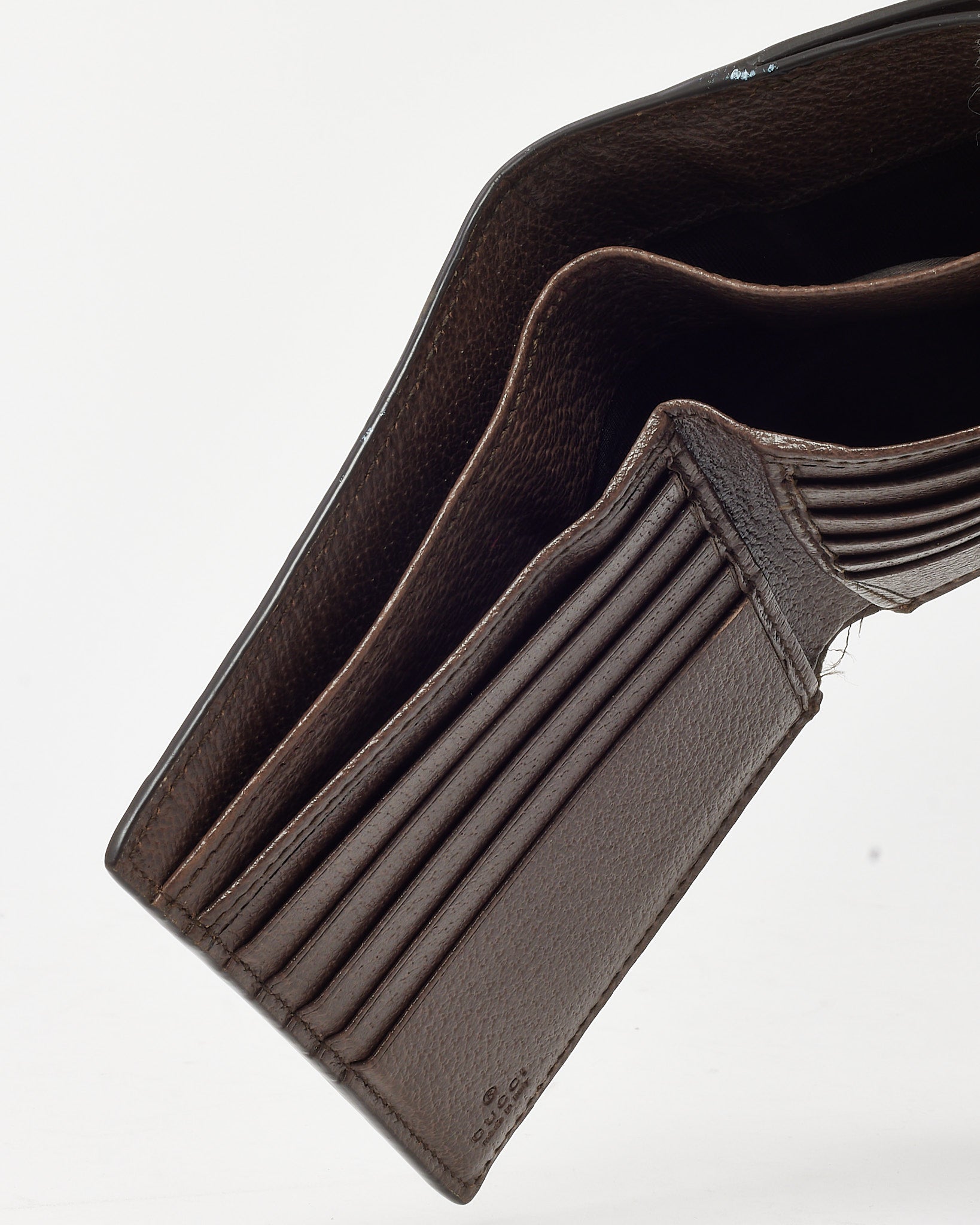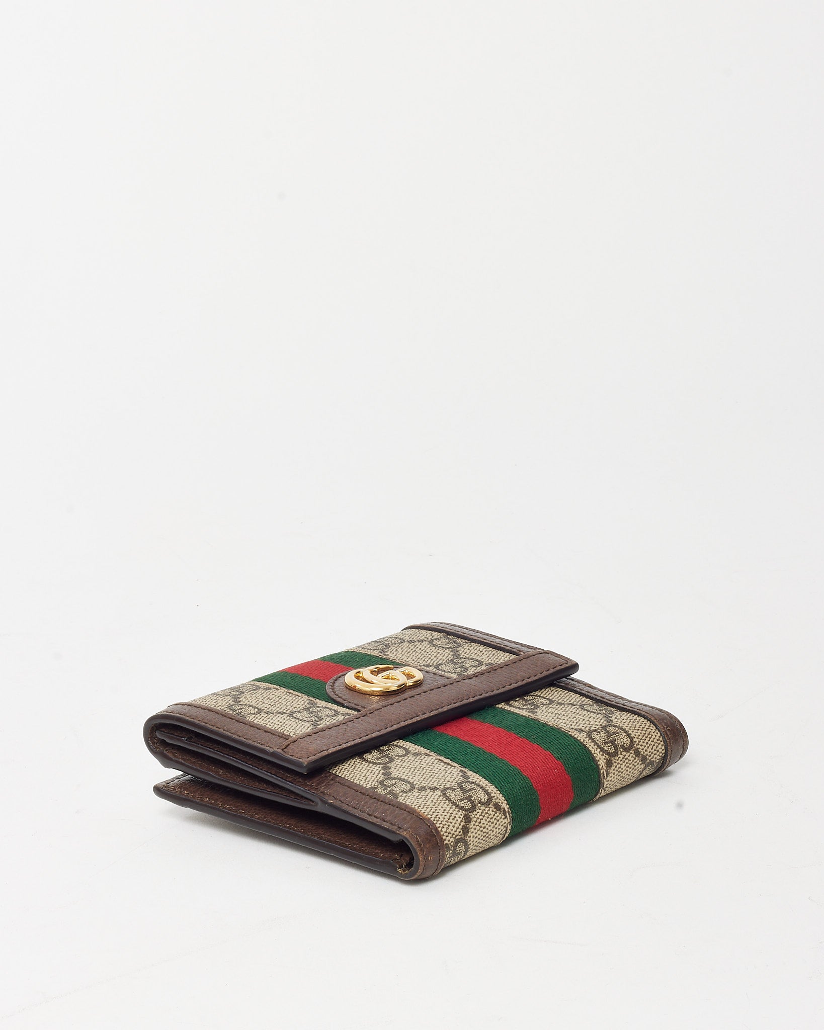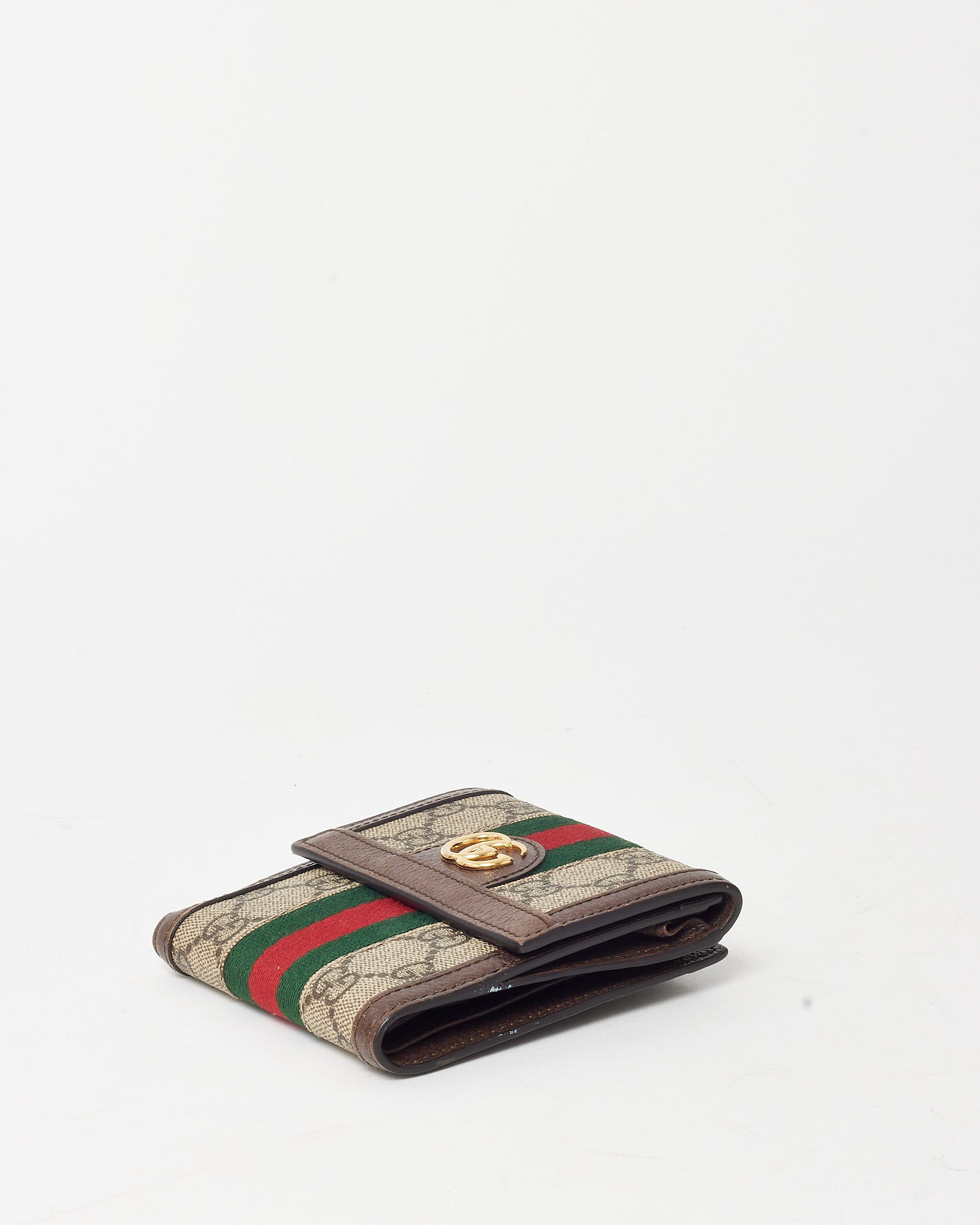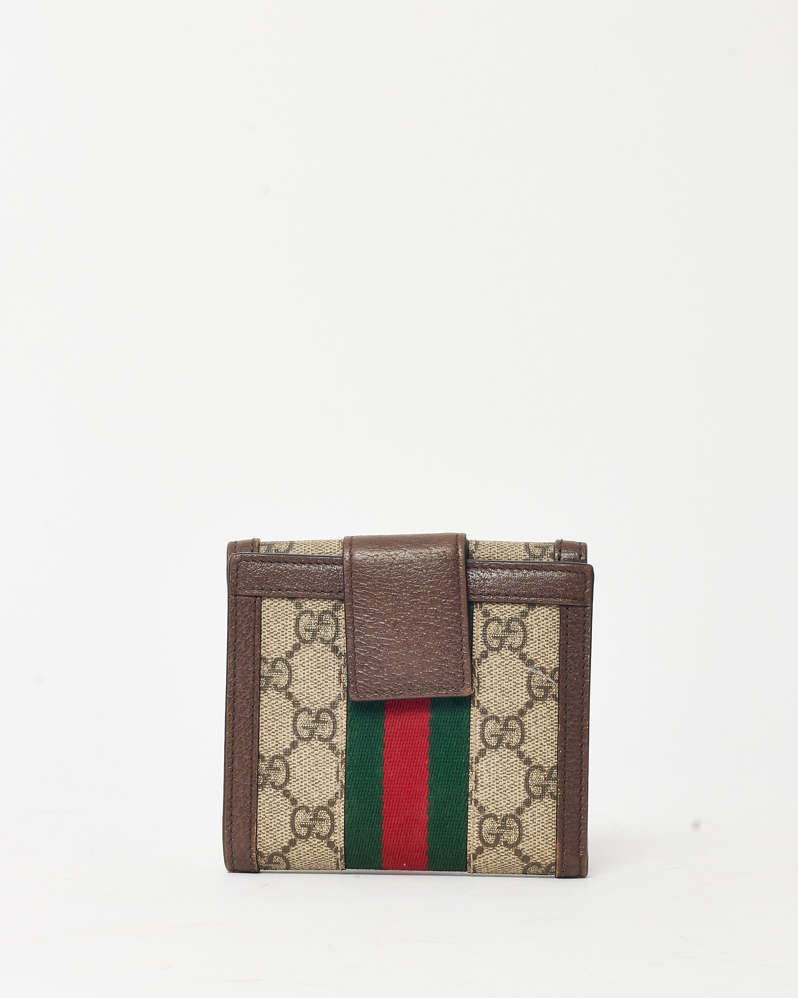 Brown Leather & GG Supreme Canvas Ophidia French Flap Wallet