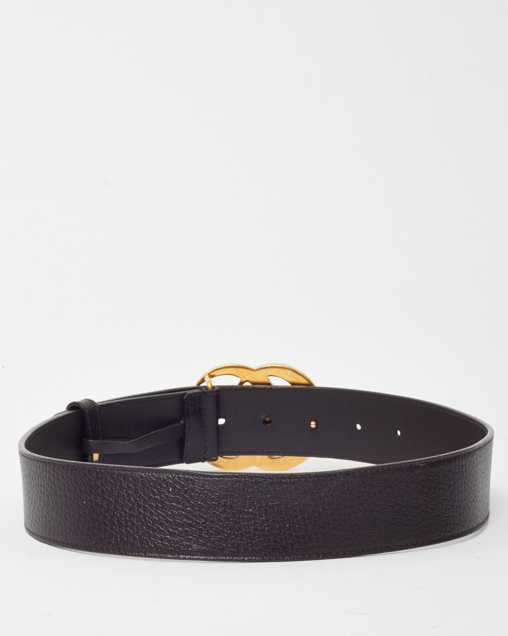 Brown Leather Gold Interlocking GG Marmont Wide Belt - 75/30