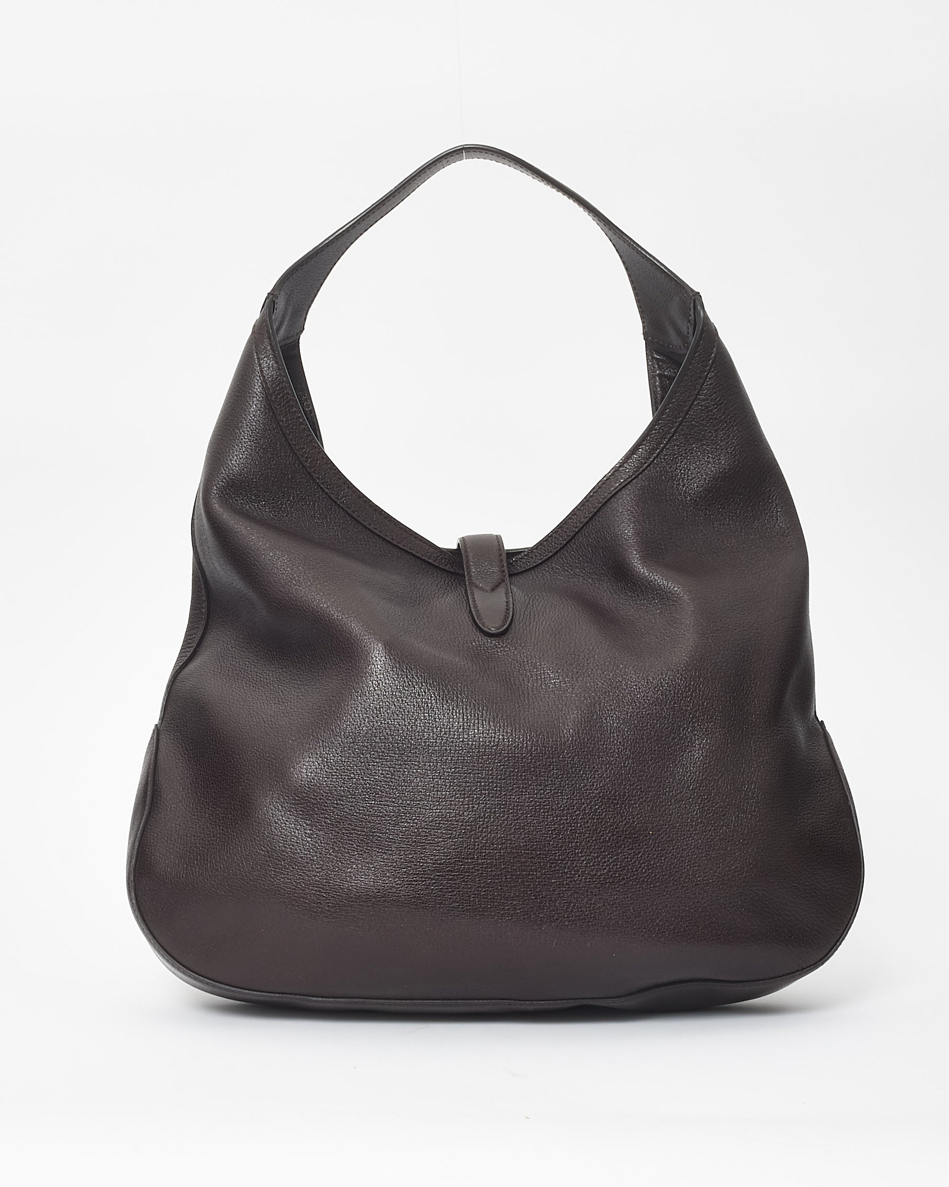 Explore Gucci's exquisite collection of handbags, featuring this certified pre-owned Brown Leather Web Jackie Hobo Shoulder Bag. Embodying timeless elegance and modern sustainability, each piece, including favorites like this, is authenticated by Retyche. Discover sustainable luxury — shop our current treasures or find inspiration for your next coveted find.