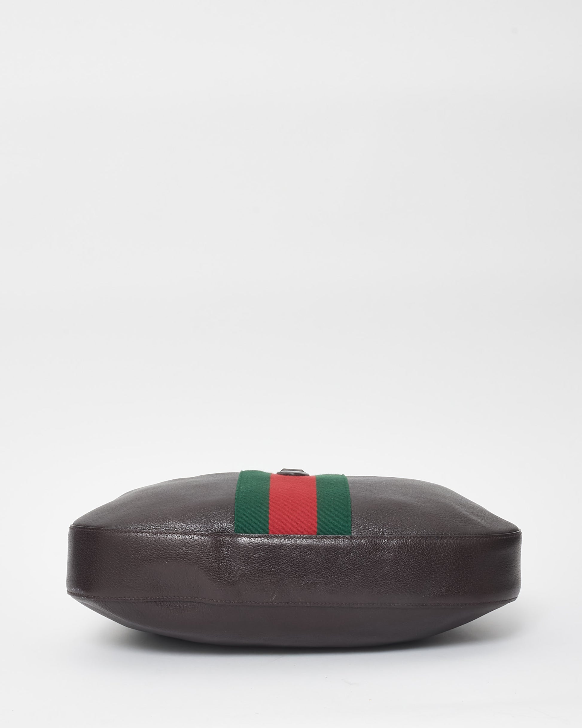 Brown Leather Web Jackie Hobo Shoulder Bag