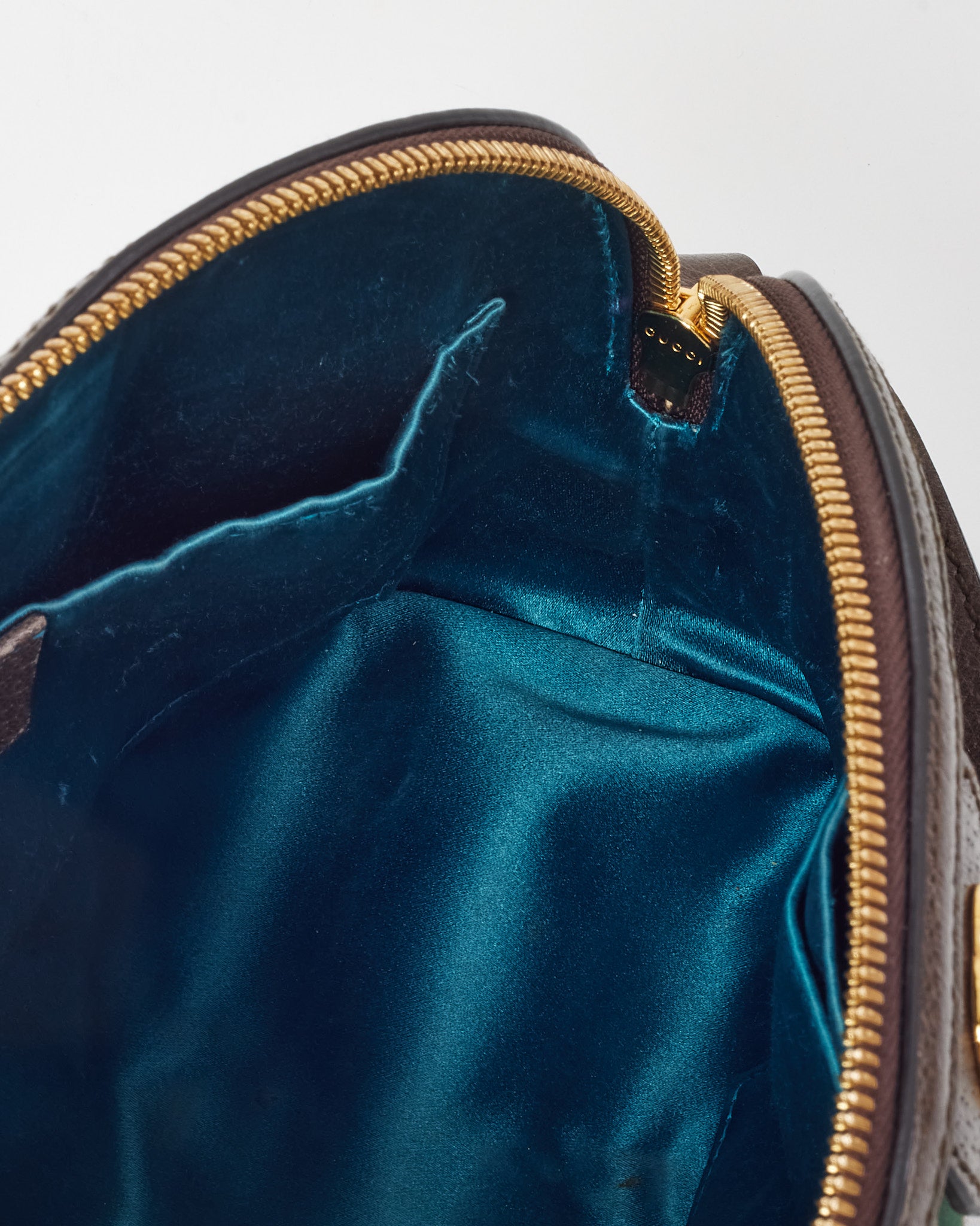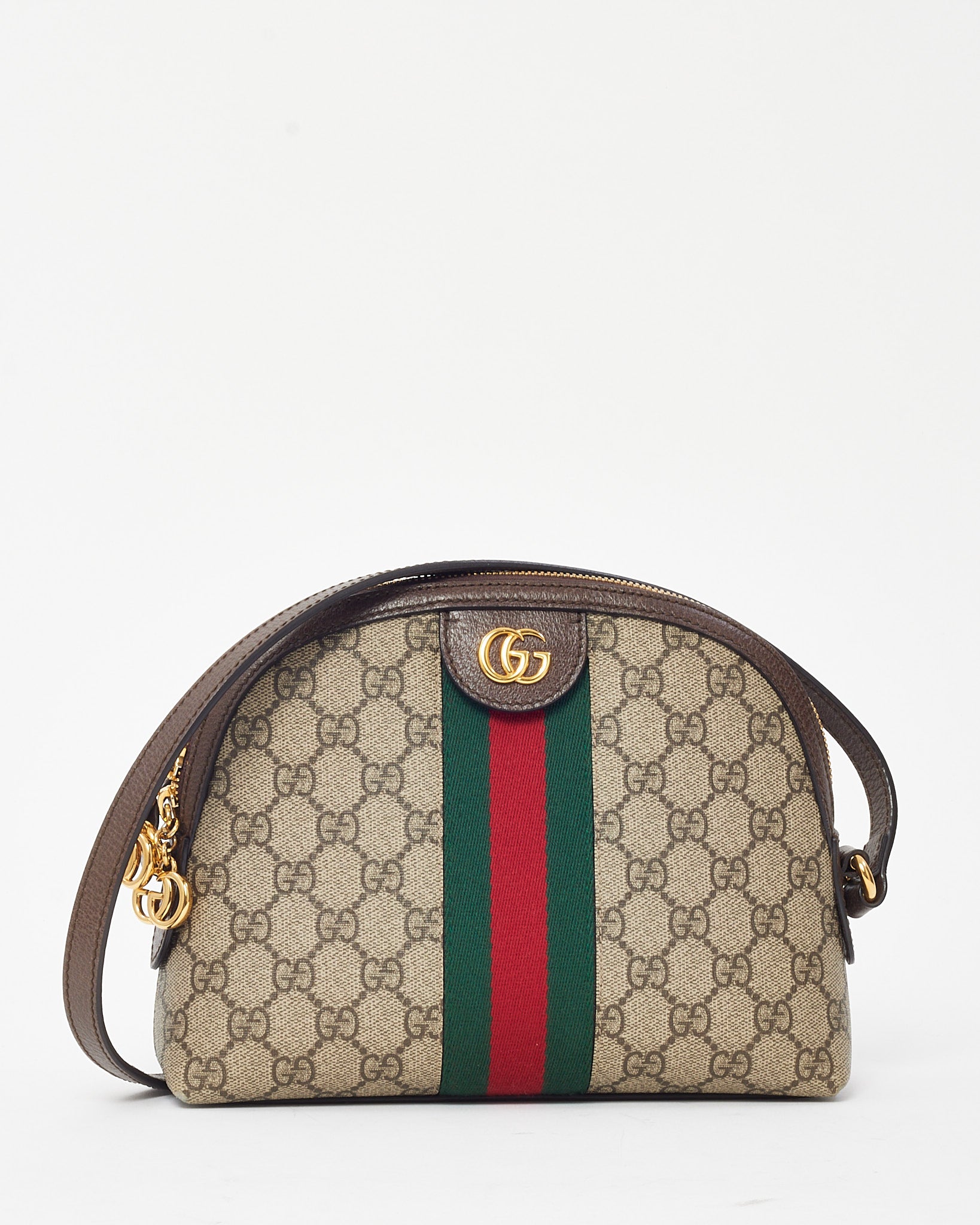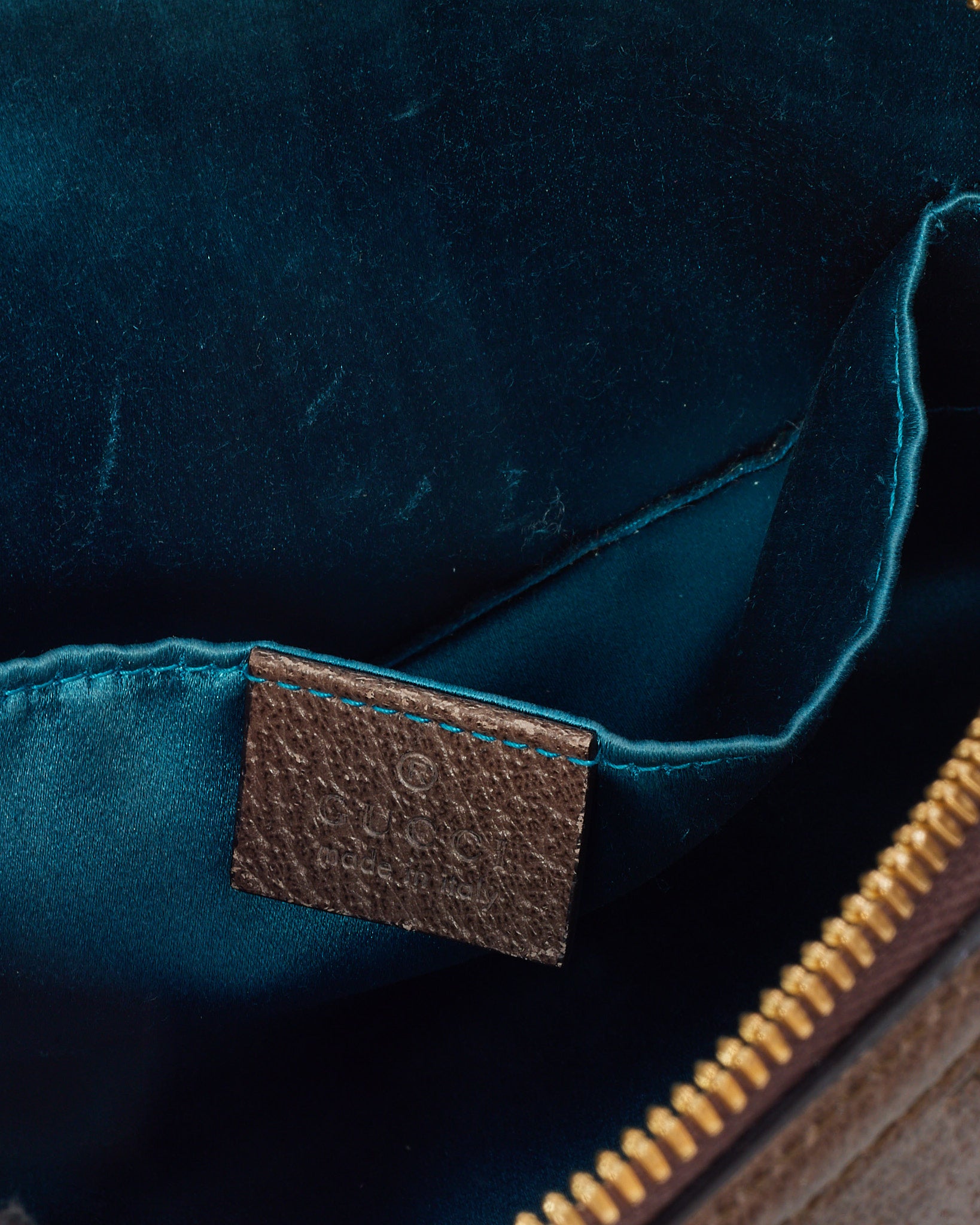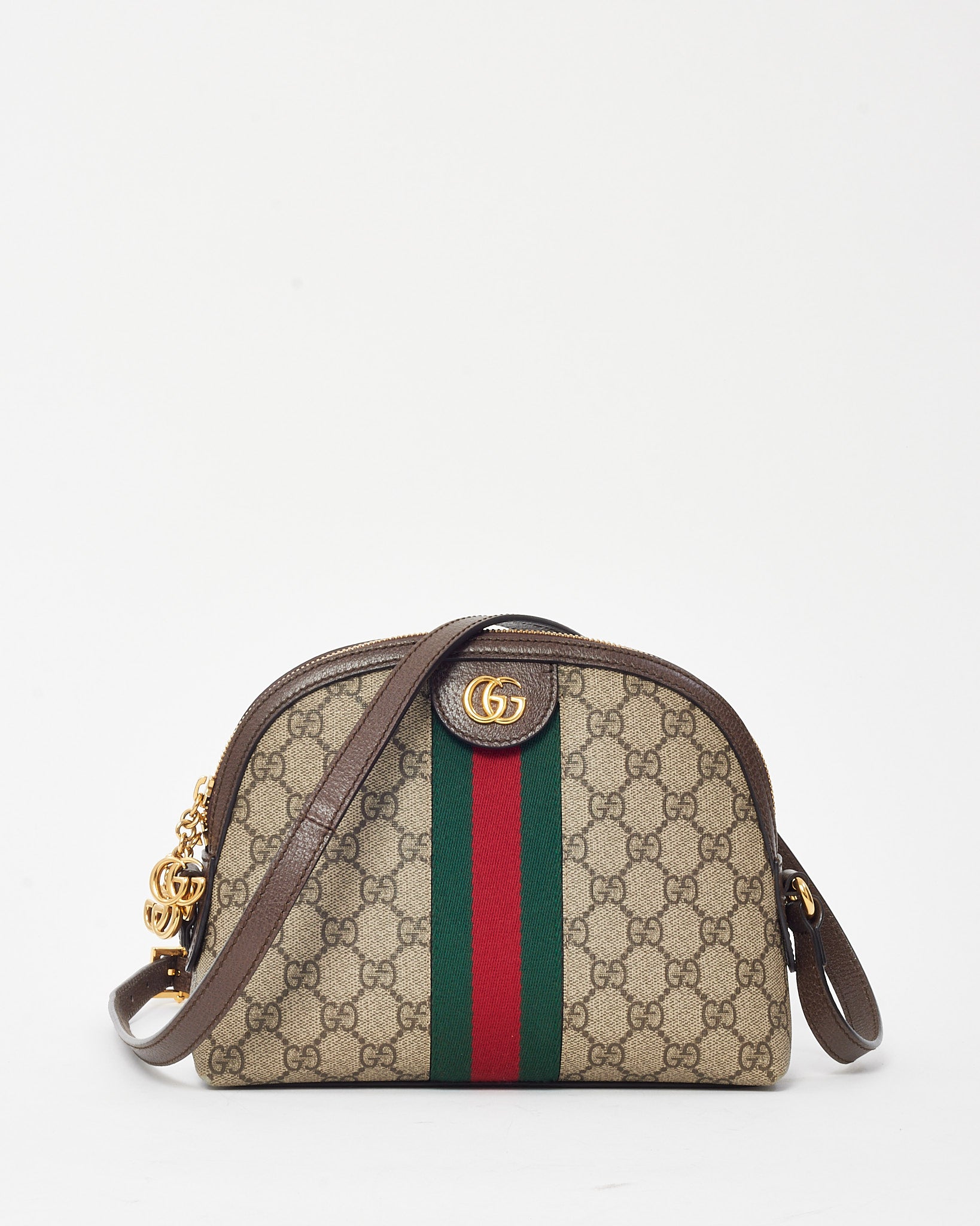 Brown Leather with Beige/Ebony Coated Canvas Ophidia Small Shoulder Bag