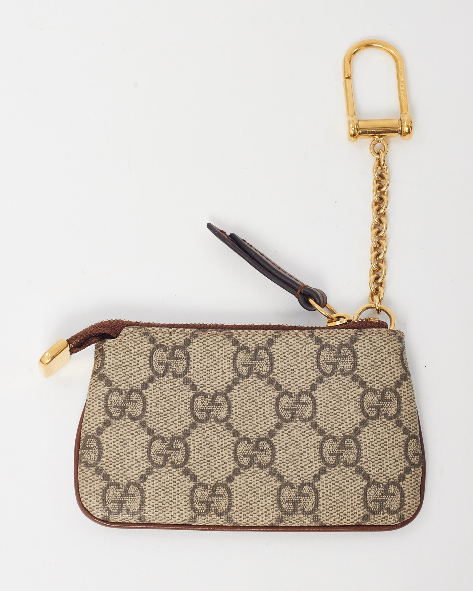 Brown Leather with Beige GG Monogram Supreme Canvas Key Case