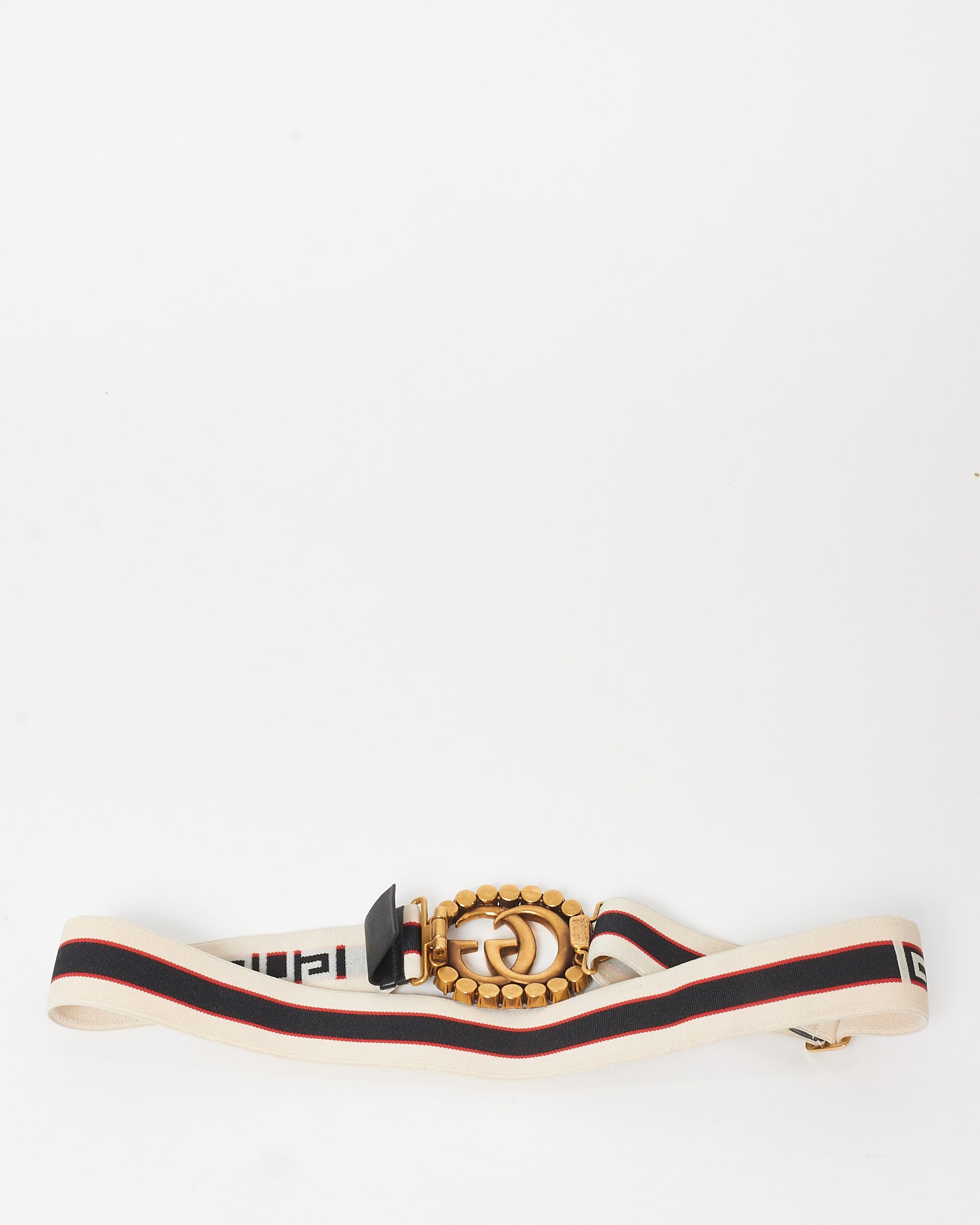 Explore Gucci's exquisite collection of accessories, featuring this certified pre-owned Cream Logo Elastic Red Crystal GG Marmont Belt - 75/30. Embodying timeless elegance and modern sustainability, each piece, including favorites like this, is authenticated by Retyche. Discover sustainable luxury — shop our current treasures or find inspiration for your next coveted find.