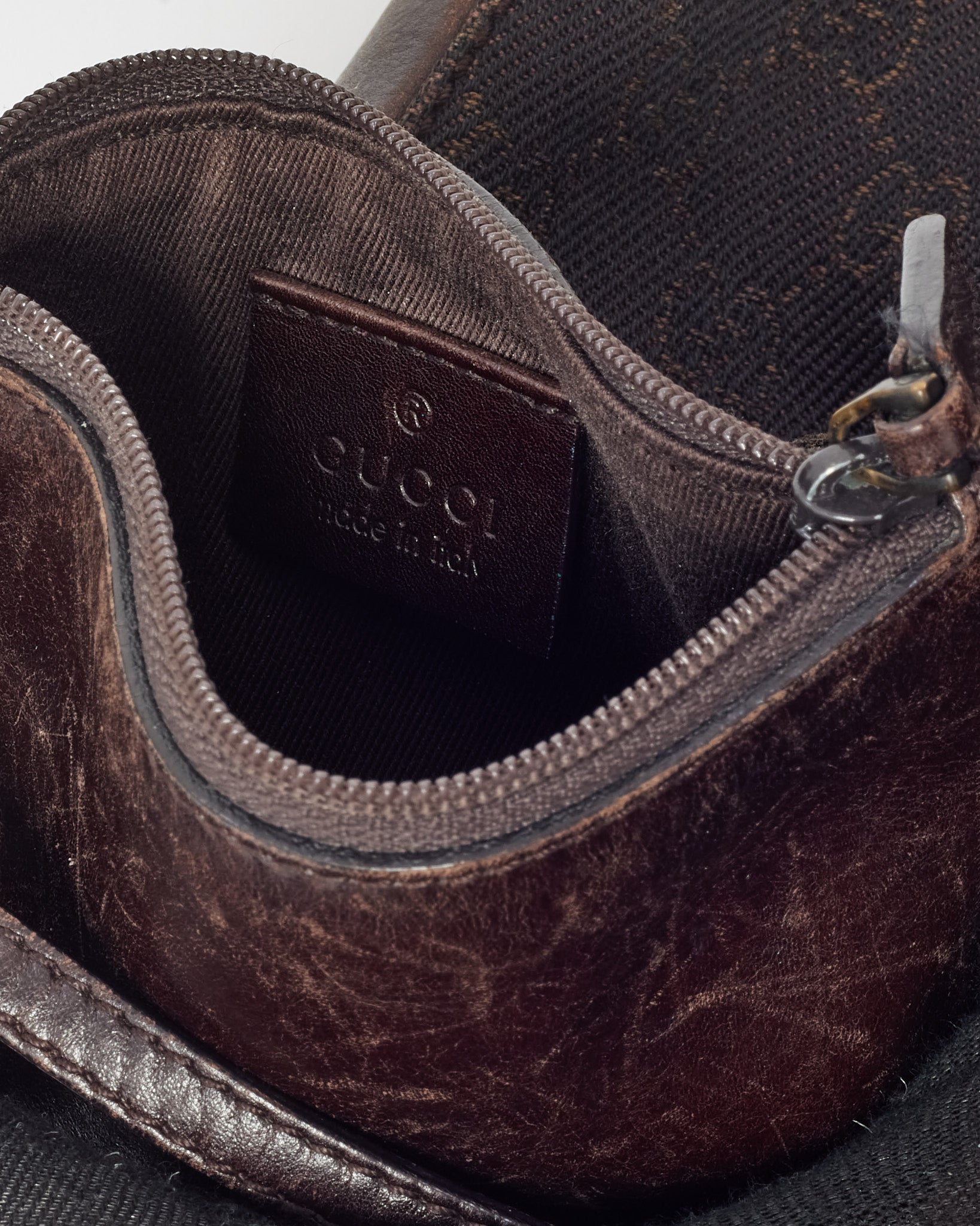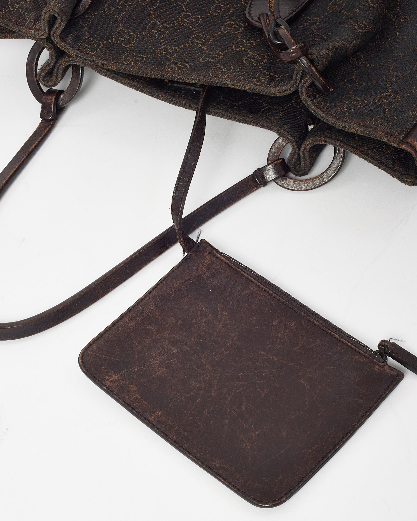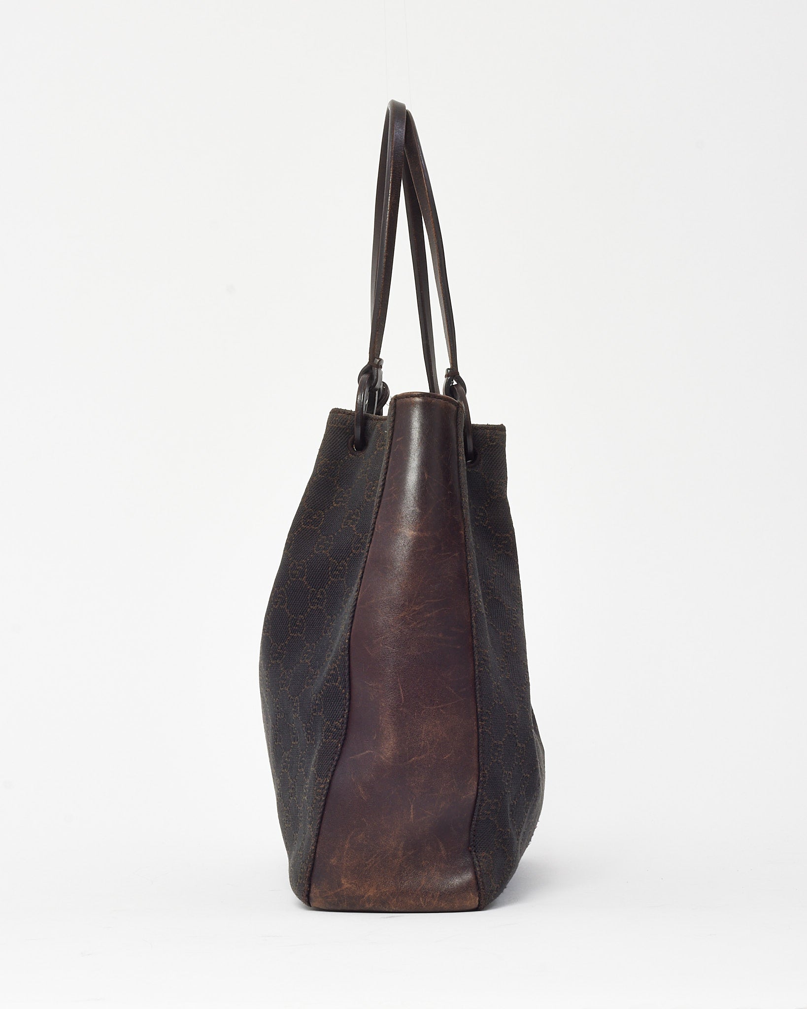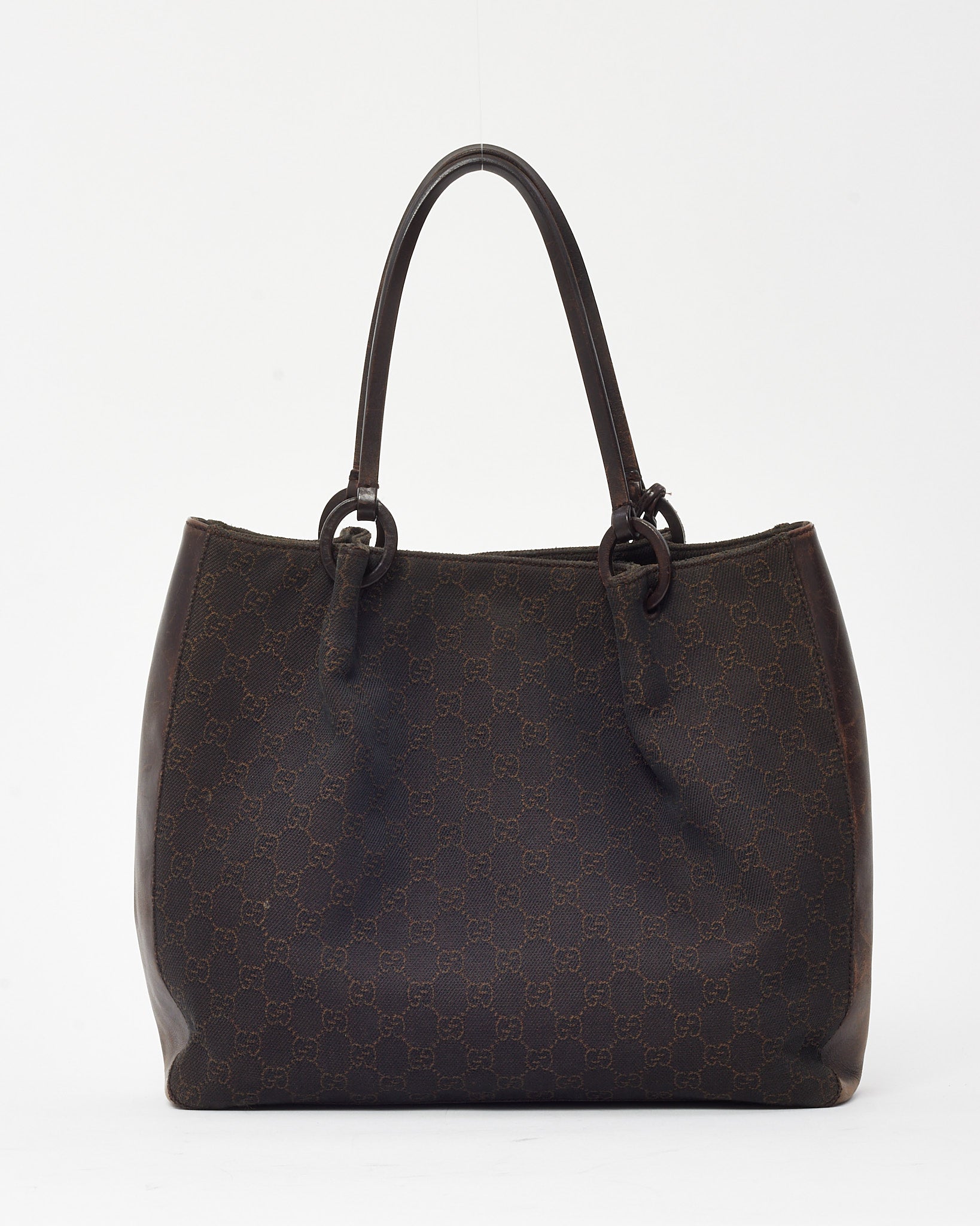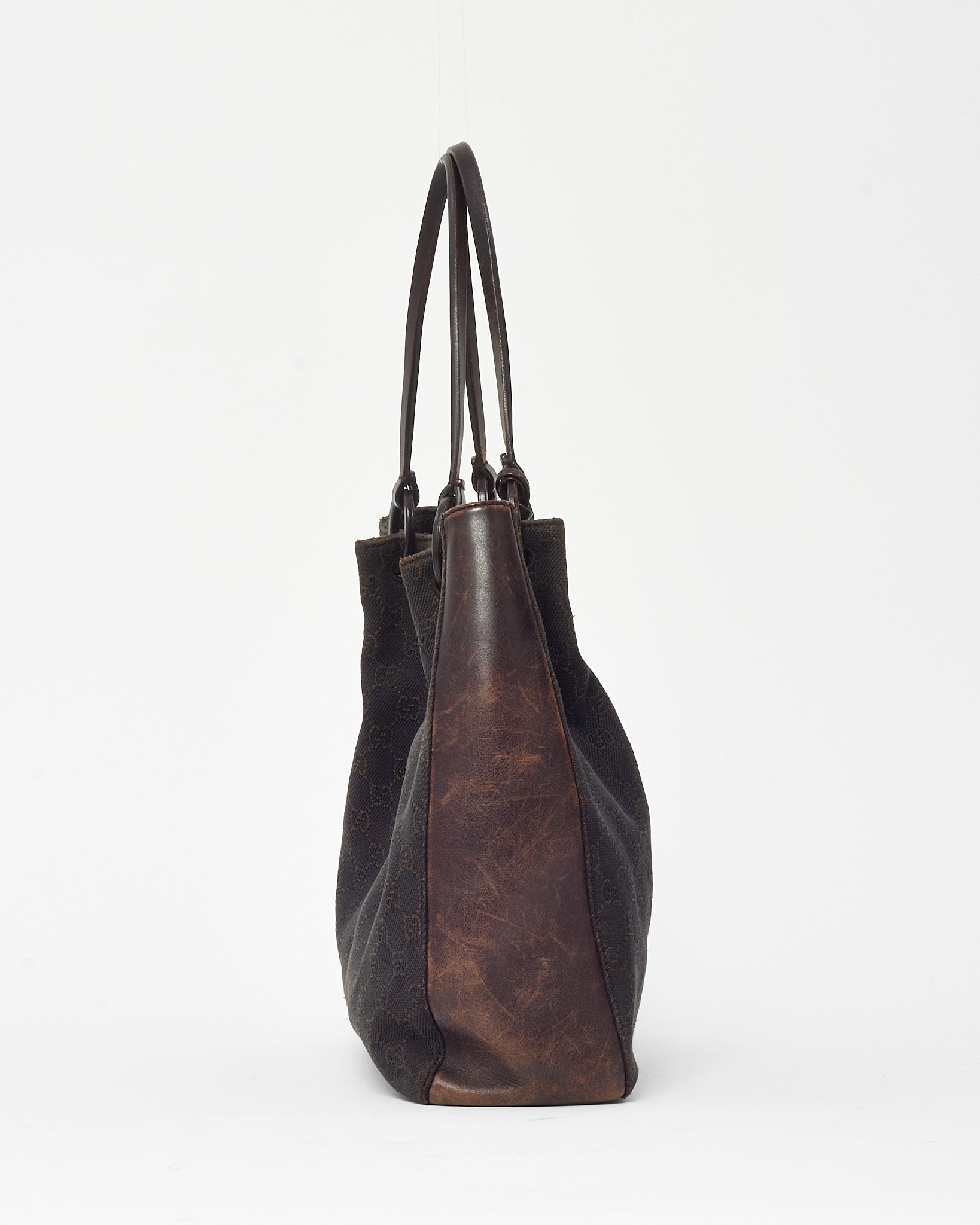 Dark Brown Leather and GG Monogram Canvas Tote Bag