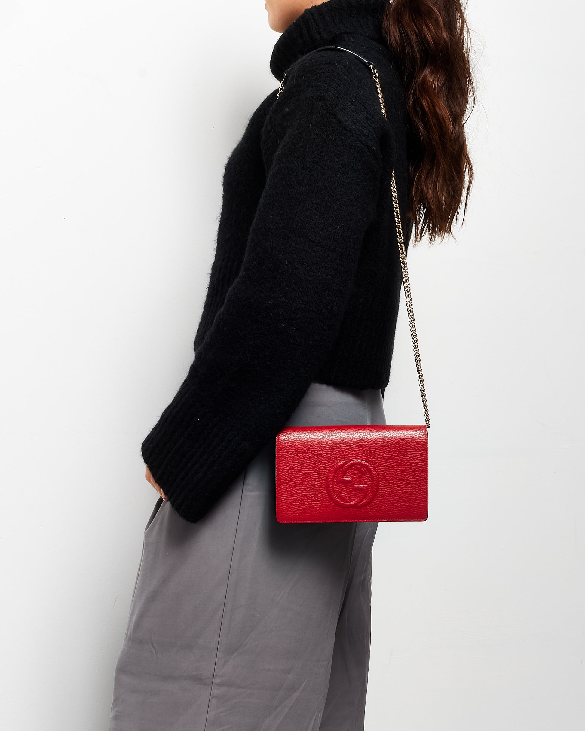 GG Red White & Dark Navy Blue Embossed Soho Logo Wallet On Chain