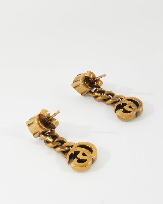 Gold GG Logo Dangle Rhinestone Earrings