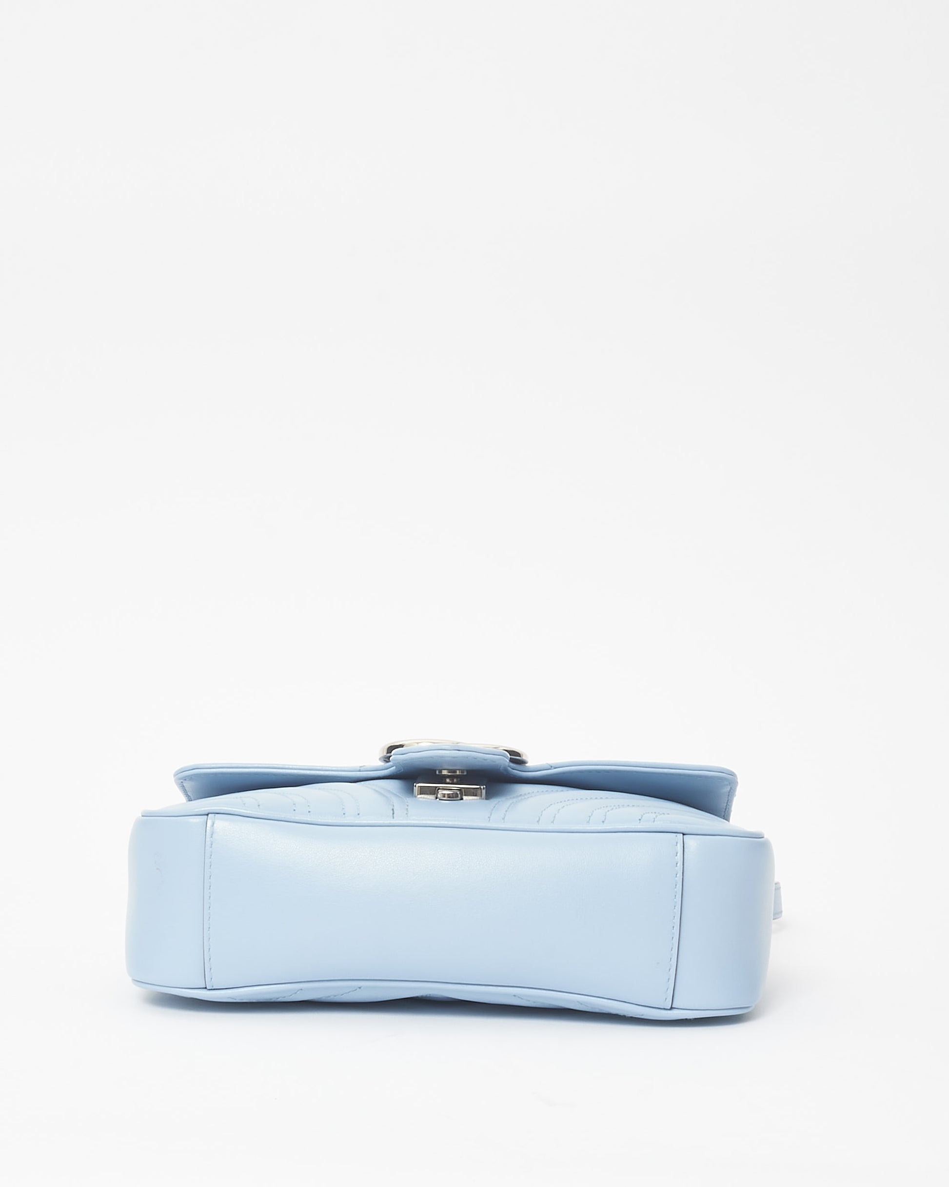 Light Blue Leather Mini Marmont Flap Shoulder Bag