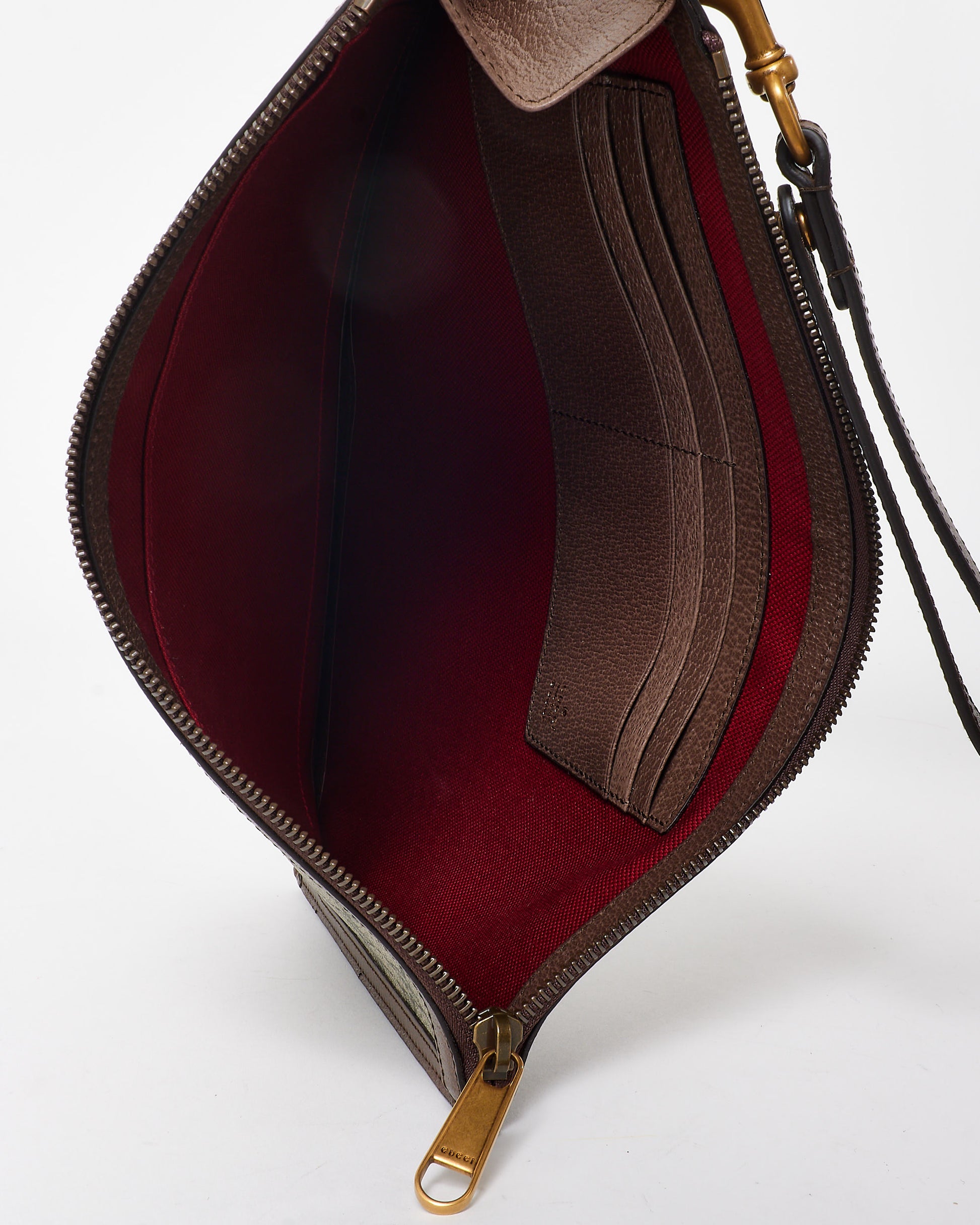 This Is an authentic pre-owned Gucci Monogram Coated Canvas Donald Duck Disney X Gucci Wristlet Clutch is a playful and stylish accessory that combines Gucci’s iconic monogram design with a touch of Disney magic. Part of the exclusive Disney x Gucci collaboration, this clutch features a whimsical Donald Duck graphic overlaying the classic GG Supreme canvas, adding a unique and fun twist. The compact wristlet design makes it versatile and easy to carry, perfect for adding a pop of personality to your look. Durable GG Supreme coated canvas with leather trim, classic Gucci monogram pattern with a colorful Donald Duck print, top zip closure for secure access to essentials, detachable wristlet strap for convenient carrying and a spacious main compartment with a slip pocket for organization. Shop pre-owned authentic Gucci accessories at Retyche.