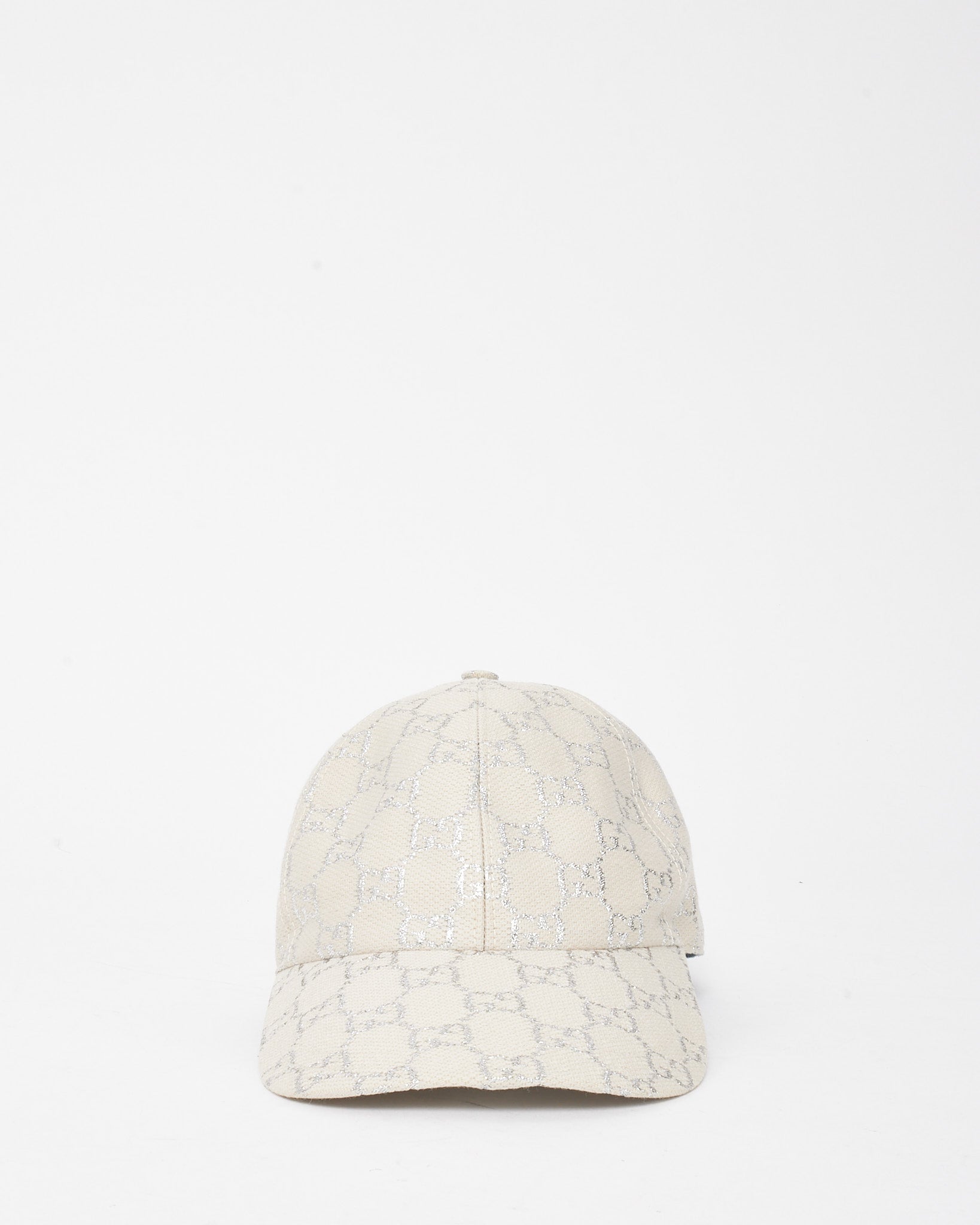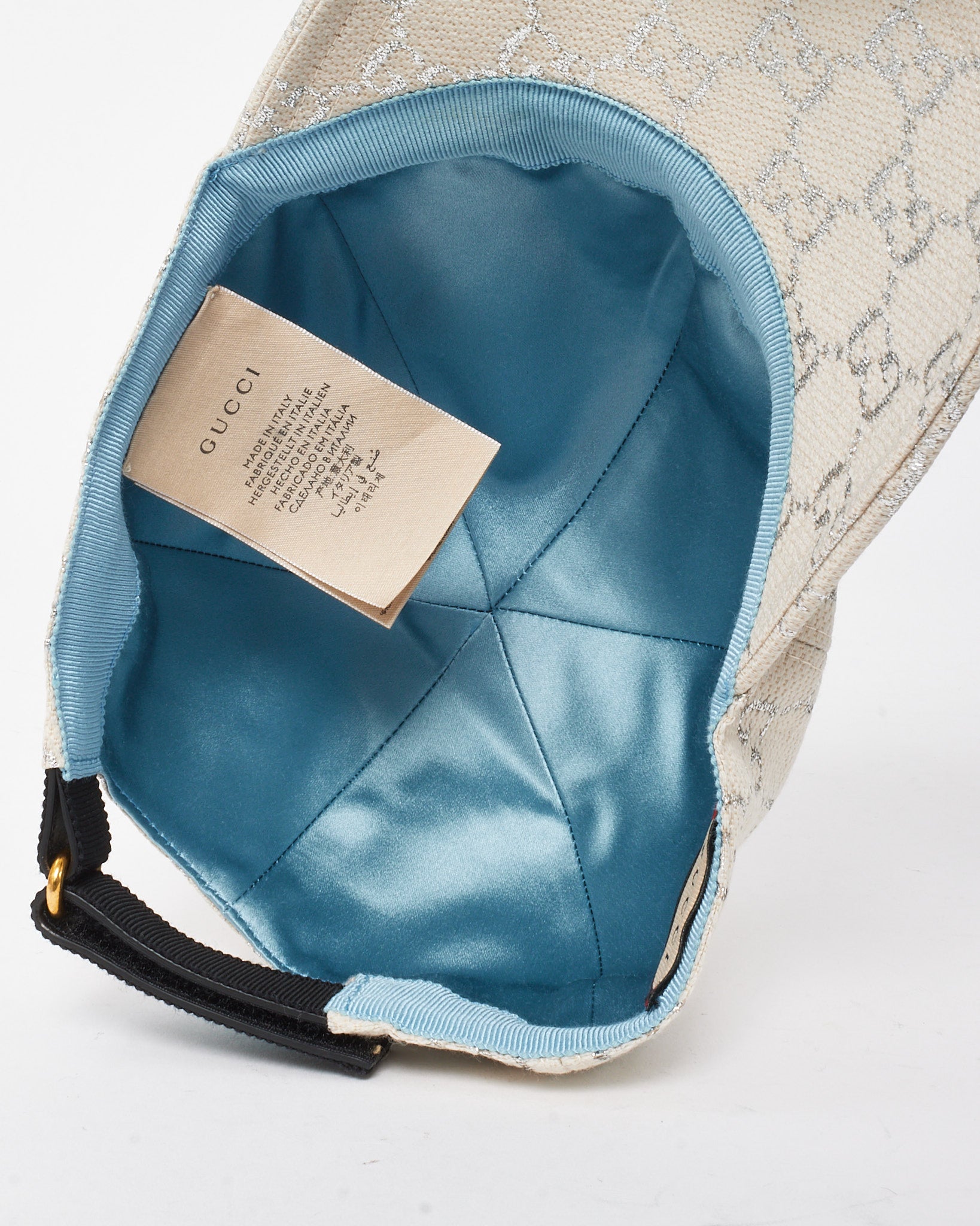 Neutral Beige Canvas Siver Lame GG Monogram Rush Baseball Cap - S