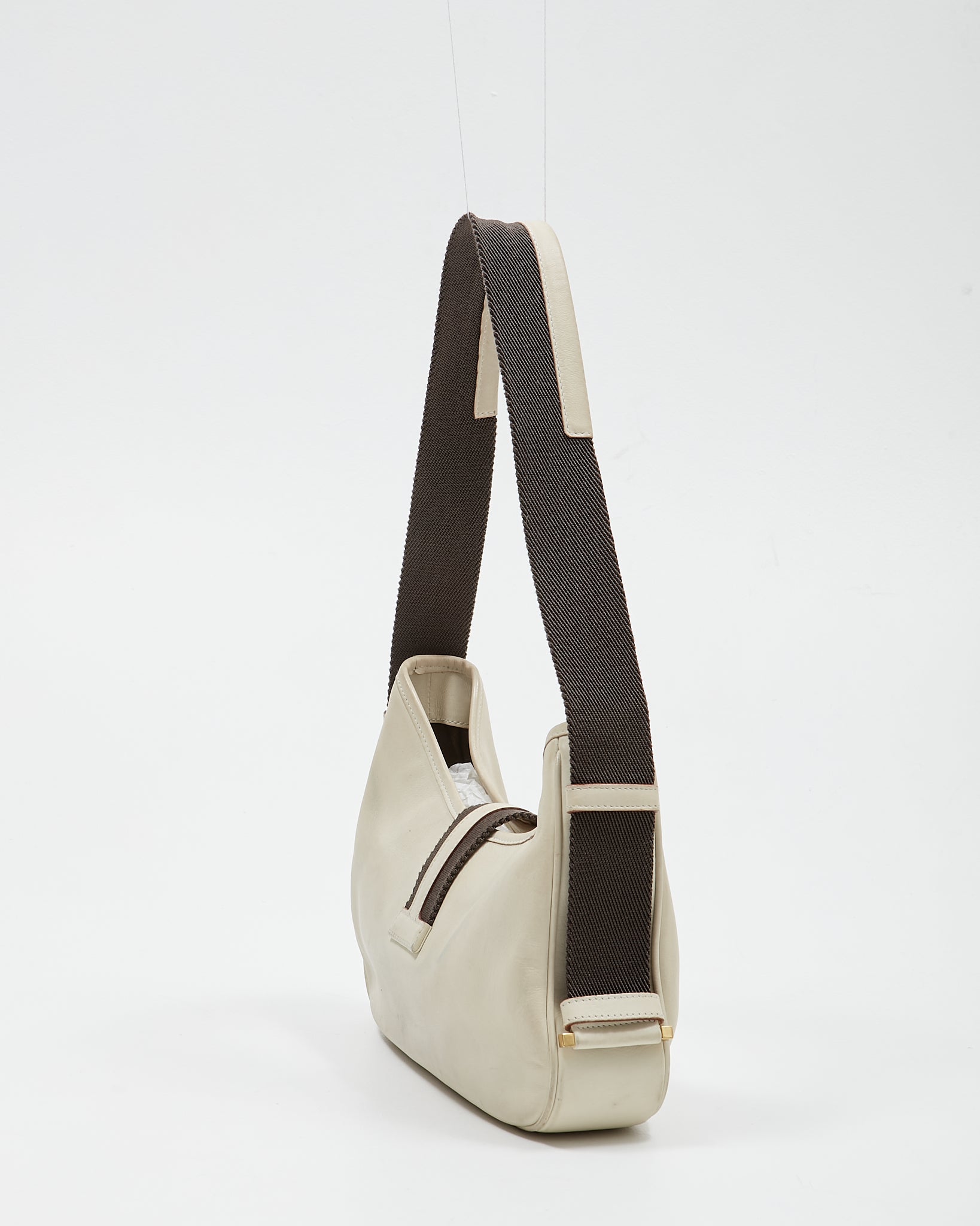 Sac à bandoulière en cuir Web blanc cassé/vert