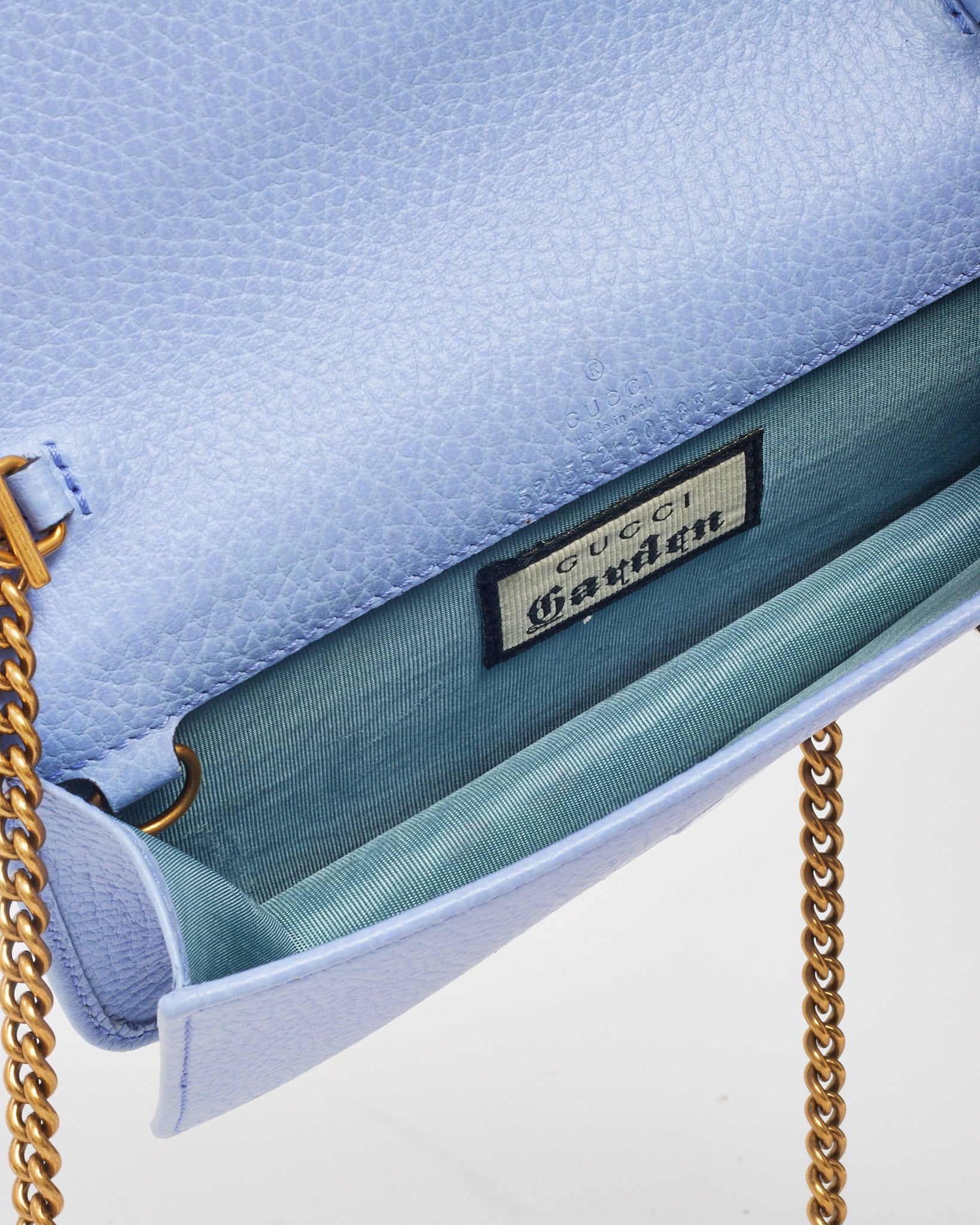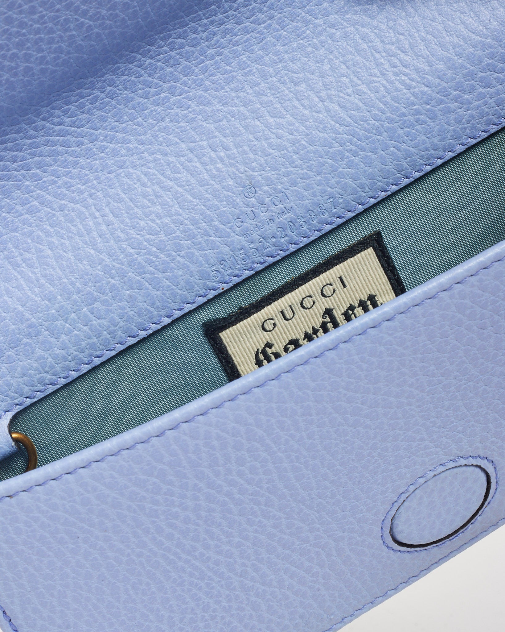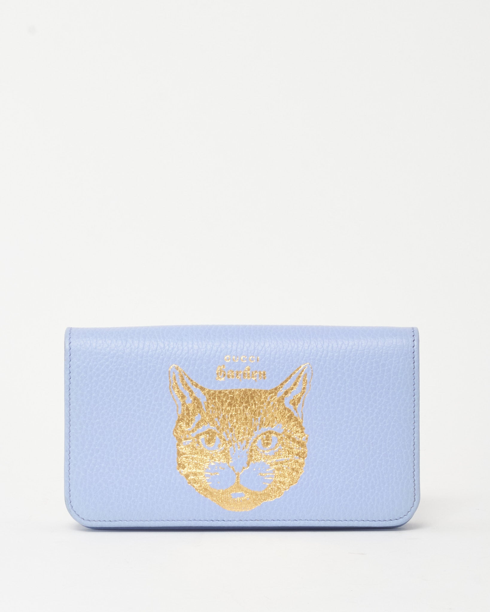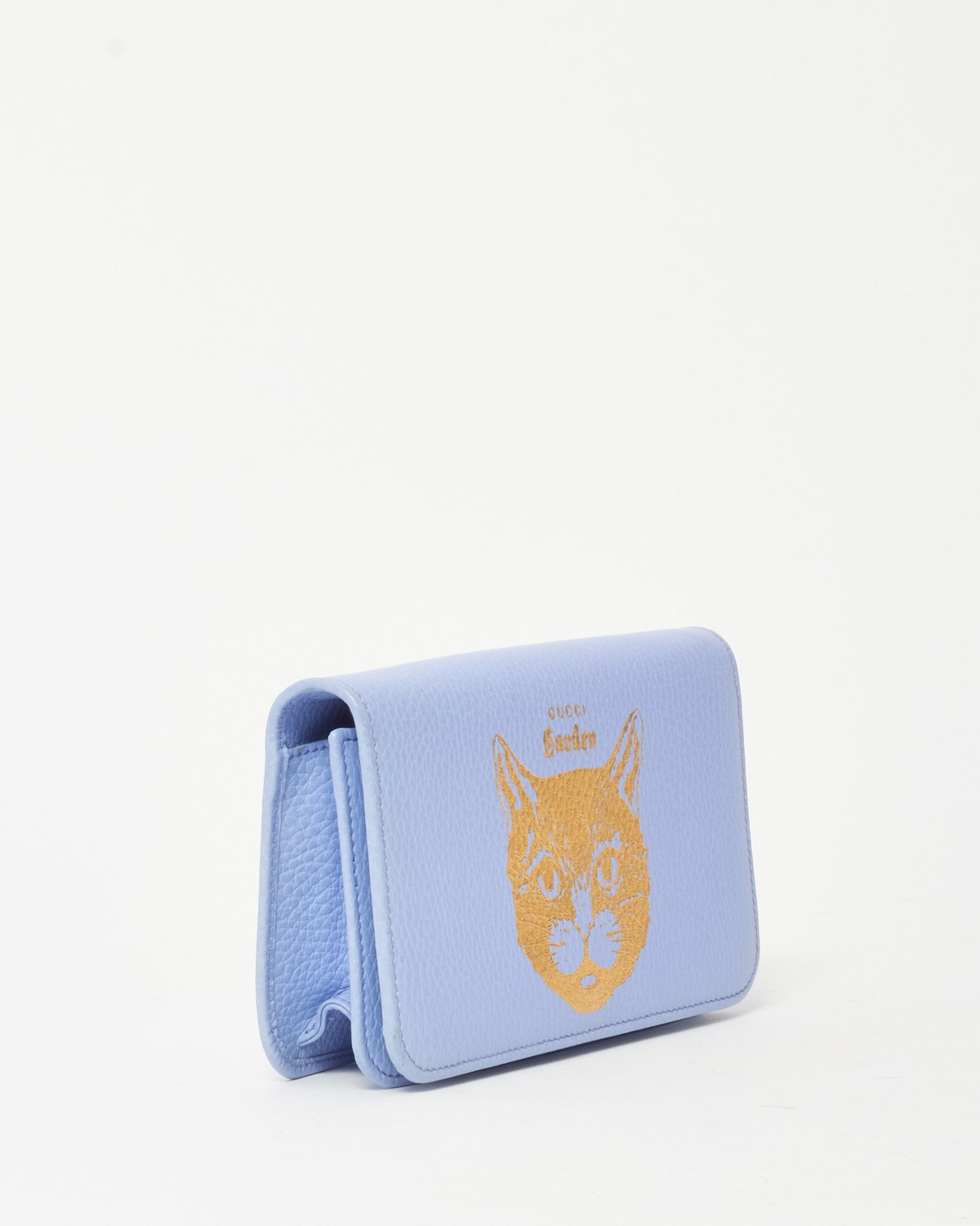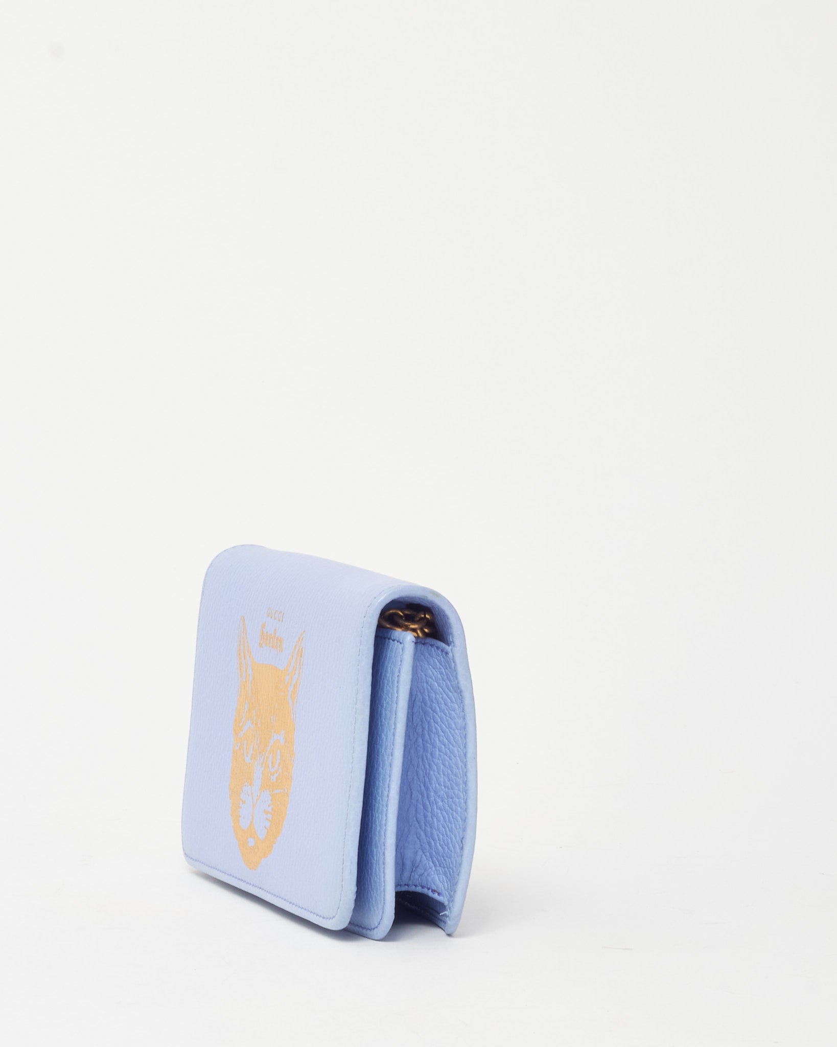 Playful yet polished, this pre‑loved authentic Gucci Purple Leather “Gucci Garden Mystic Cat” Wallet‑On‑Chain (WOC) Crossbody Bag combines vibrant hued leather with whimsical cat motif detailing. Crafted from rich purple pebbled leather and accented by antique gold‑tone hardware, the structured flap silhouette features the iconic “GUCCI garden” script and graphic cat print for a stylish statement. The slim chain‑and‑leather strap allows for shoulder or crossbody wear, while the interior offers multiple card slots and just enough room for essentials—phone, cards, and keys. Compact, expressive, and instantly recognisable, it’s a fun‑luxe addition to elevated casual or evening looks.