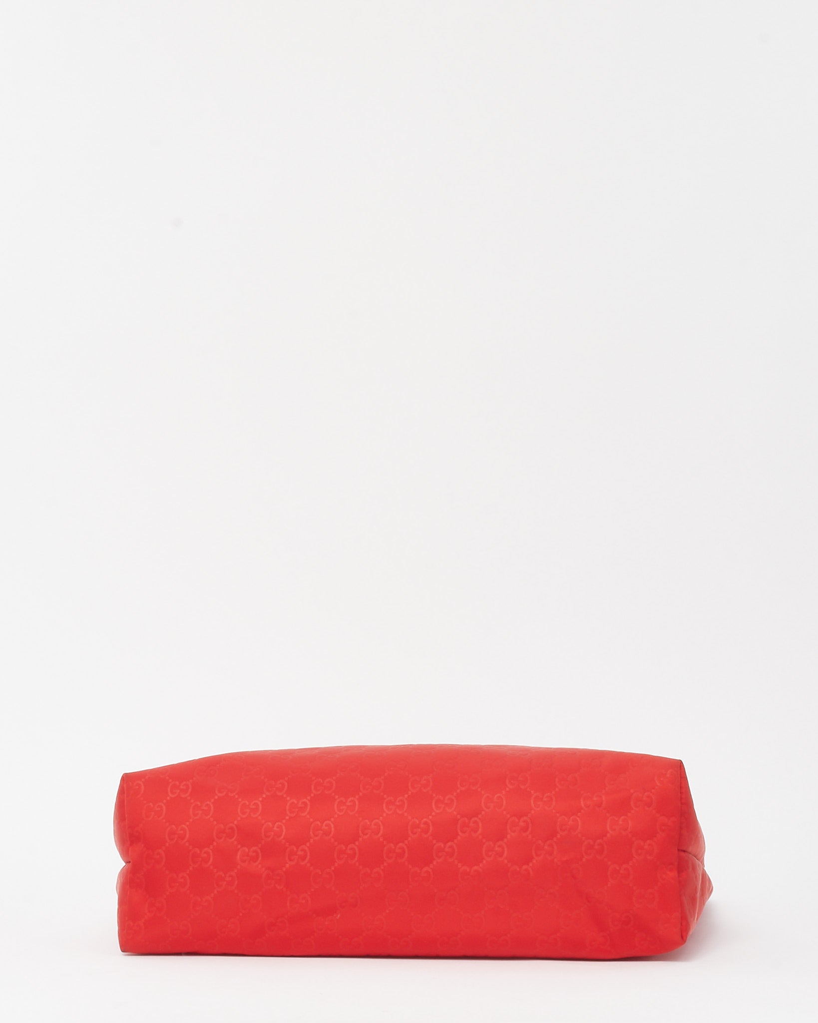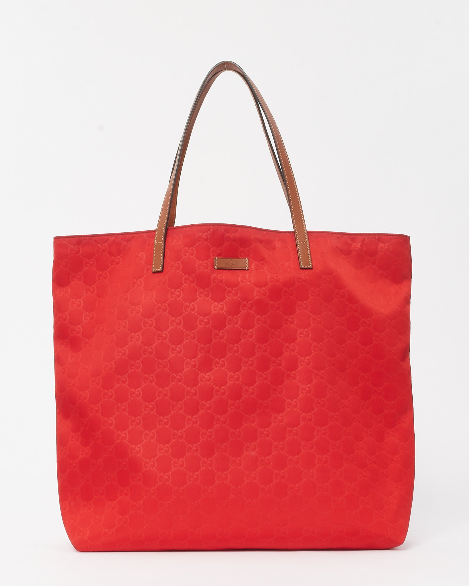 A bold statement in iconic design, this pre-loved authentic Gucci tote is crafted in vibrant red monogram GG nylon with tonal leather trim. The spacious open-top silhouette offers a lightweight, durable carry for everyday use, complete with dual leather shoulder straps. Timeless yet practical, it’s a standout piece for elevating daily essentials or travel staples.