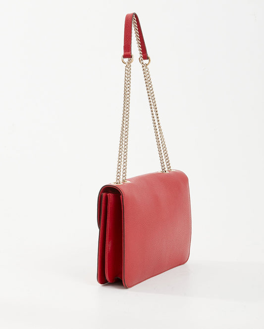 Grand sac à chaîne GG entrelacé en cuir grainé rouge