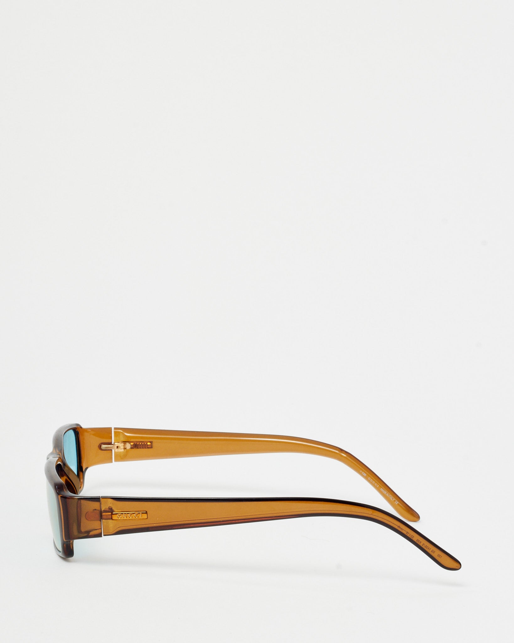 Channel retro Gucci style with these pre-loved authentic Gucci Vintage Brown Acetate Blue Lens GG 1438/S Square Sunglasses, crafted in rich brown acetate for a bold yet timeless finish. The structured square silhouette is paired with striking blue lenses that add a modern contrast while providing everyday sun protection. Finished with signature Gucci detailing at the temples, these designer sunglasses blend vintage inspiration with unmistakable Italian craftsmanship. A standout Gucci eyewear piece that effortlessly elevates both casual and elevated looks with classic luxury appeal.