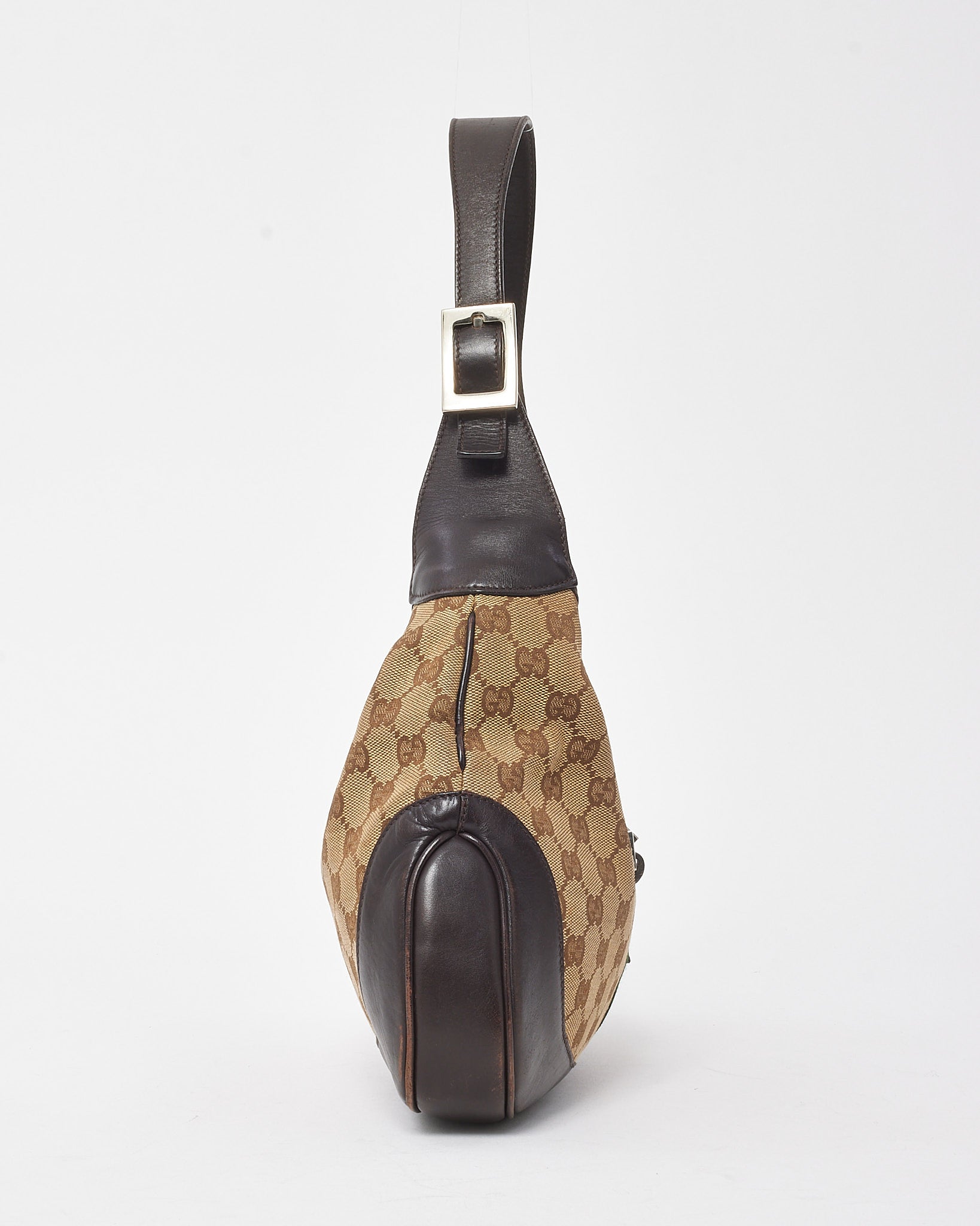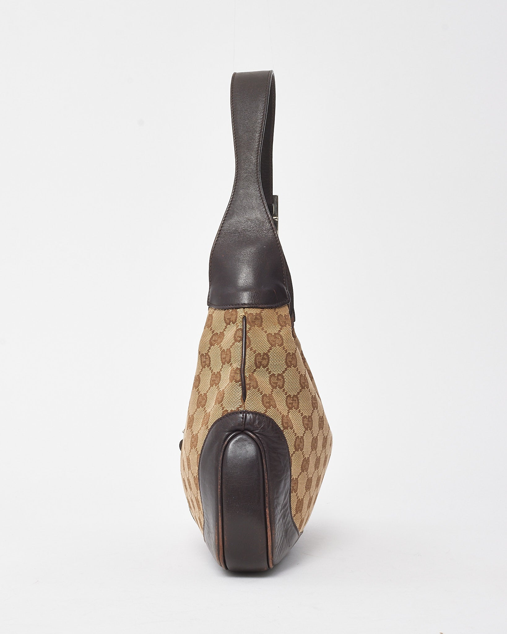 Vintage Brown Leather and Beige GG Monogram Canvas Web Jackie Shoulder Bag