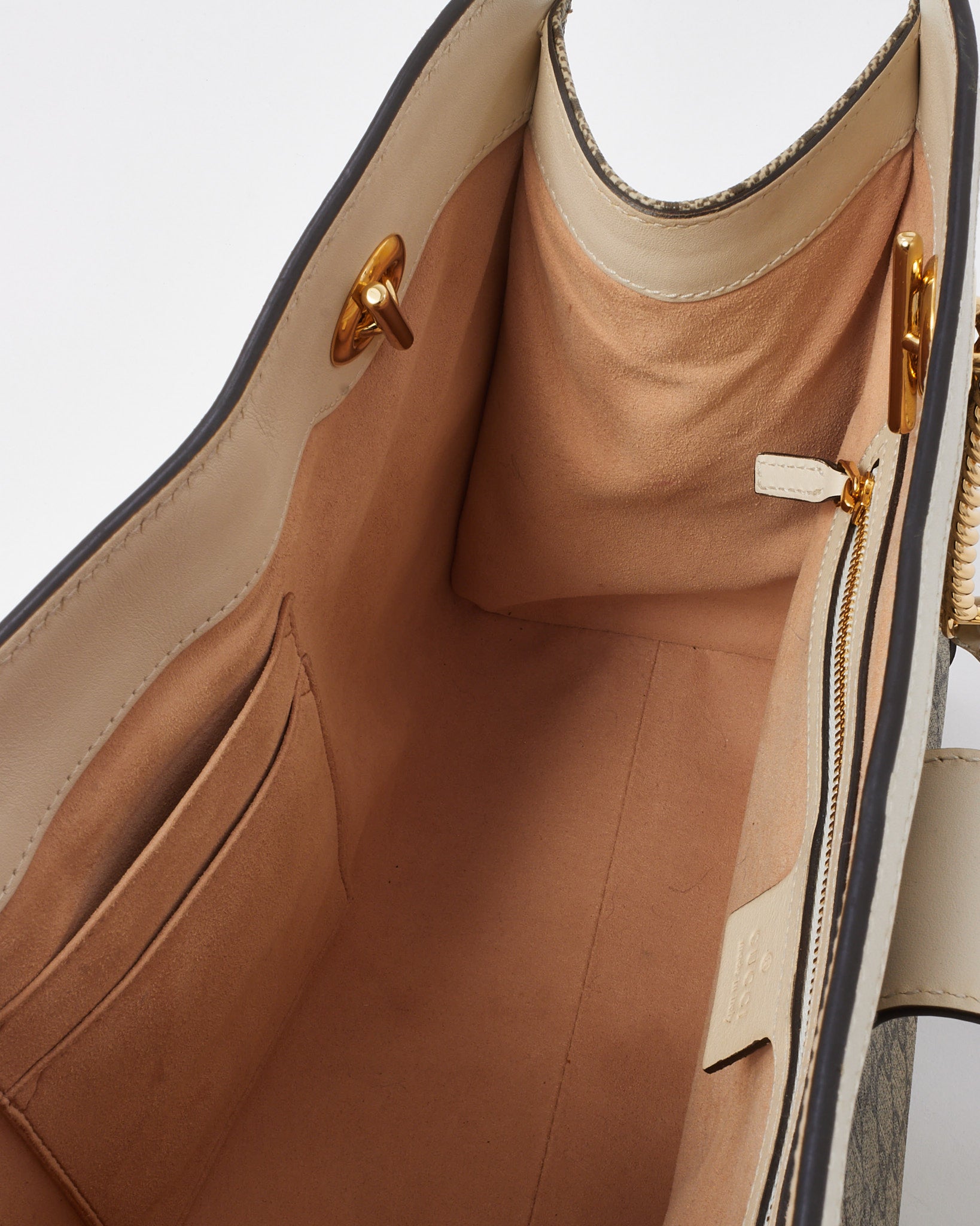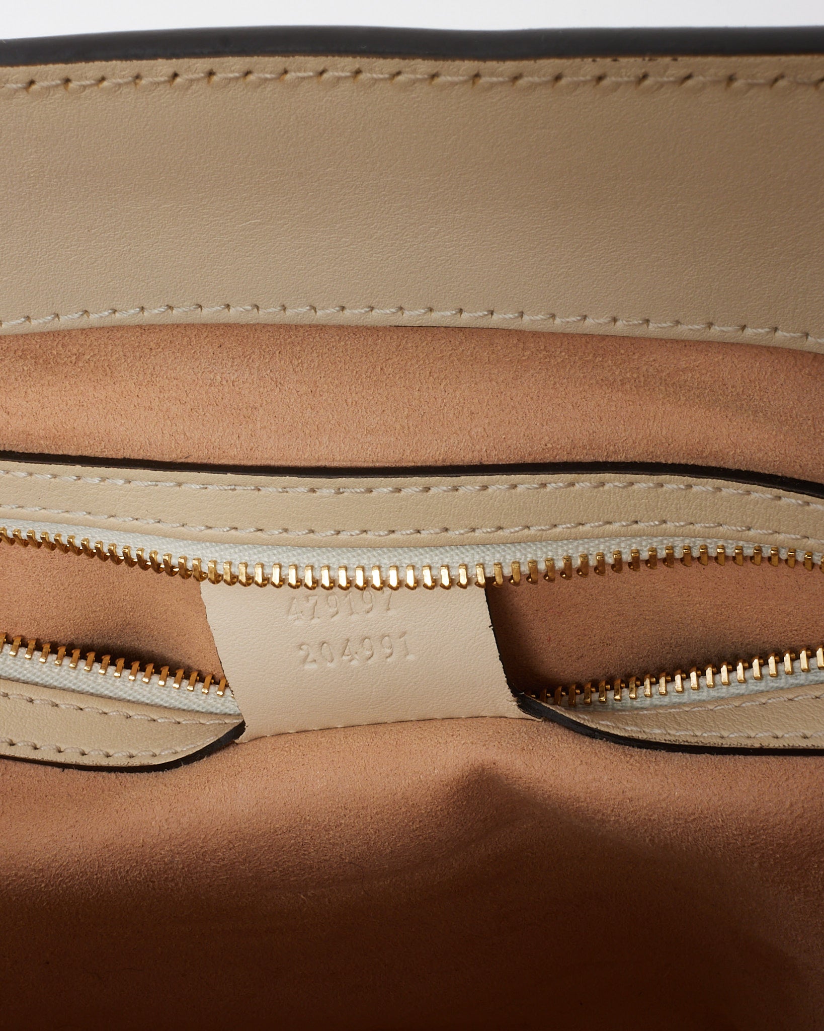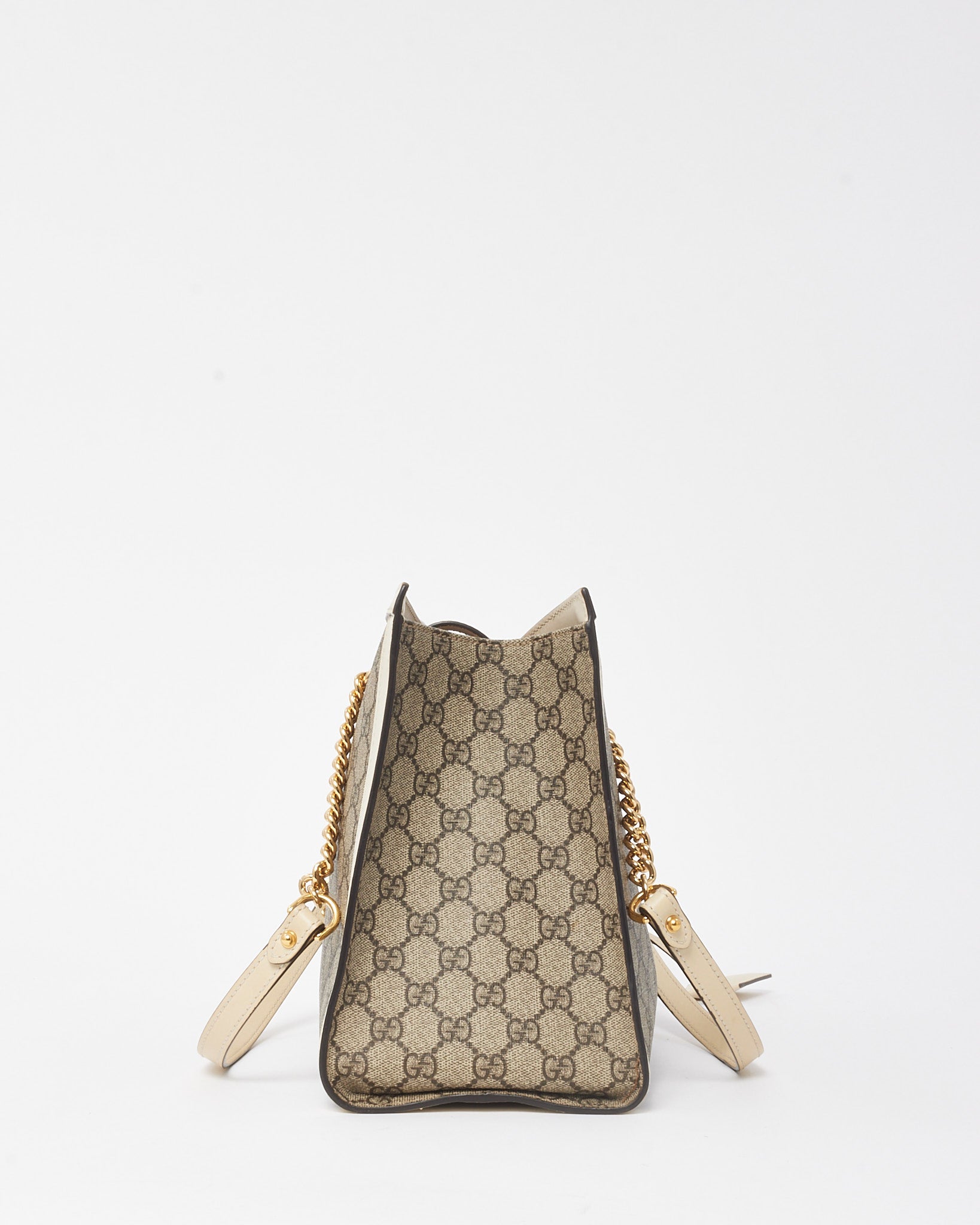White Leather Beige/Ebony GG Supreme Coated Canvas Large Padlock Tote Bag