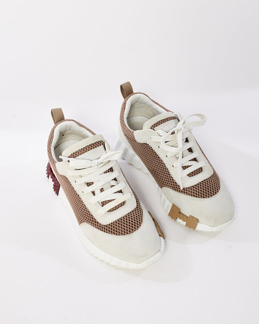Explore Hermès' exquisite collection of shoes, featuring this certified pre-owned Beige Argile Mesh Bouncing Sneakers. Embodying timeless elegance and modern sustainability, each piece, including favorites like this, is authenticated by Retyche. Discover sustainable luxury — shop our current treasures or find inspiration for your next coveted find.