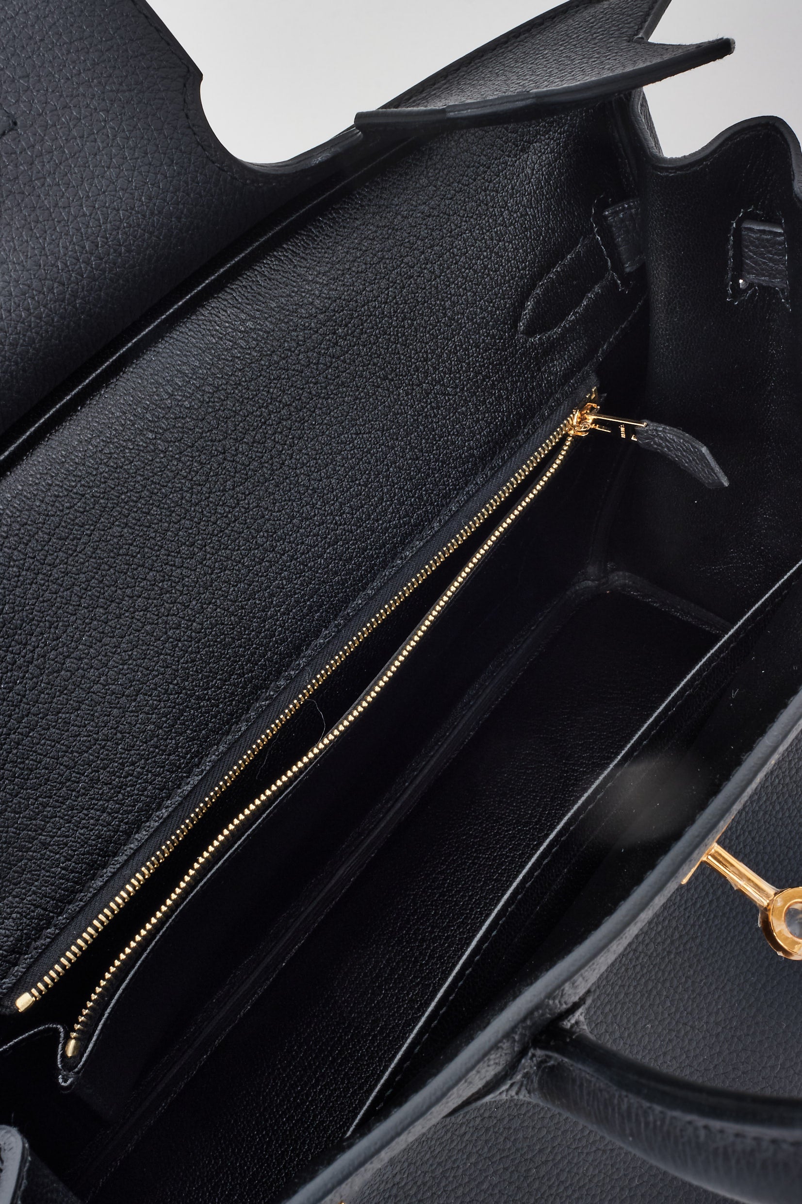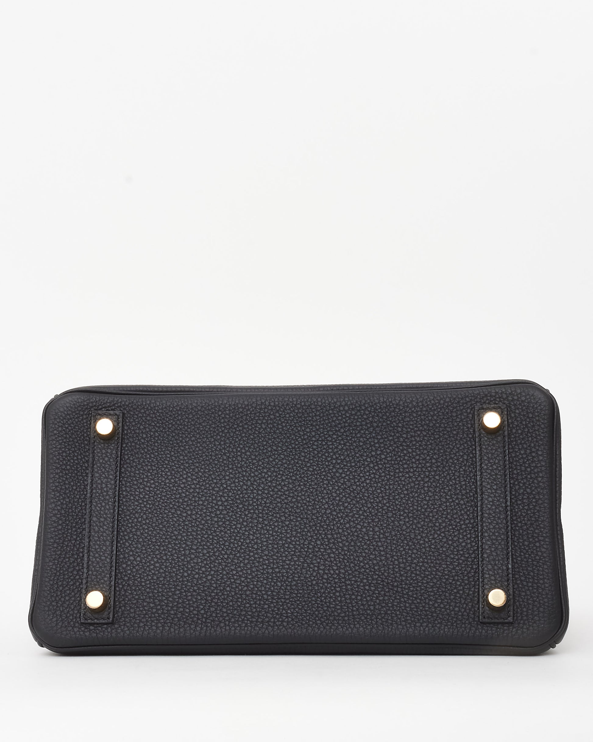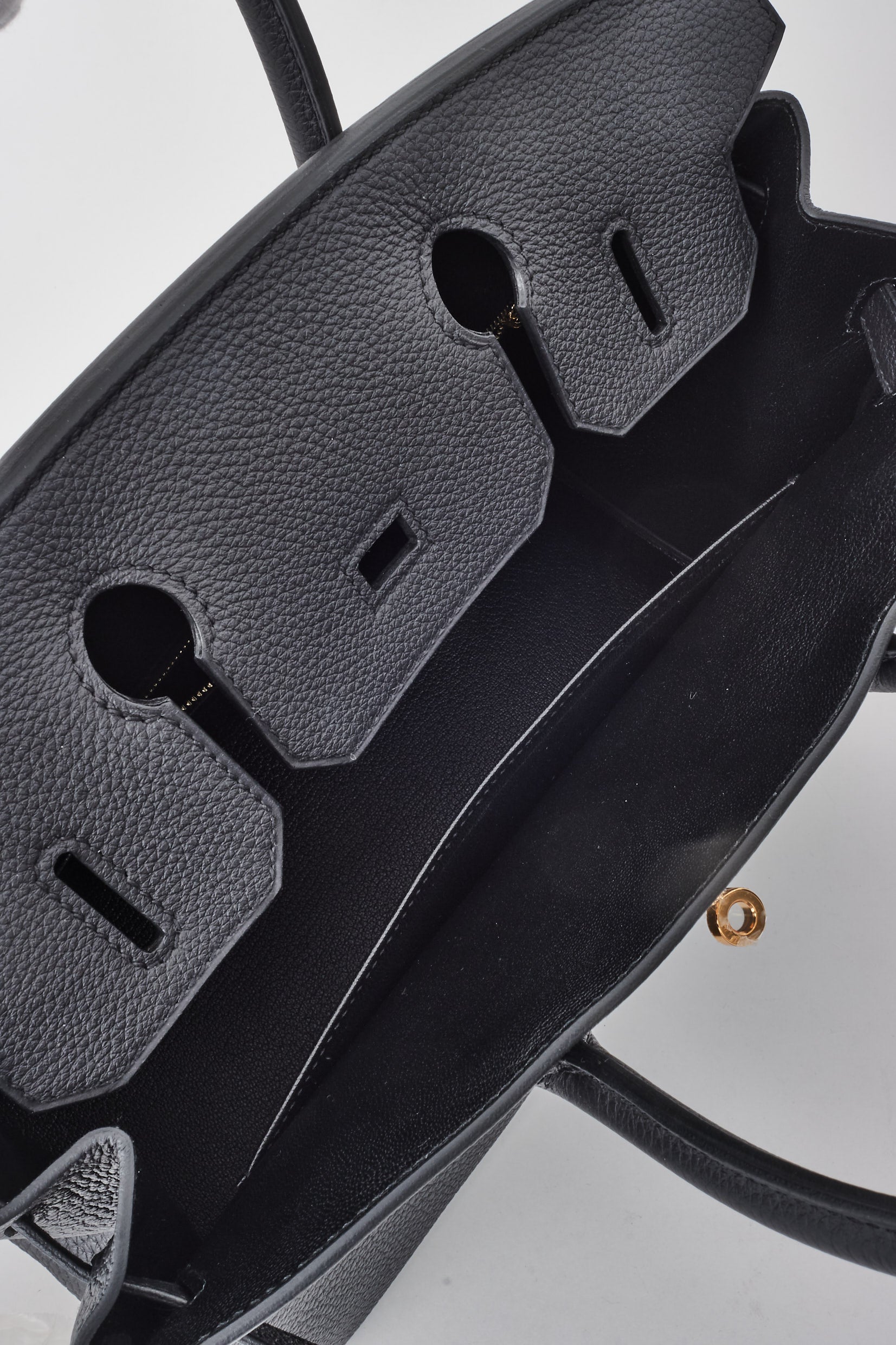 The gold-tone hardware (GHW) adds a touch of opulence, beautifully complementing the rich black leather. Featuring the signature turn-lock closure, dual rolled top handles, and a spacious interior with a zip pocket, this Birkin 30 offers seamless organization while maintaining its iconic, polished appeal.