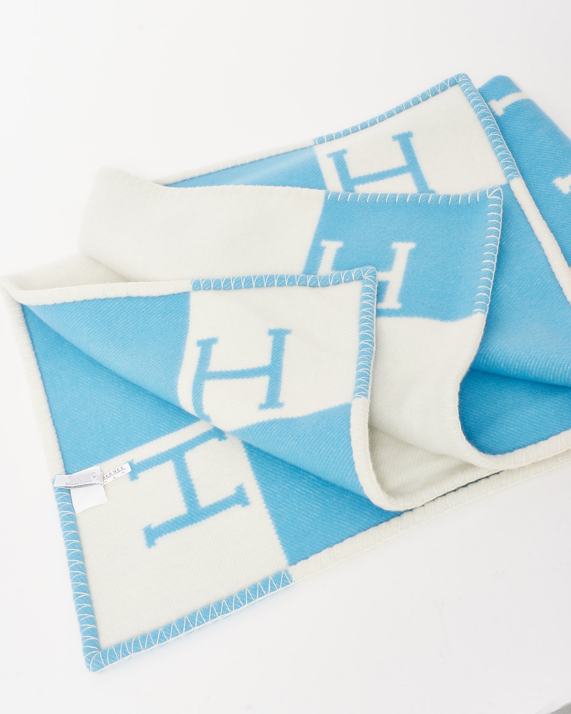 The signature Avalon design features a classic Hermès “H” pattern in a serene blue and white palette, exuding timeless elegance with a touch of sophistication. Finished with delicate whip-stitched edges, this blanket is as beautiful as it is durable.
